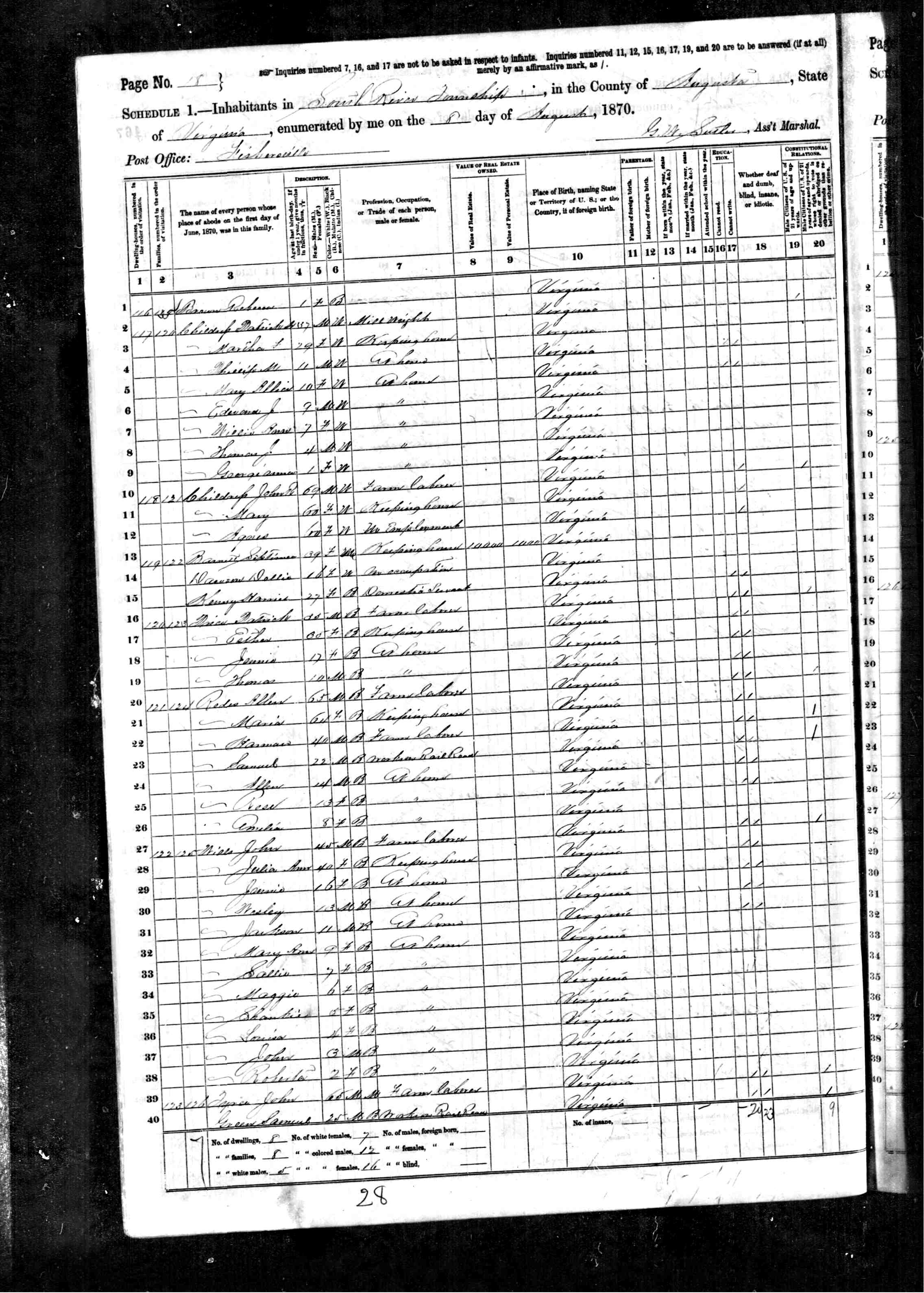 49. 1870 Virginia Census, Augusta, South River, p. 18.