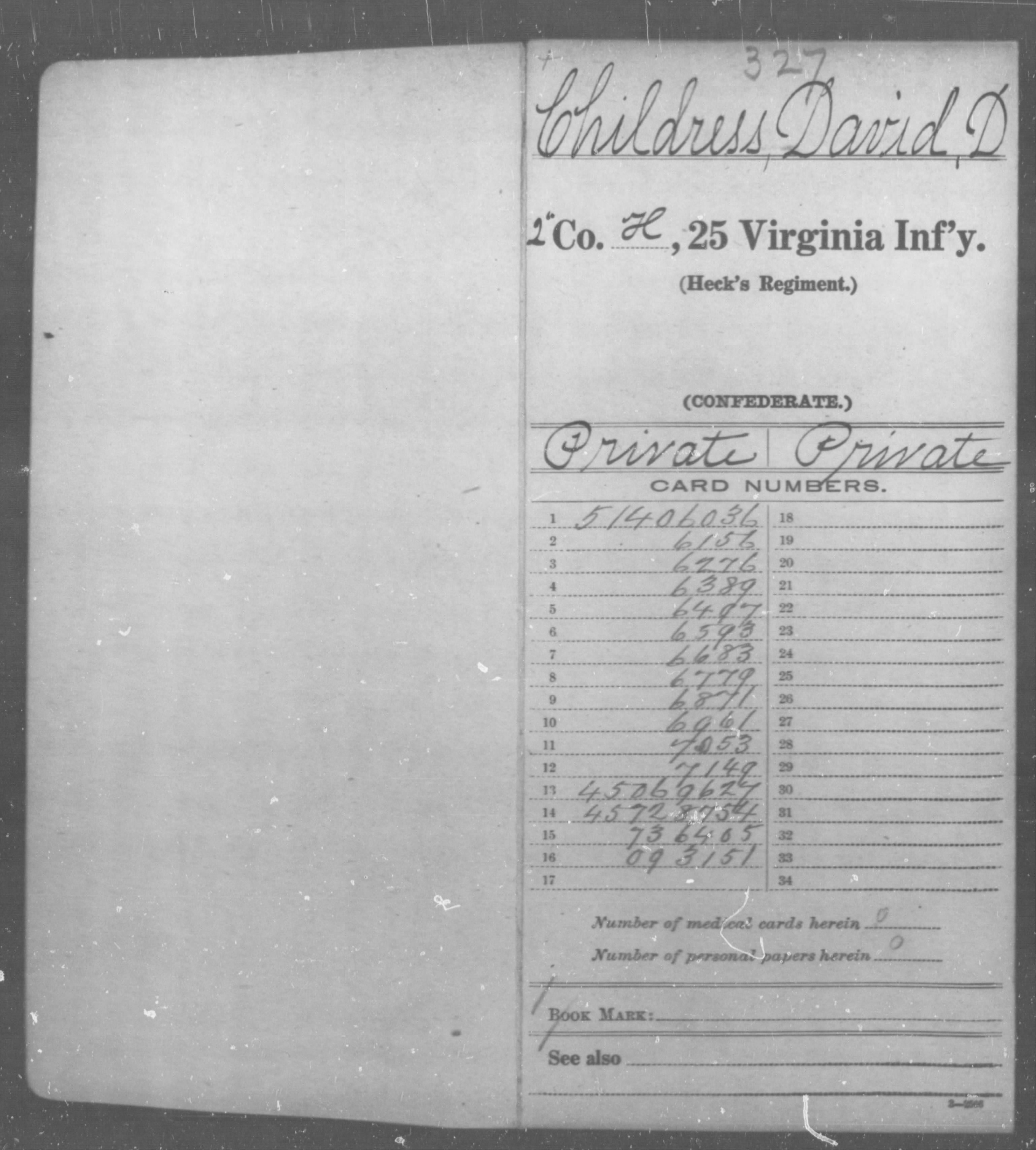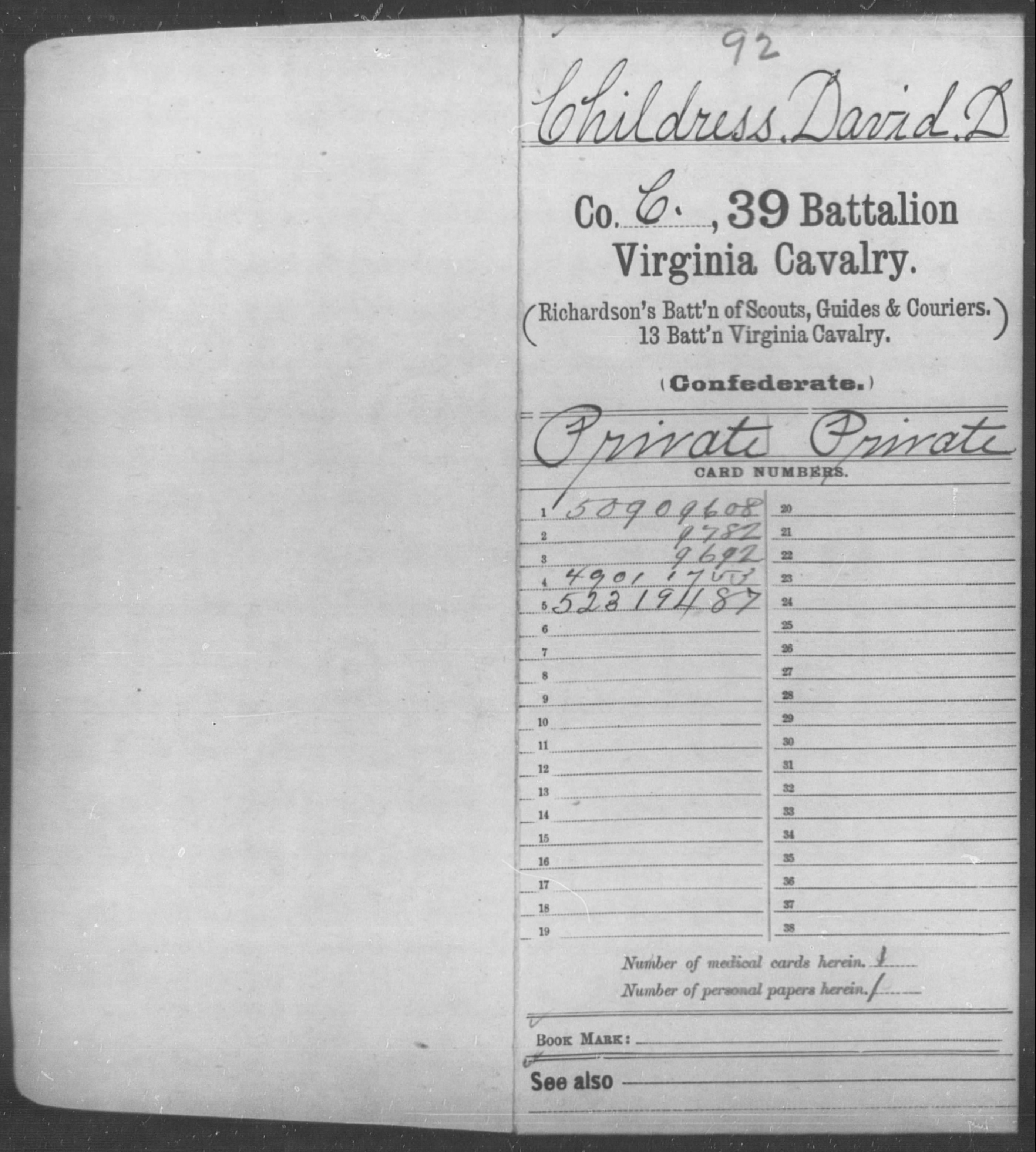 73. National Archives, Civil War Military Records, Civil War Military Record - David D. Childress.