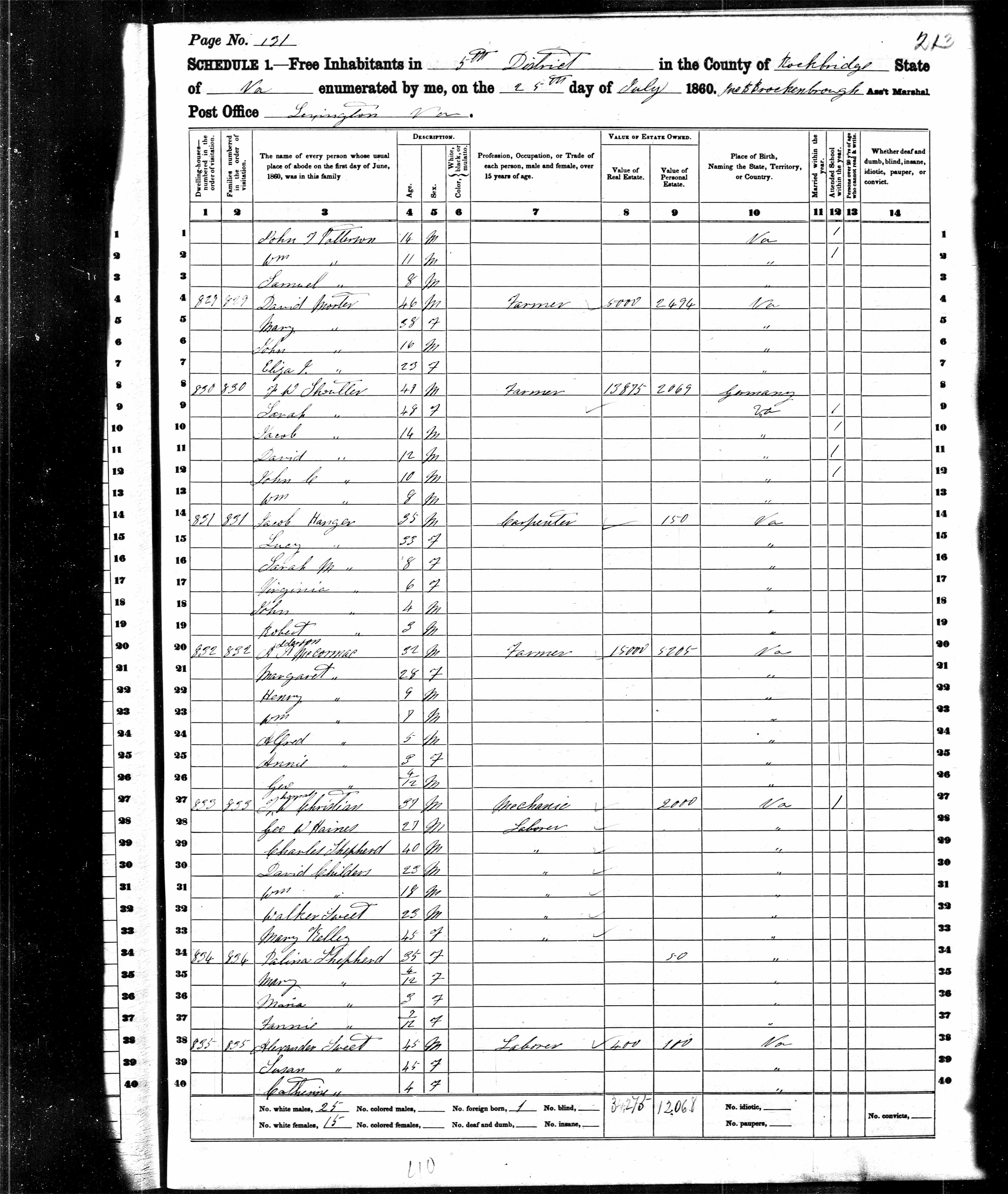72. 1860 Virginia Census, Rockbridge, 5th District, p.131 Marked 213, Image 52.