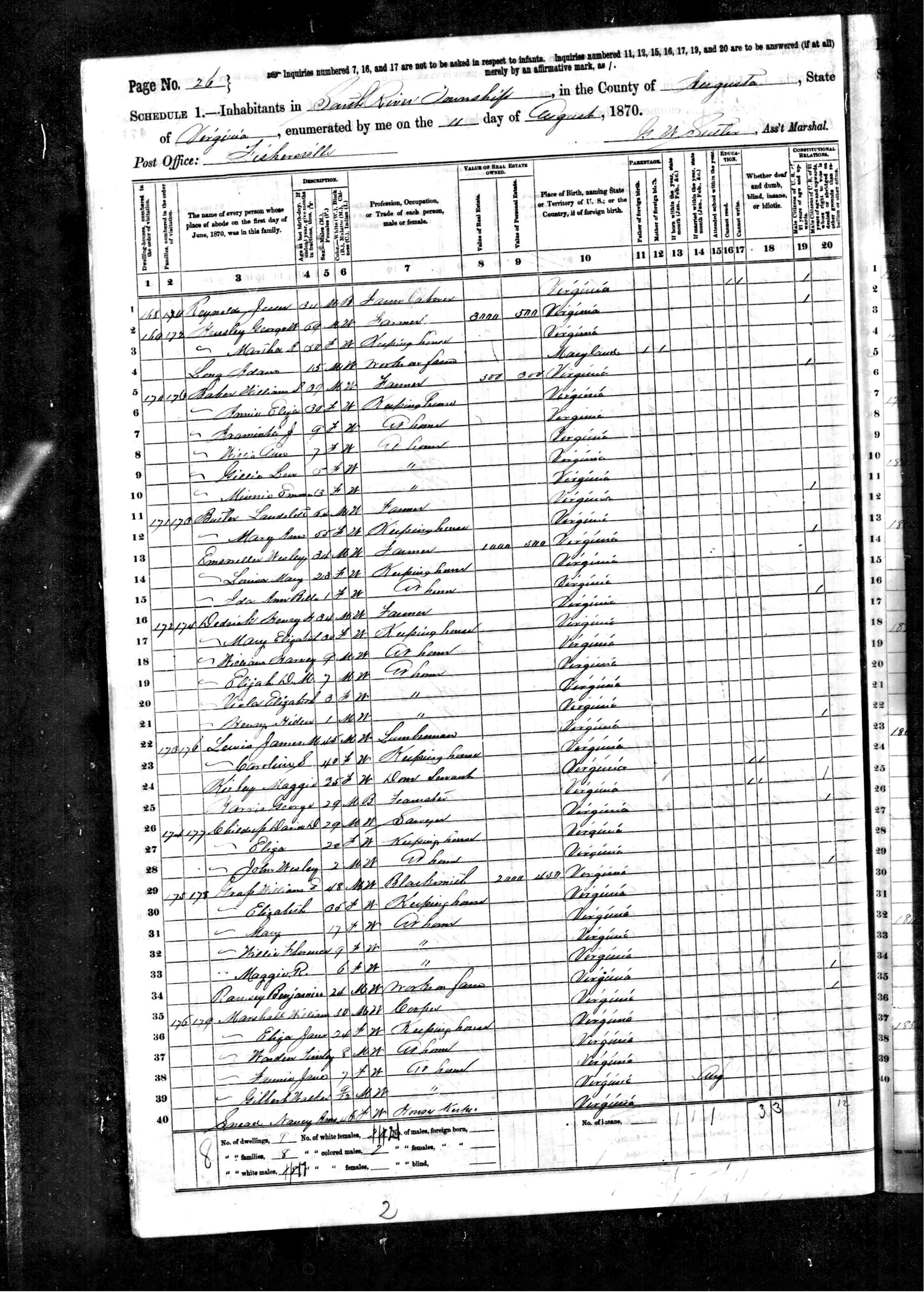 1. Census: Elias Thacker and family, 26-28 Jun 1880, Scottsville, Albemarle County, Virginia, USA. 44