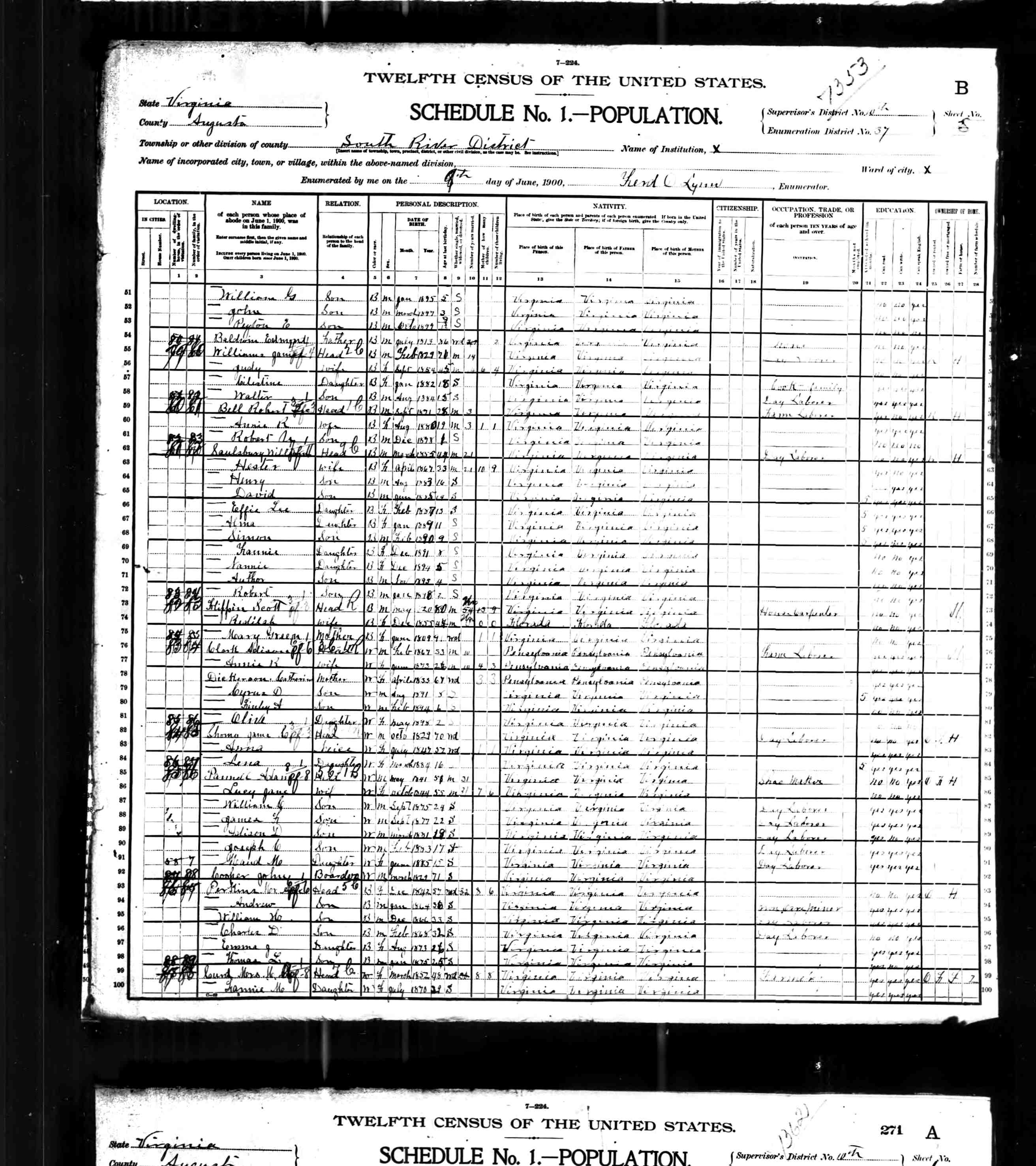 55. 1900 Virginia Census, Augusta, South Rver, ED 39, Sht 12B.