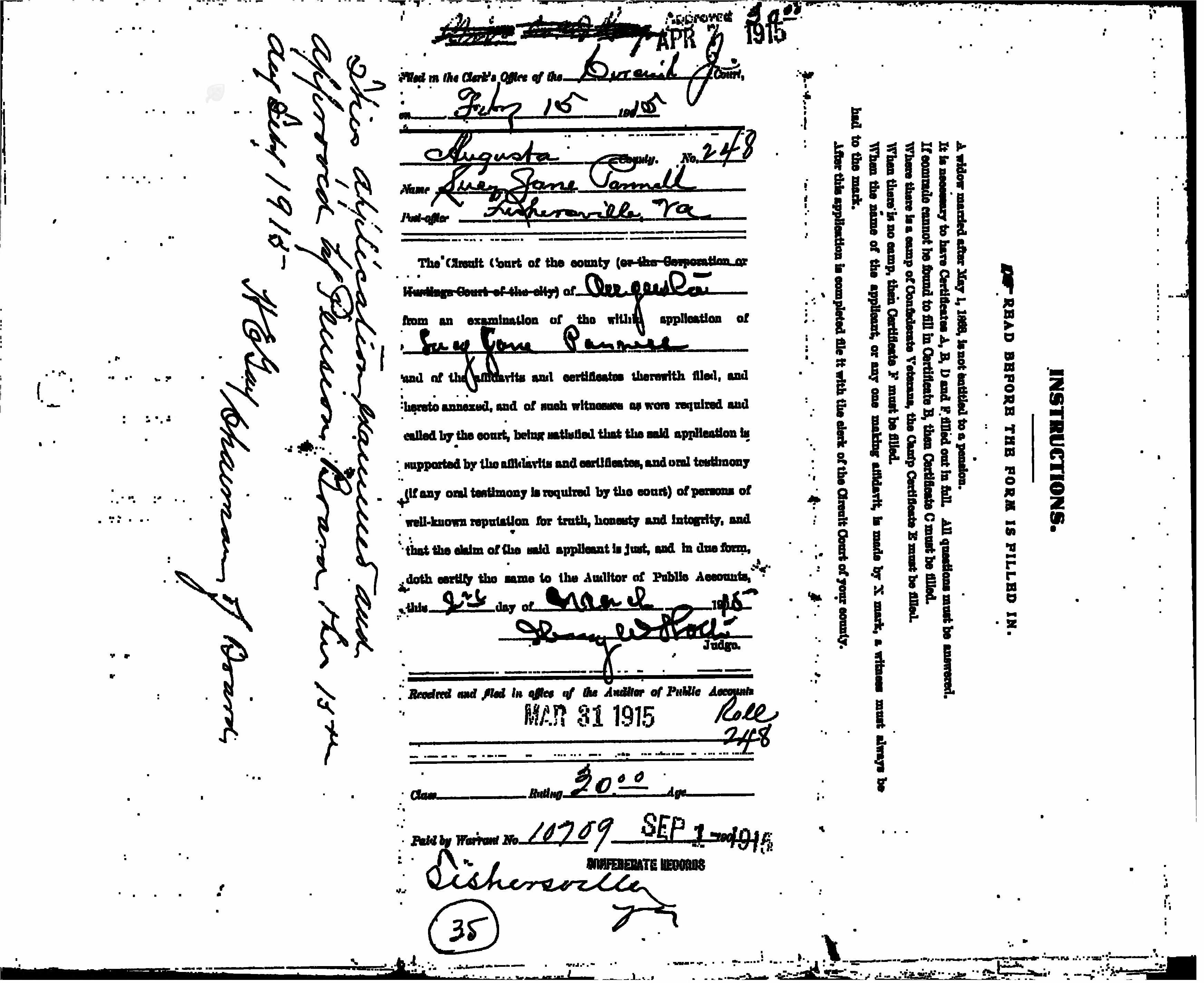 126. Civil War Pension Act Application, March 7, 1900, Application of Widow, Confederate Civil War Veteran, Lucy Jane Pannell.