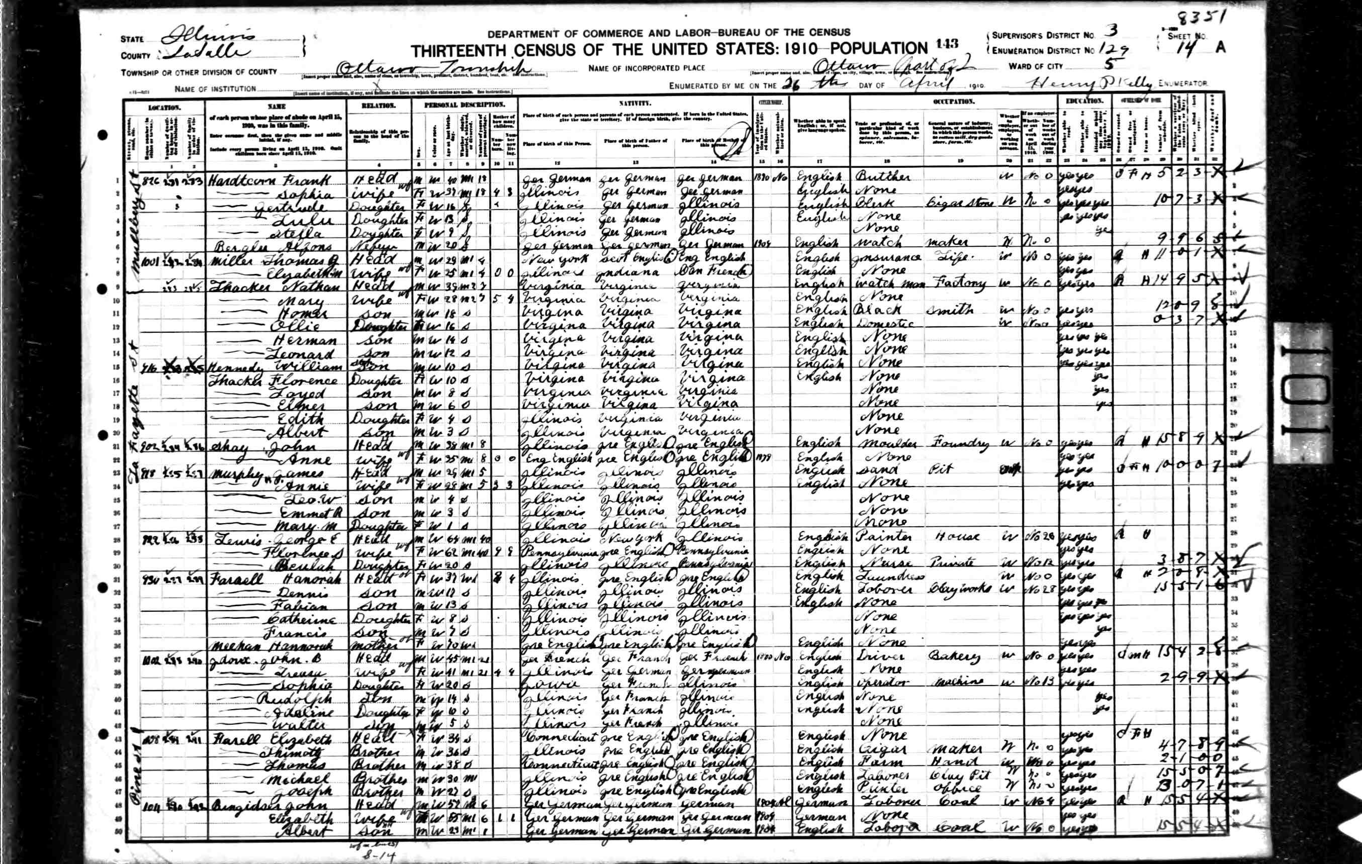 8. Occupation: carpenter, 16 Apr 1910, Staunton, Staunton City, Virginia, USA. 148