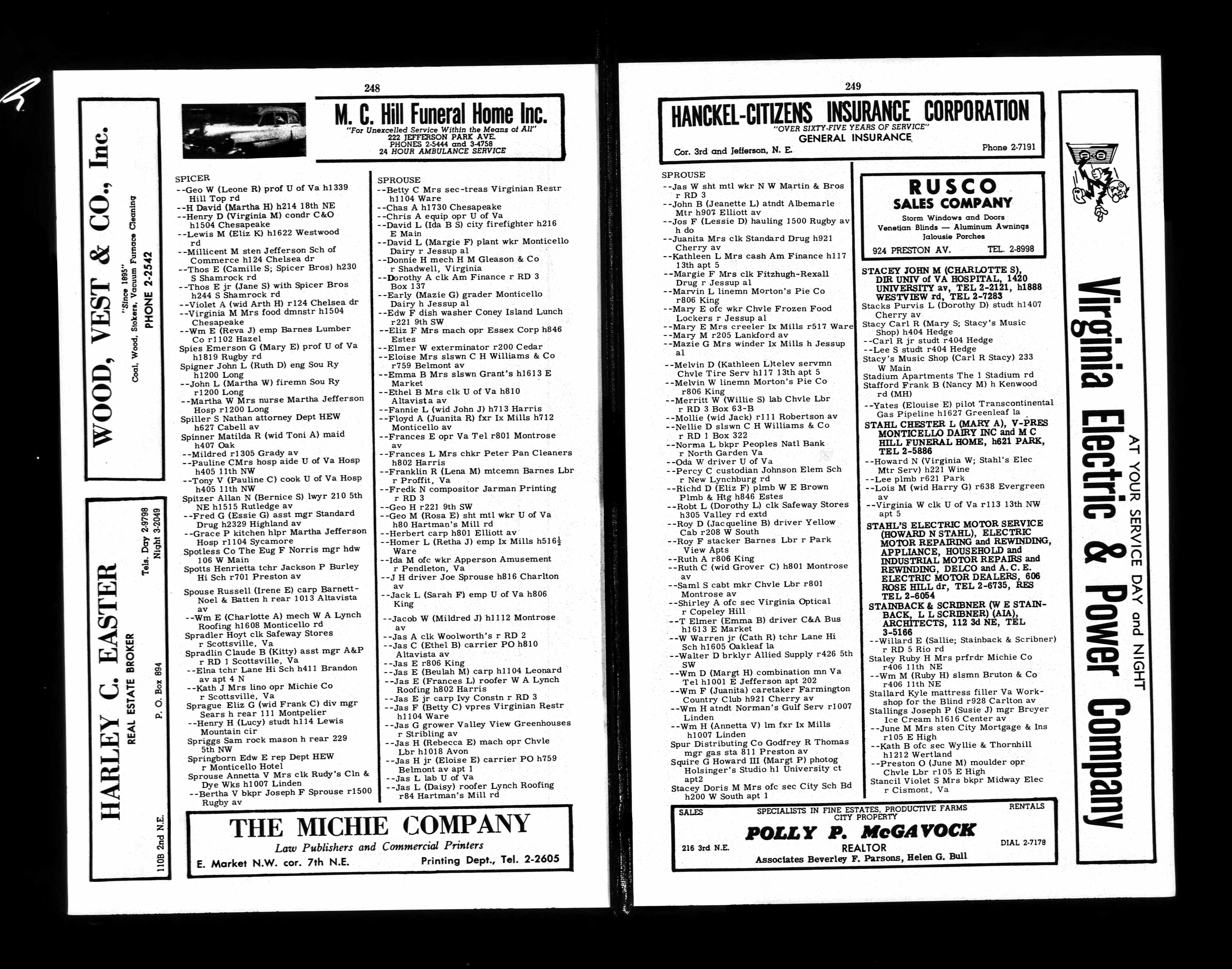 247. City Directory, Sprouse - Charlottesville City Directory.