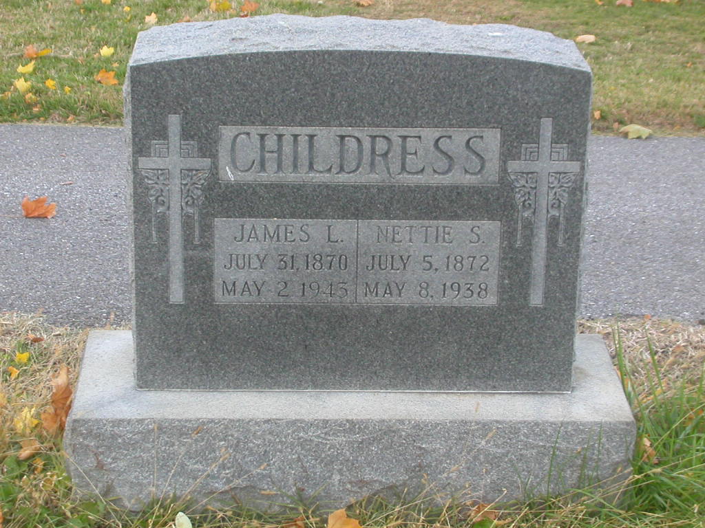 + 108 i. Nannie Belle Childress was born on 29 Nov 1883 in Waynesboro, Augusta County, Virginia, USA, died on 18 Sep 1975 in Roanoke, Roanoke (city), Virginia, USA, at age 91, and was buried on 20 Sep 1975 in Evergreen Cemetery, Roanoke, Roanoke (city), Virginia, USA.