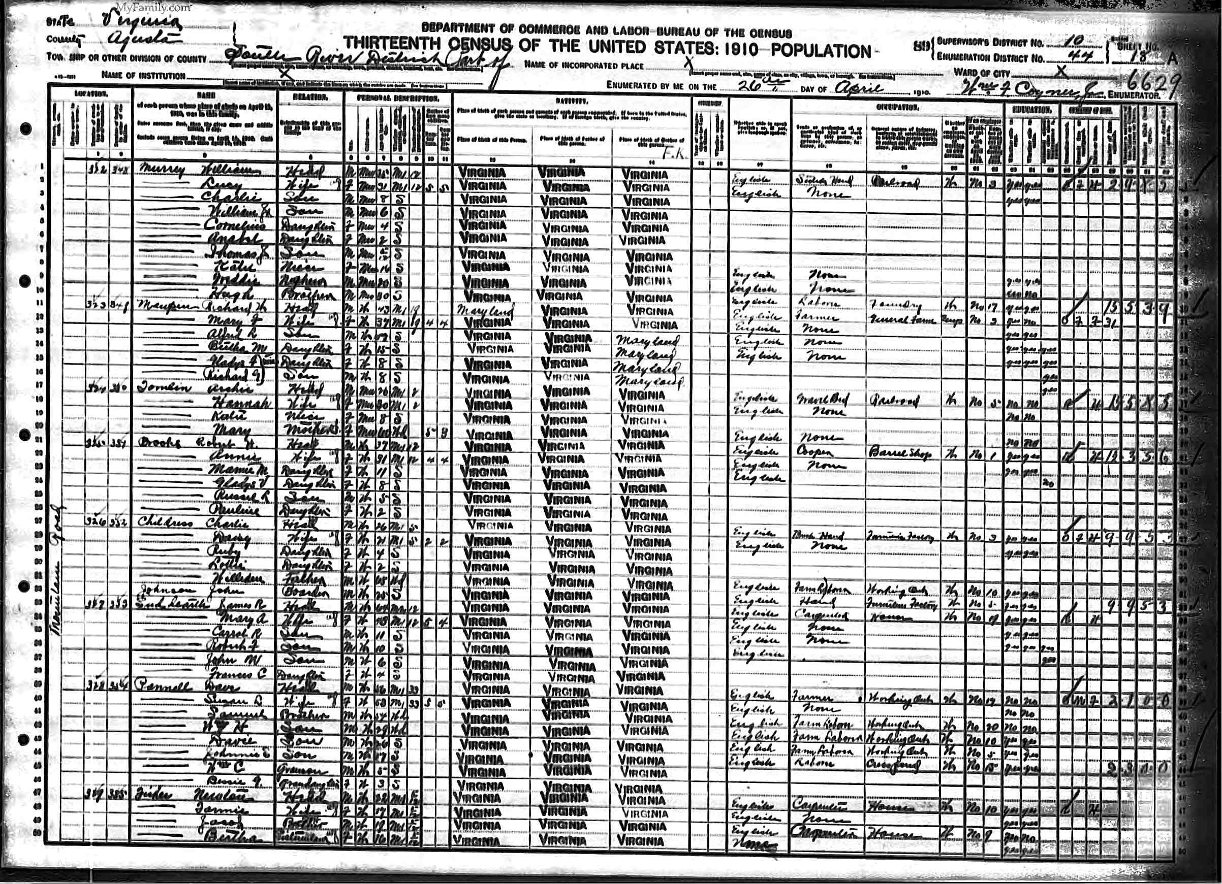 1. Occupation: Farm Laborer, 21 Jun 1900, South River, Augusta County, Virginia, USA.