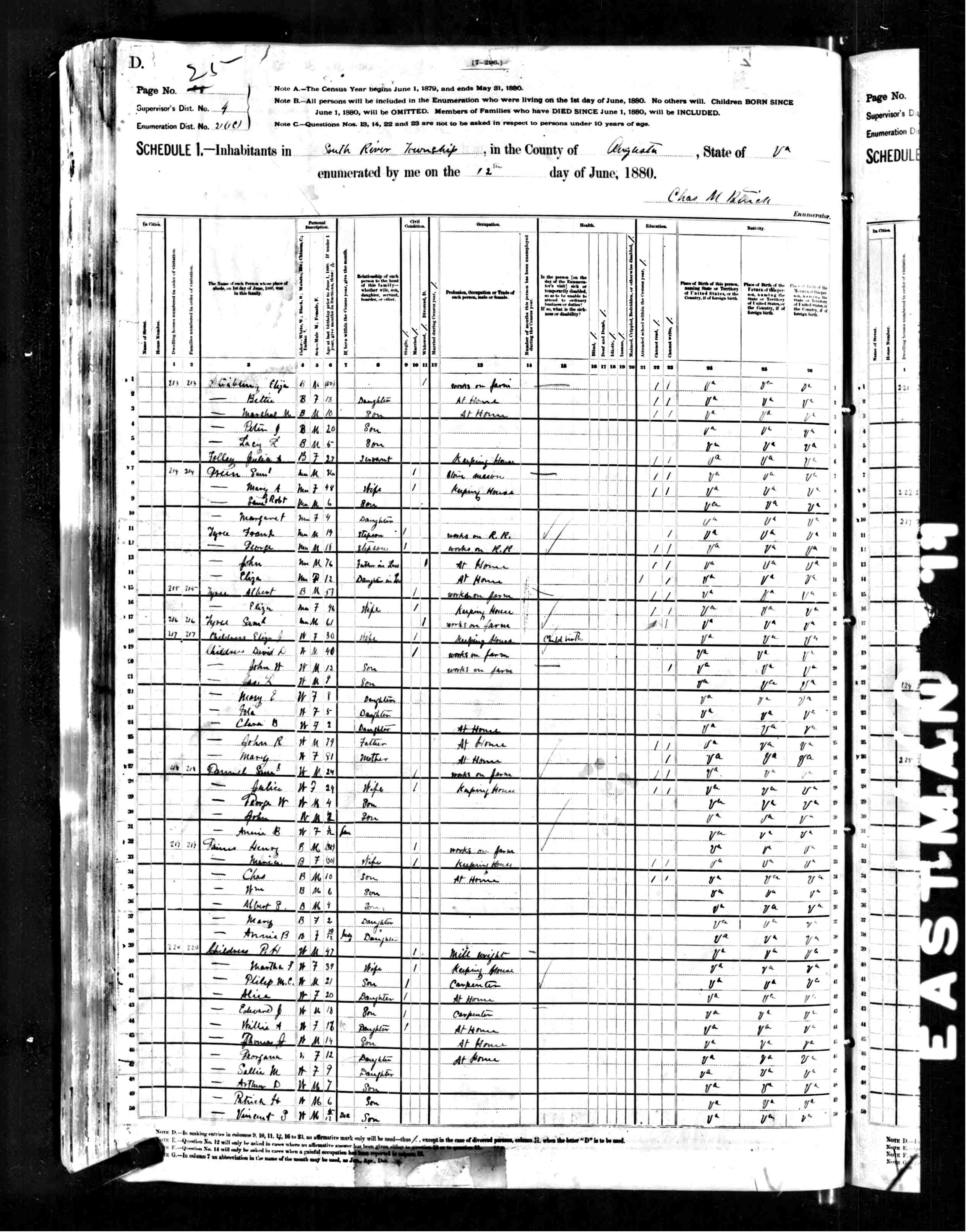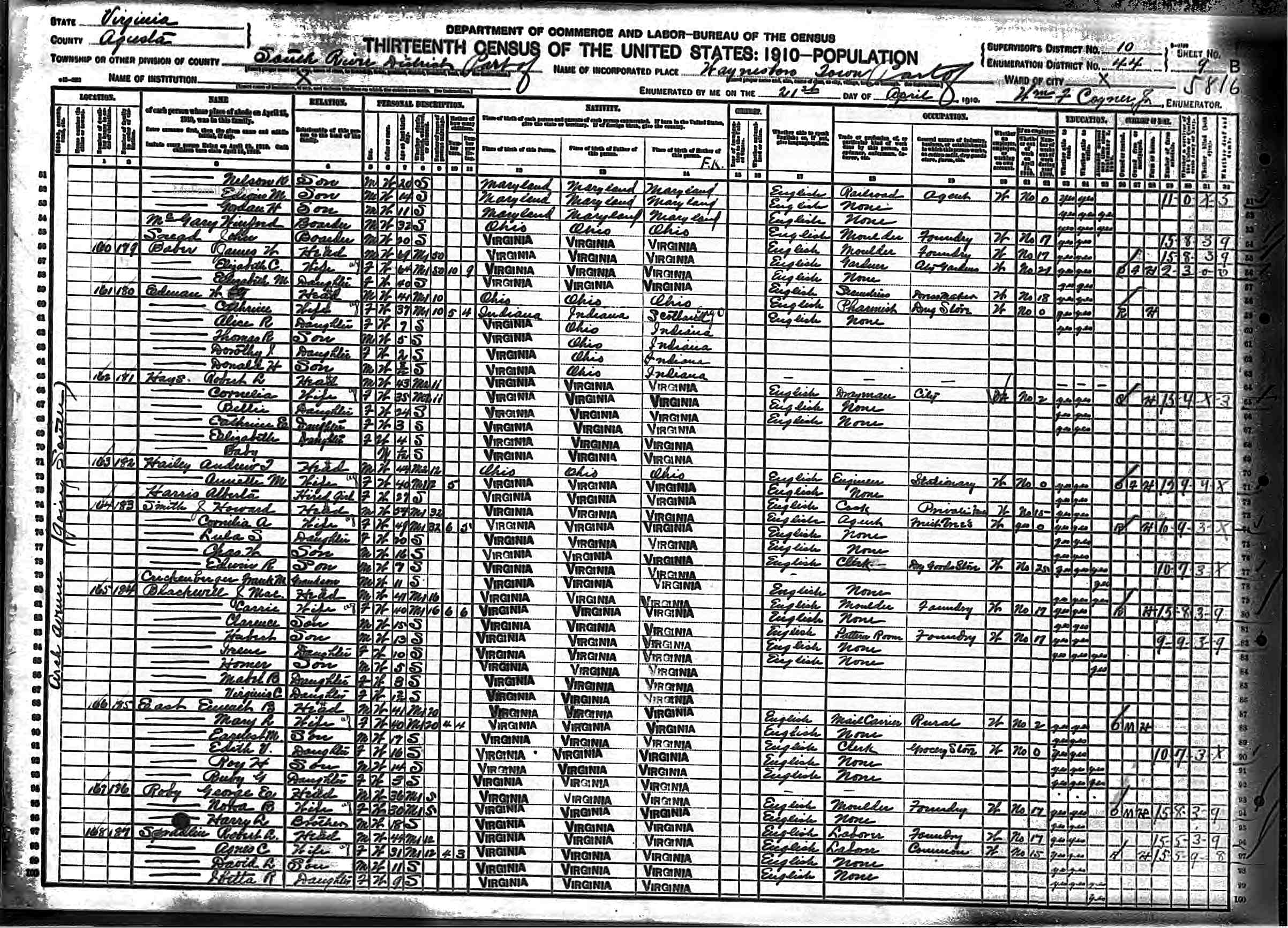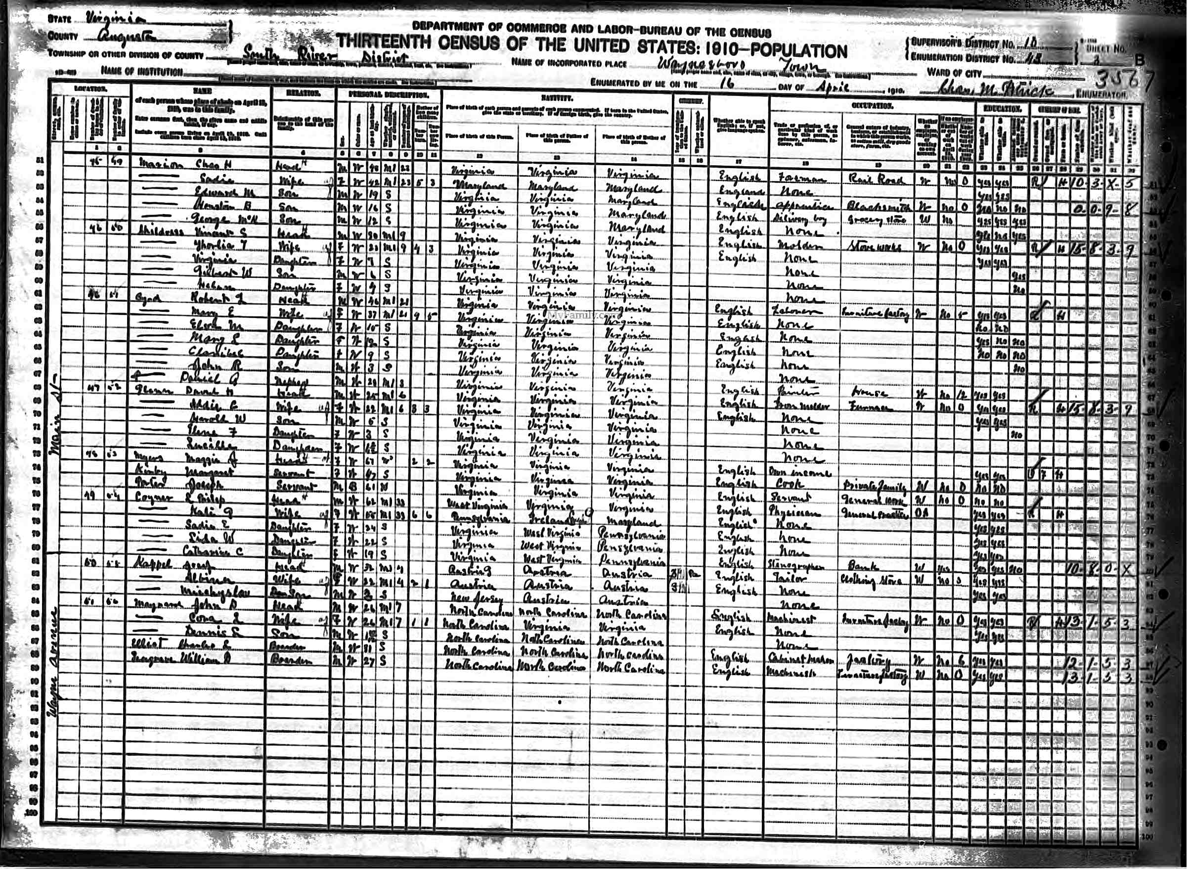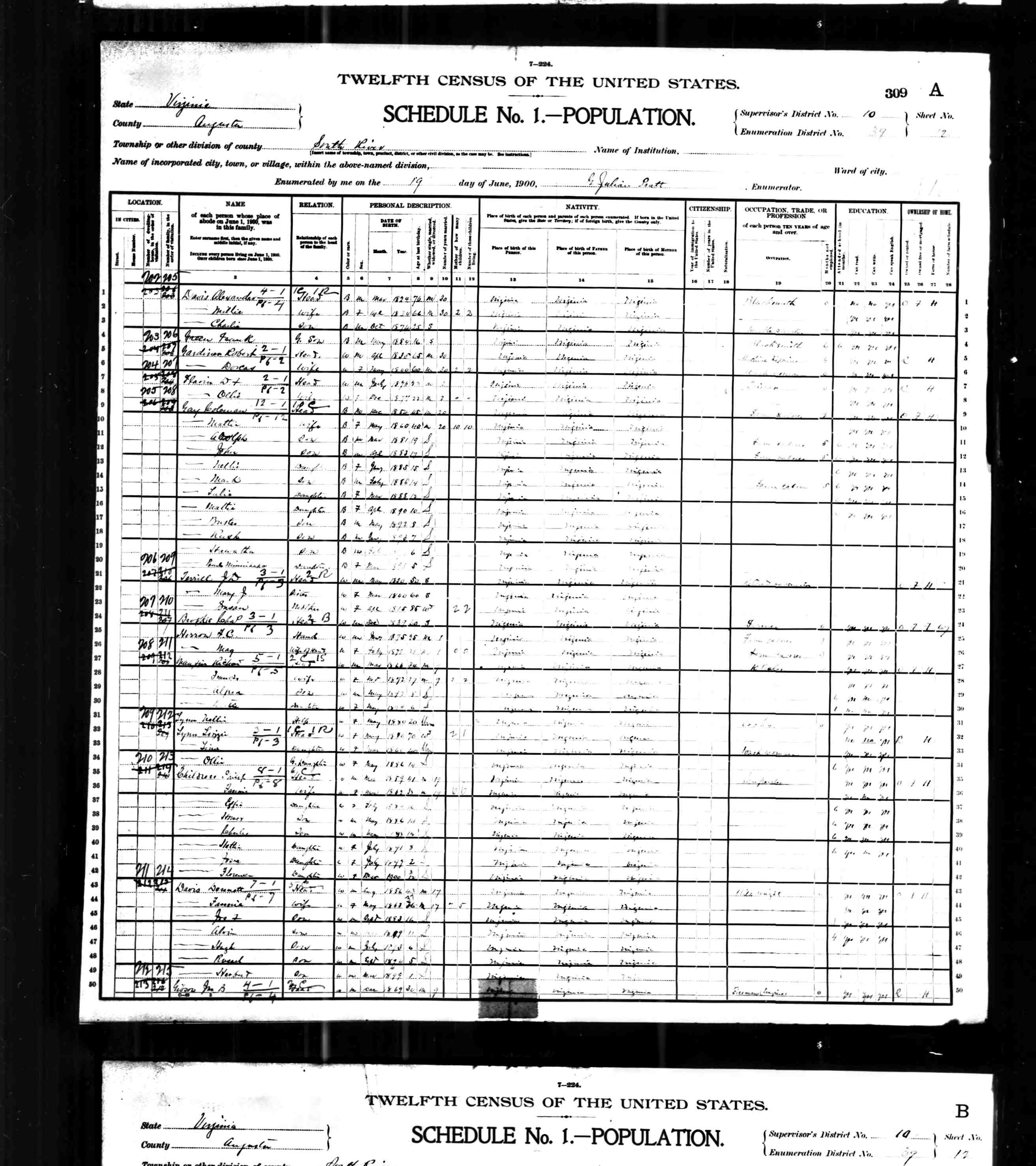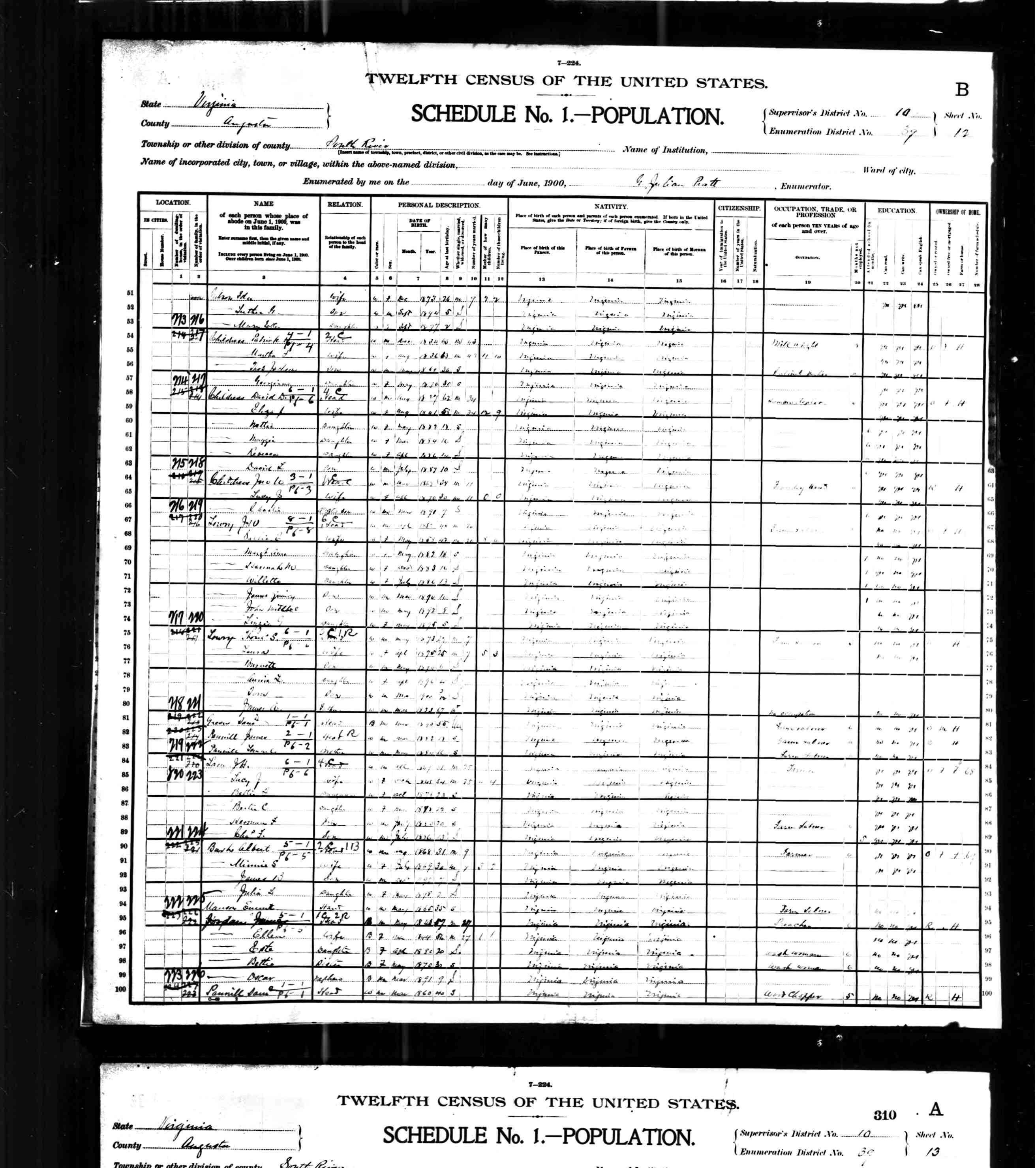 431. 1900 Virginia Census, Augusta, Crimora, ED 26, Sht 14B.