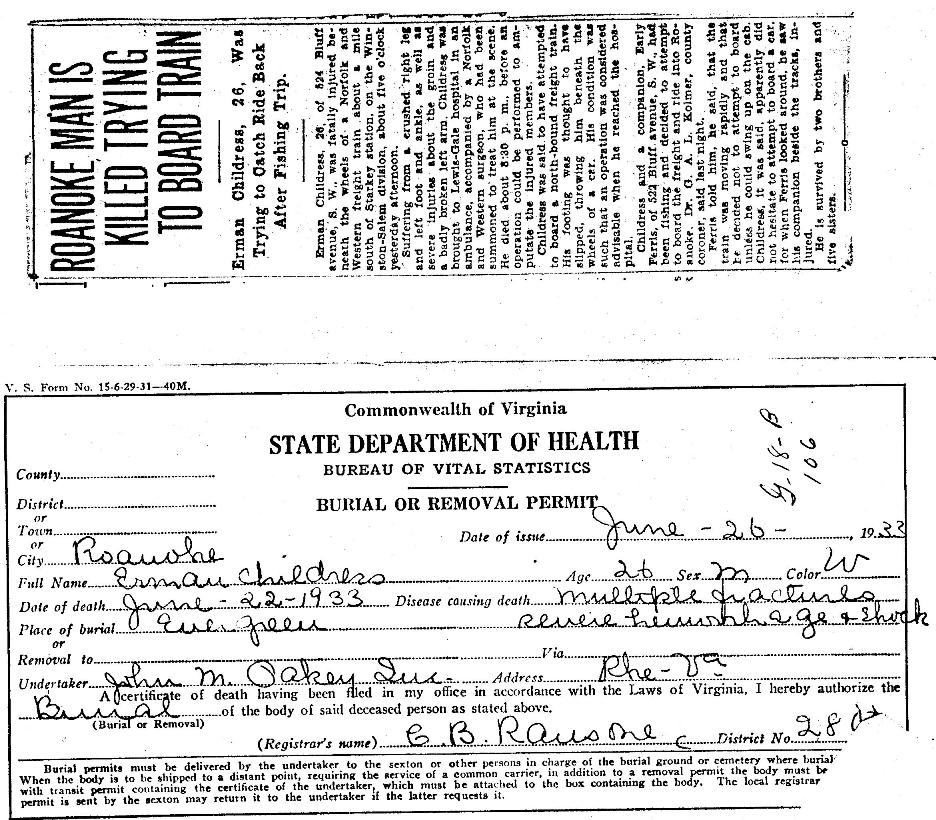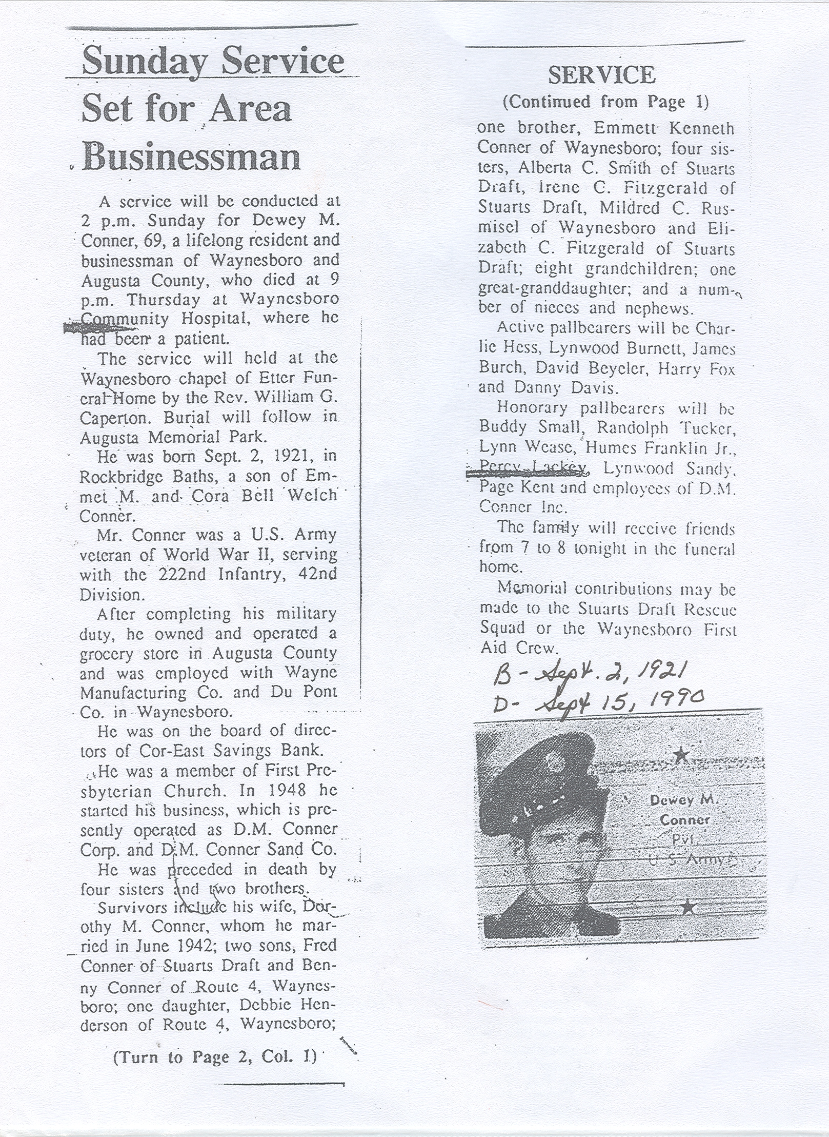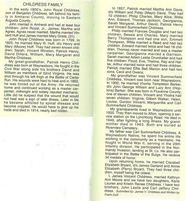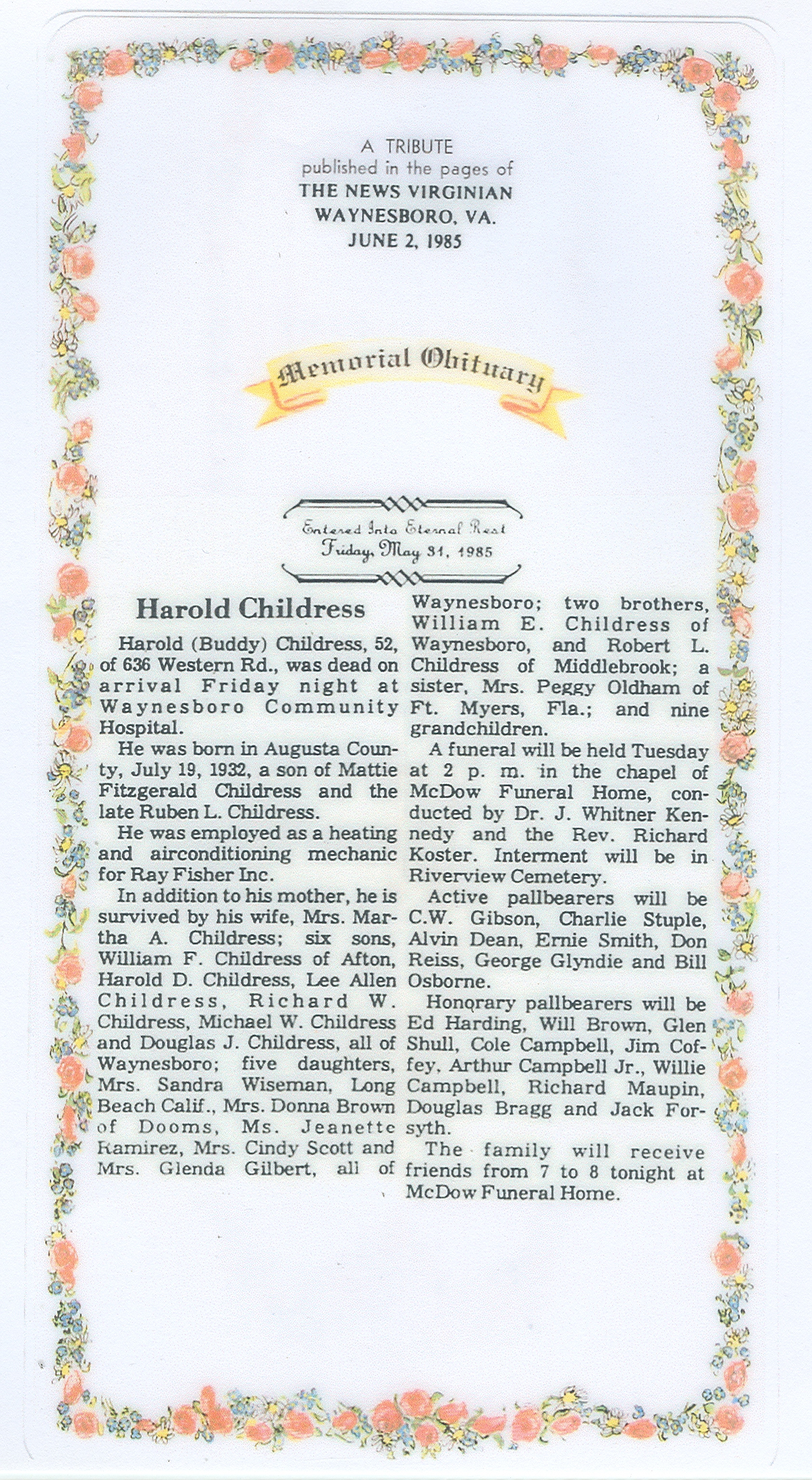 443. Obituary from Waynesboro, VA Newspaper, Harold "Buddy" Childress.