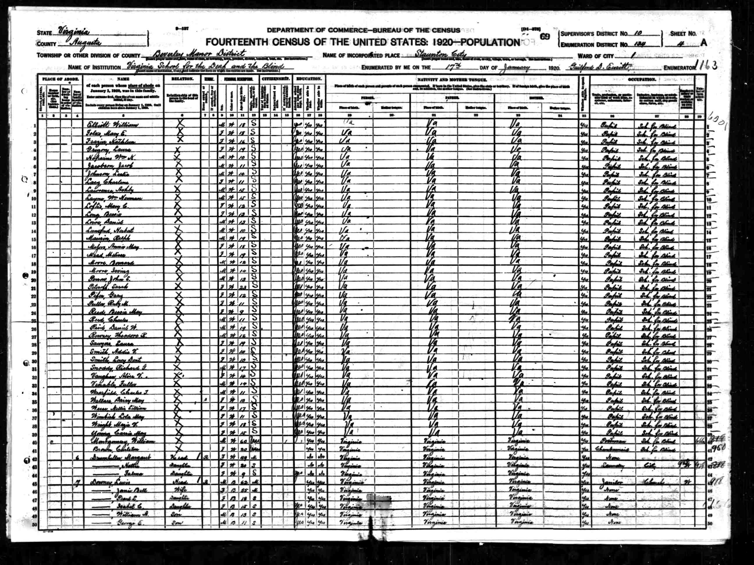 449. 1920 Virginia Census, Augusta, Beverly Manor, ED 29, Sht 1B.