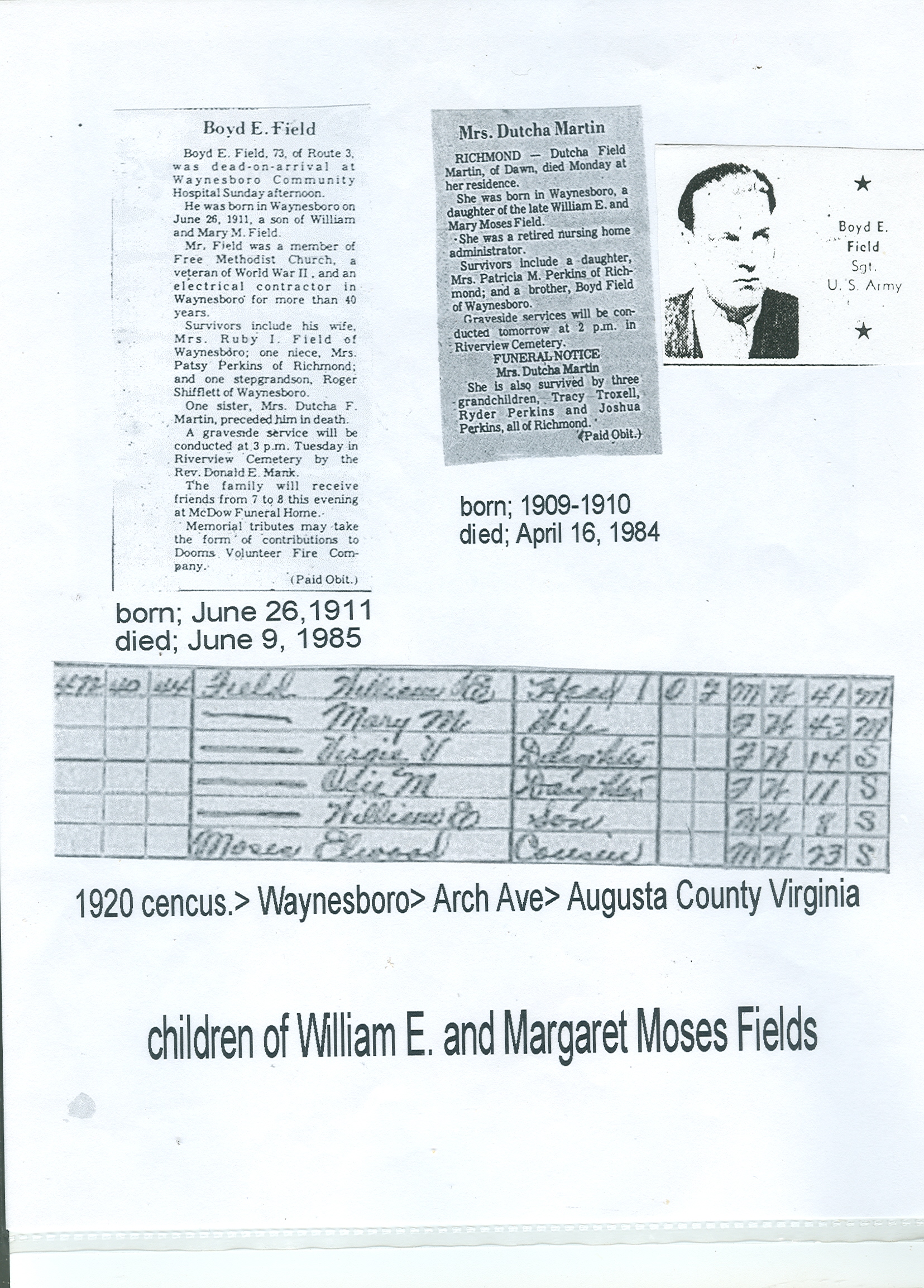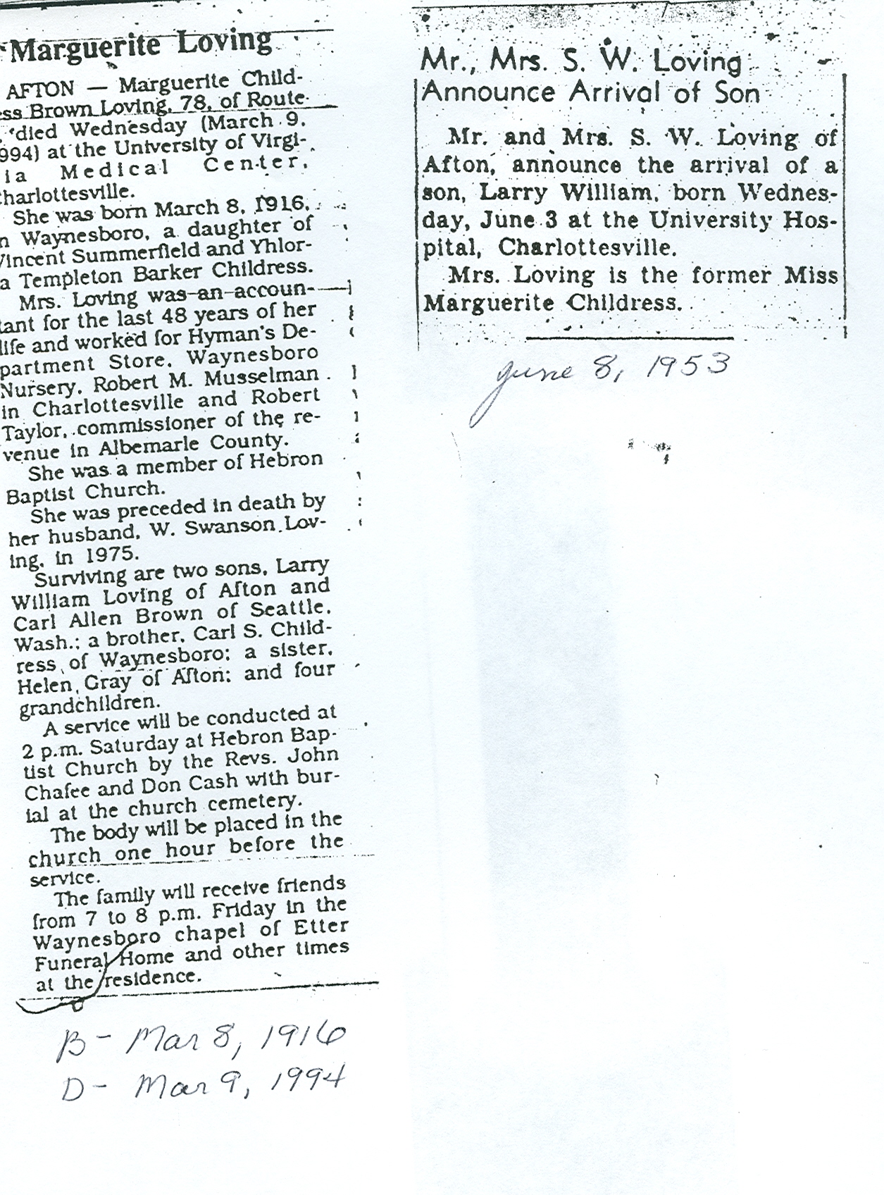 477. Obituary from Waynesboro, VA Newspaper, Dorothy Virginia Monroe Childress.