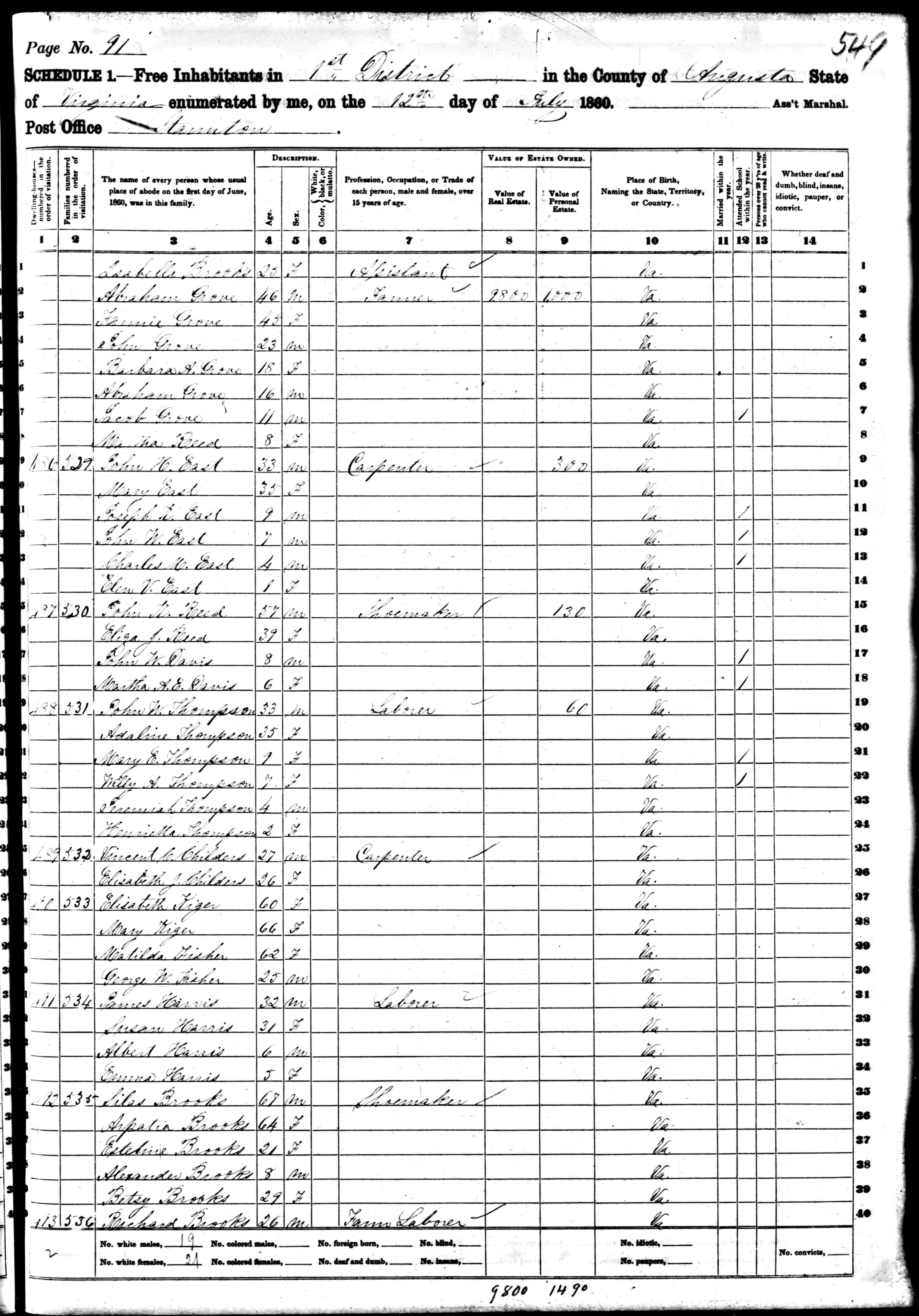 433. 1920 Virginia Census, Augusta, South River, ED 46, Sht 18A.