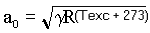273 added to T exc to convert to Kelvin R is 287 the Gas Constant of air in J/kgK g is 1.4 the Specific Heat Ratio of air a 0 is the speed of sound in m/s |