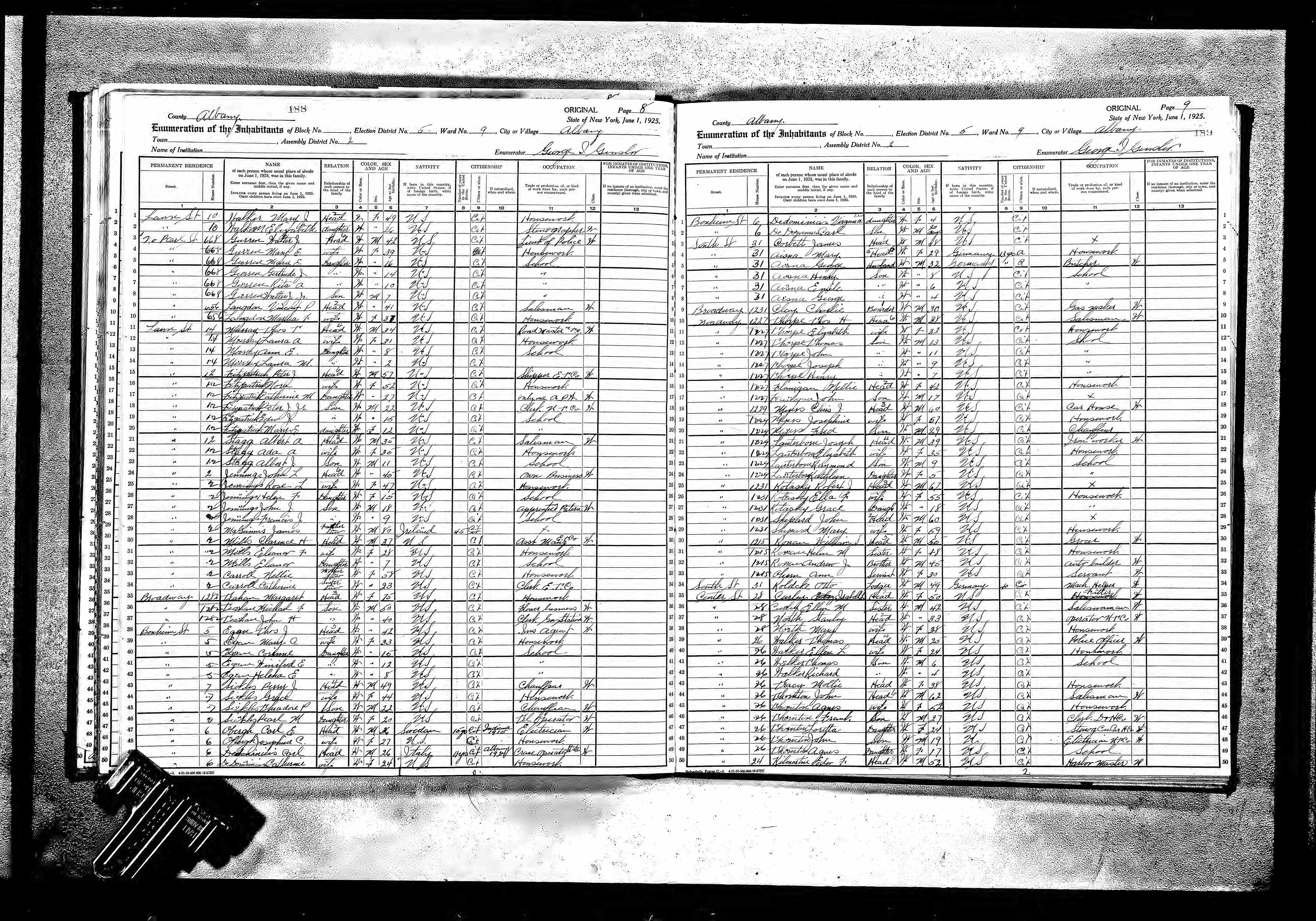 229. 1925 New York Census, Albany, Albany Ward 9, A.D. 02, ED 05, p. 9, Image 5.