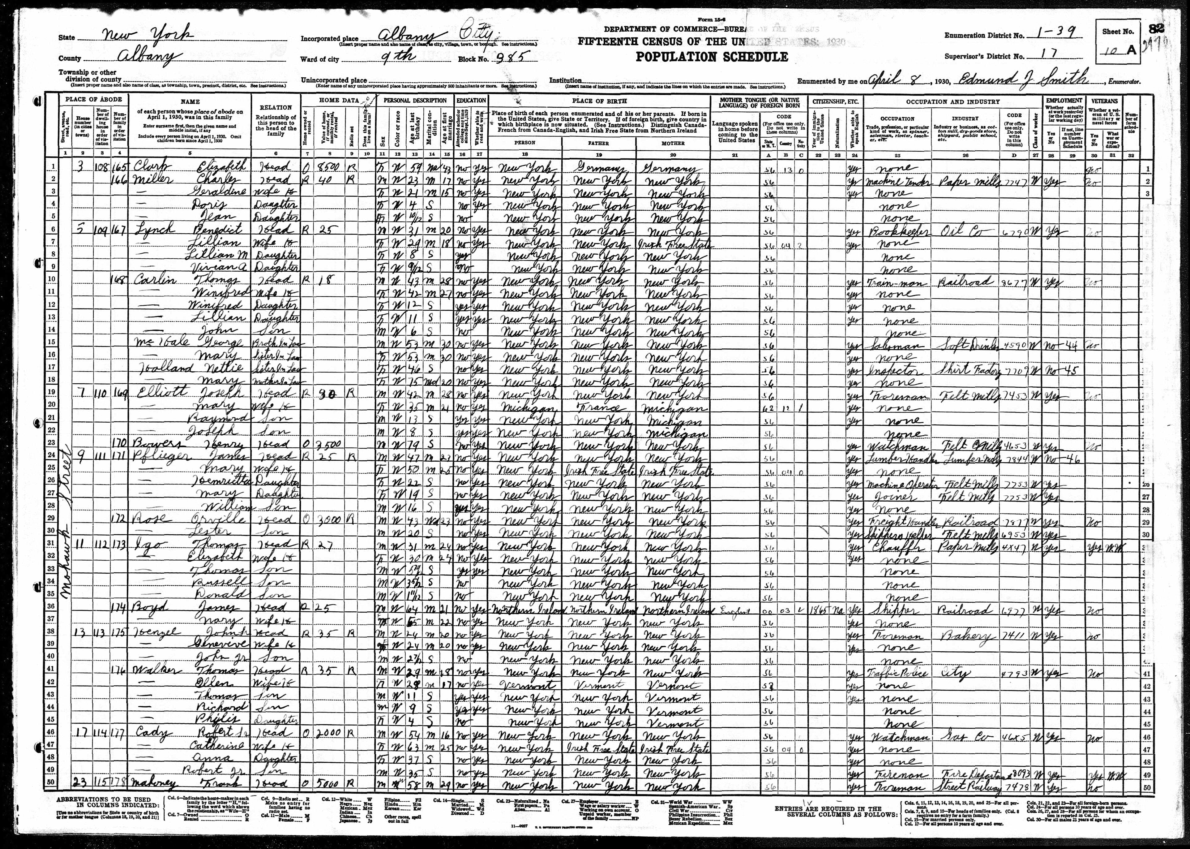 230. 1930 New York Census, Albany, Albany, ED 39, Sht 10A, Image 16 T626_1402, p. 10A, ED 39, Image 165.