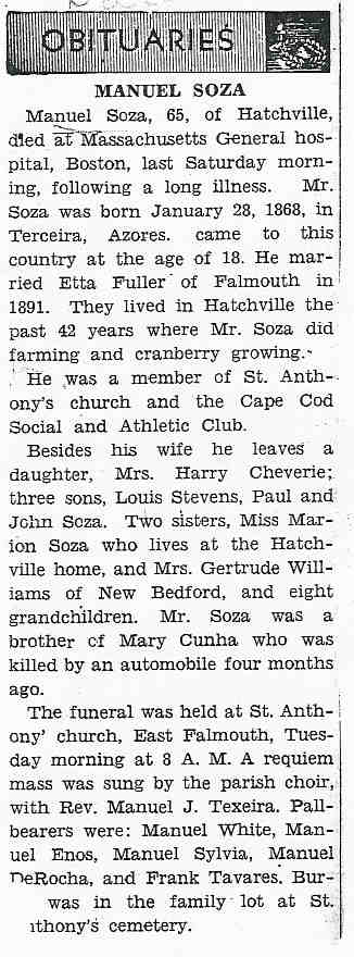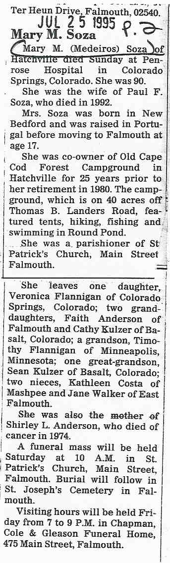 199. Obituary, Mary M. Medeiros Soza.
