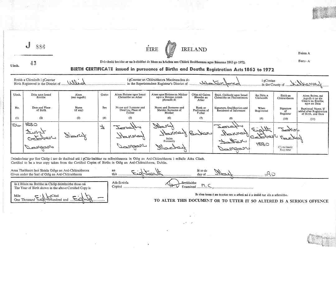1. Birth Record, Altares, Angra do Heroismo, Terceira Island, Azores, Portugal.