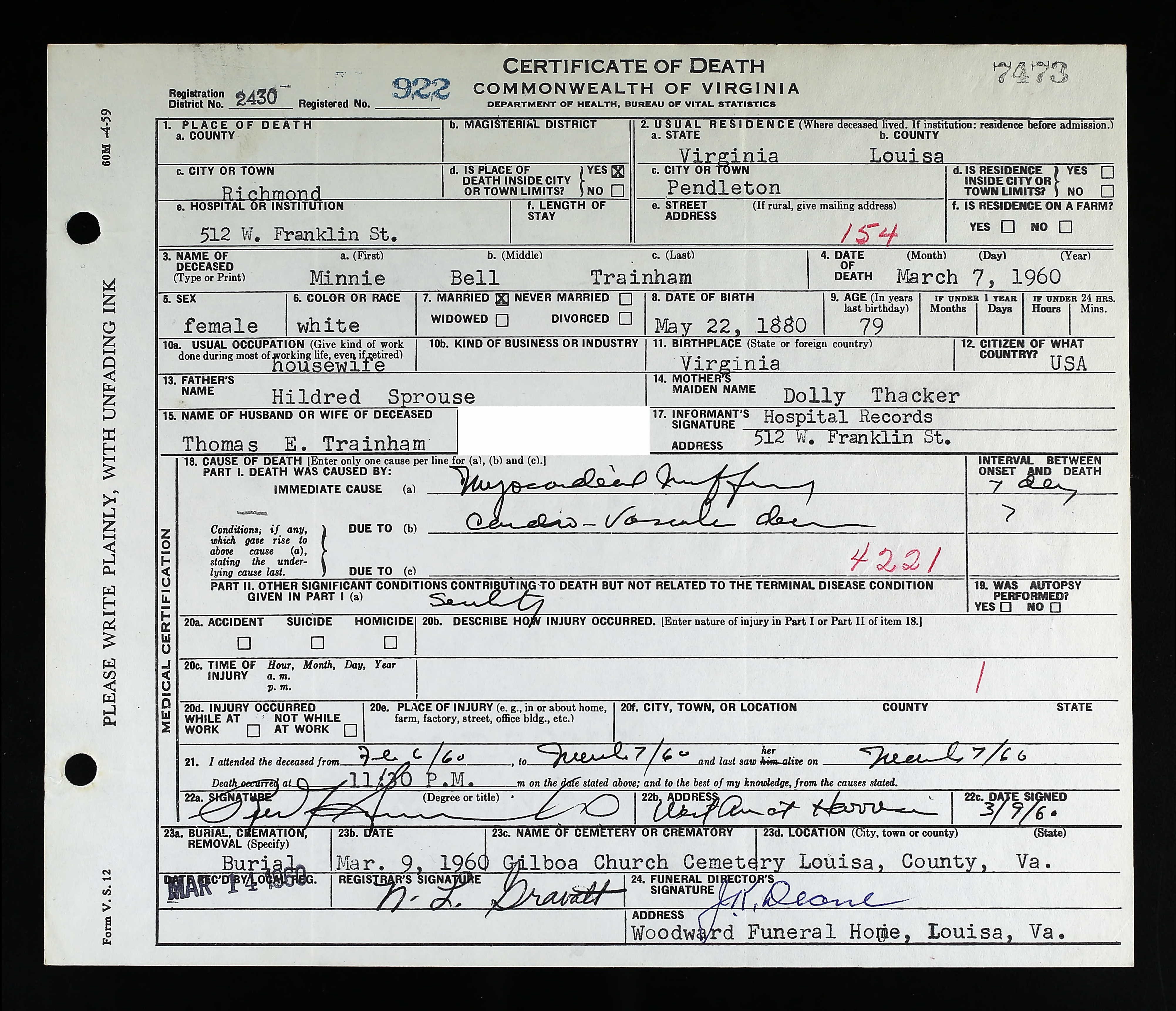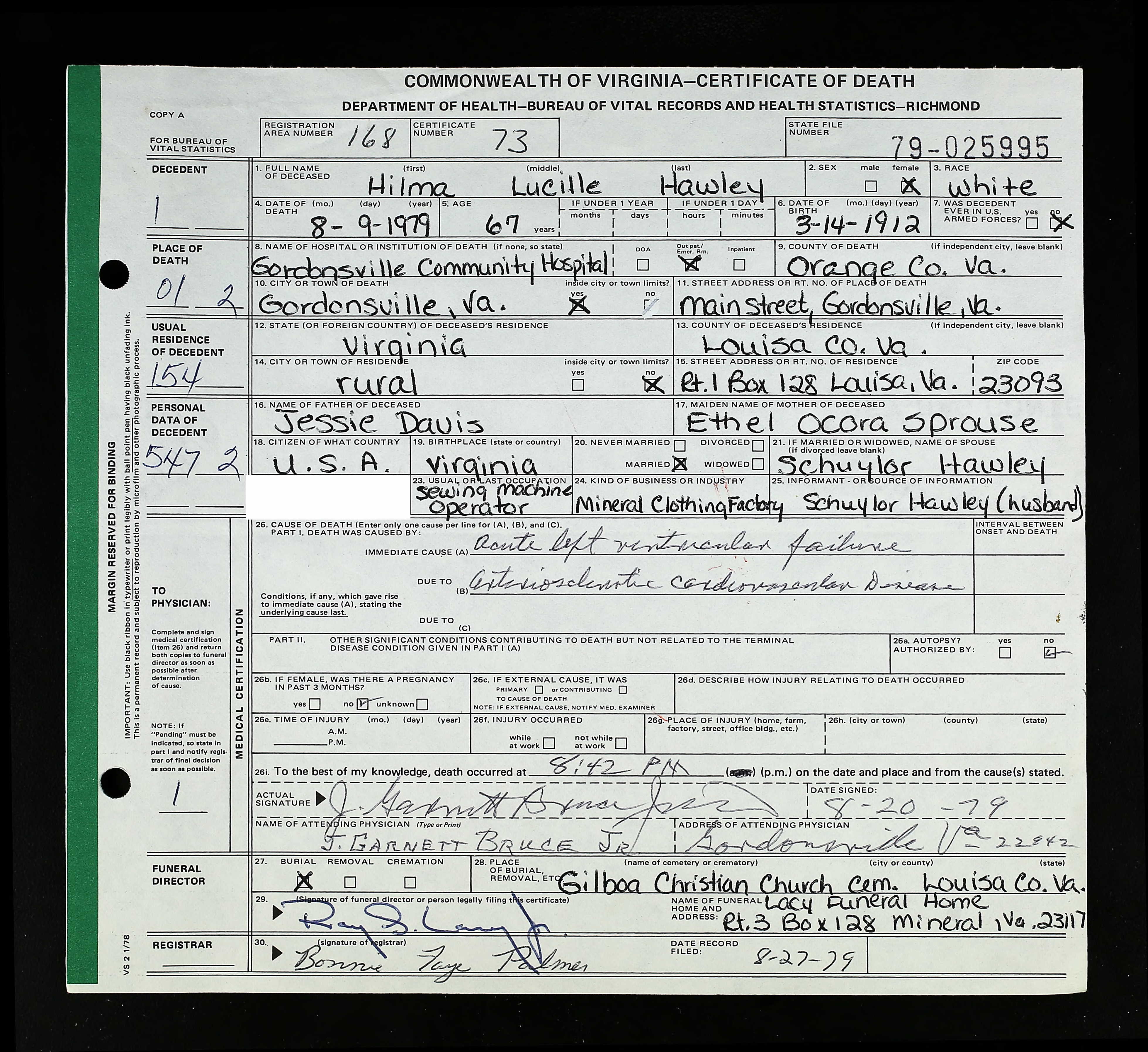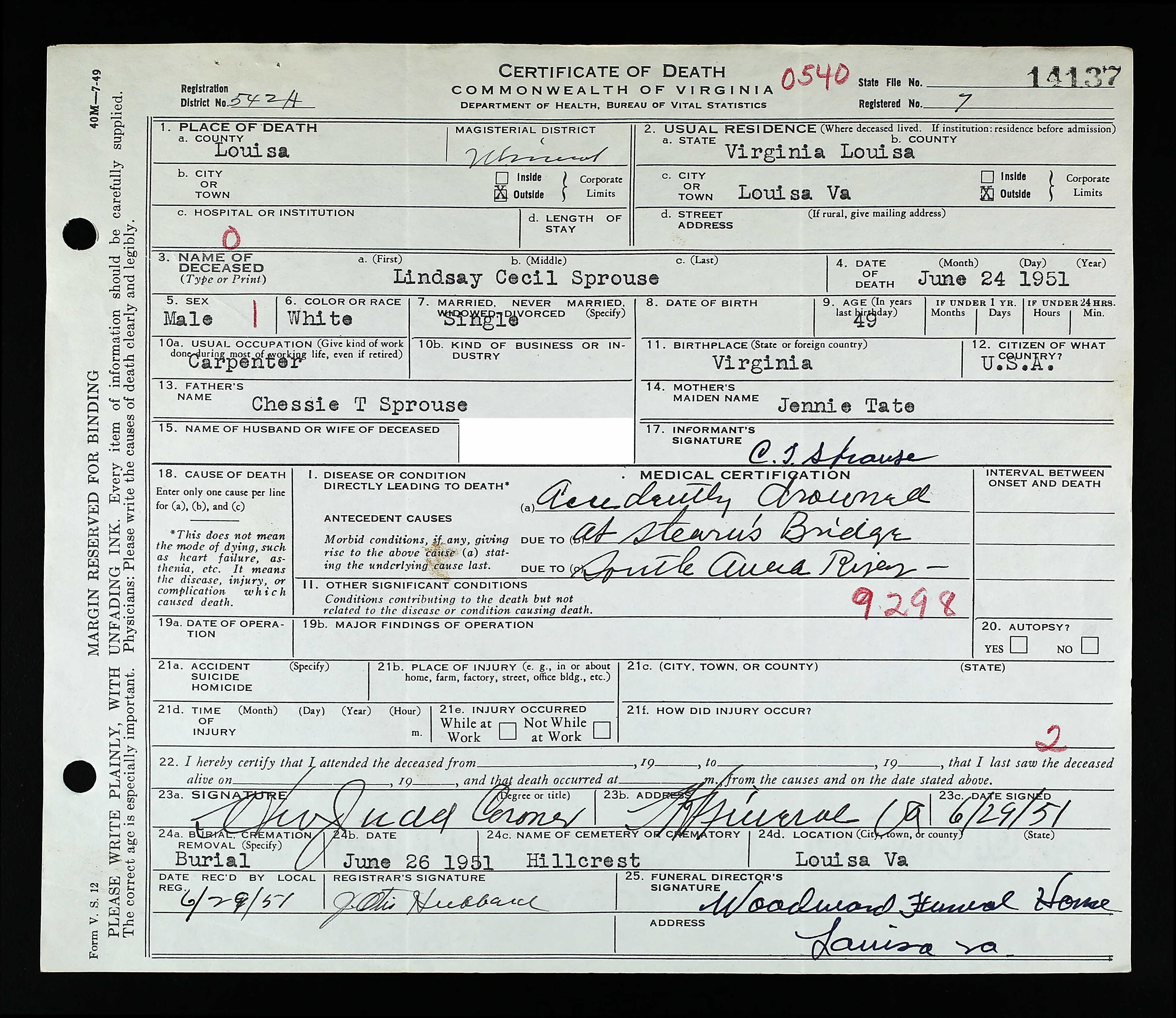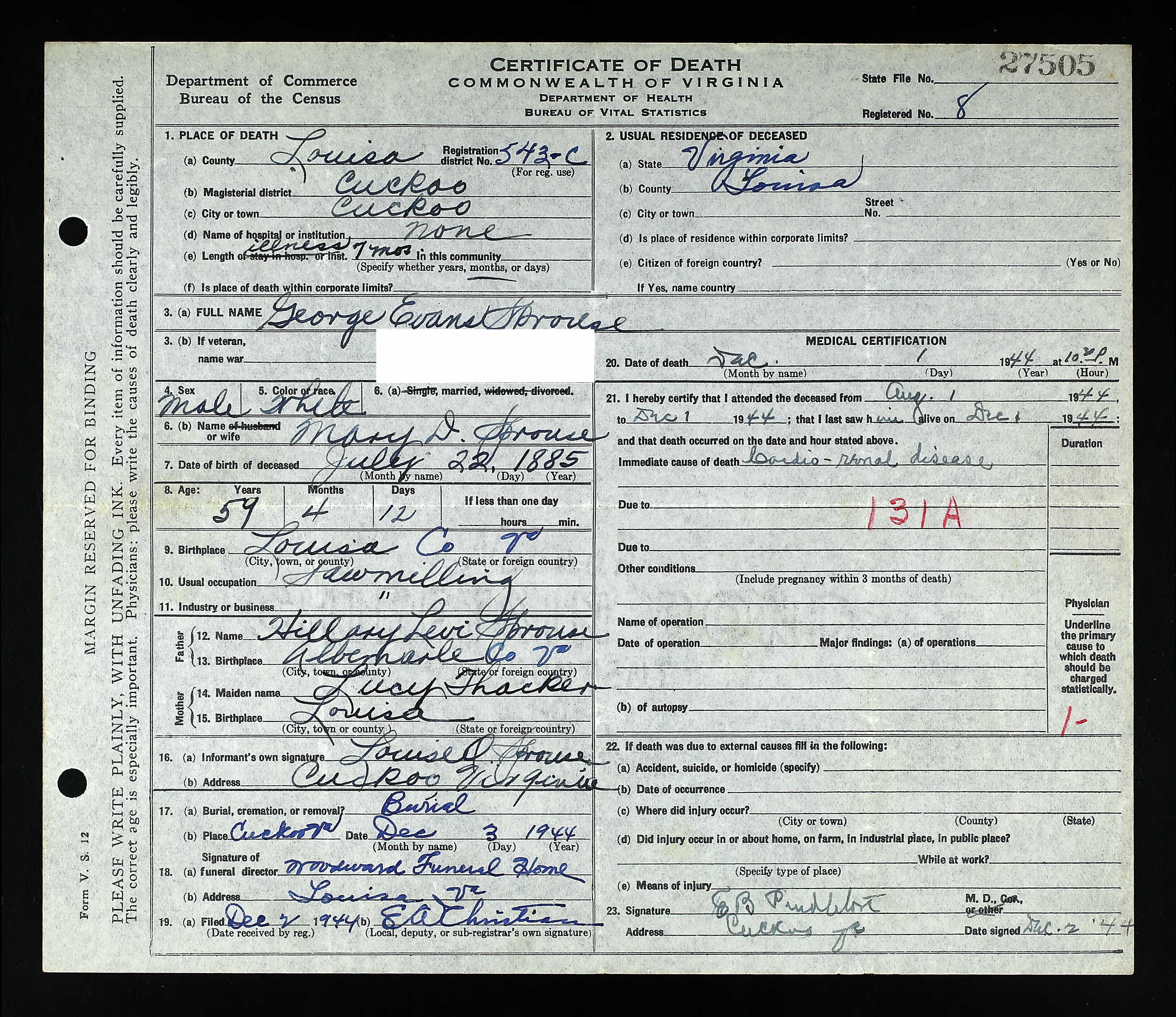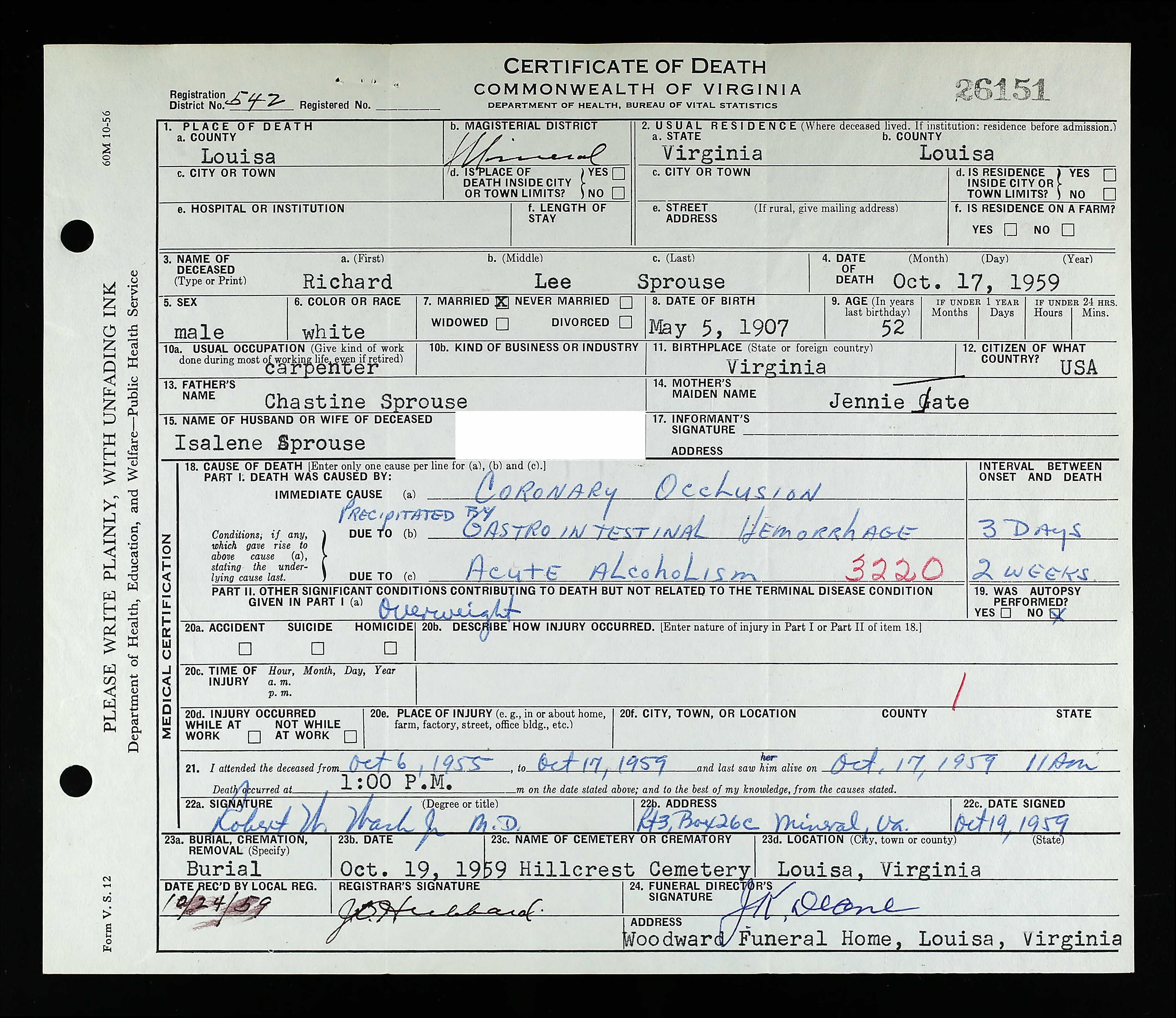 death place: Louisa, Louisa, Virginia