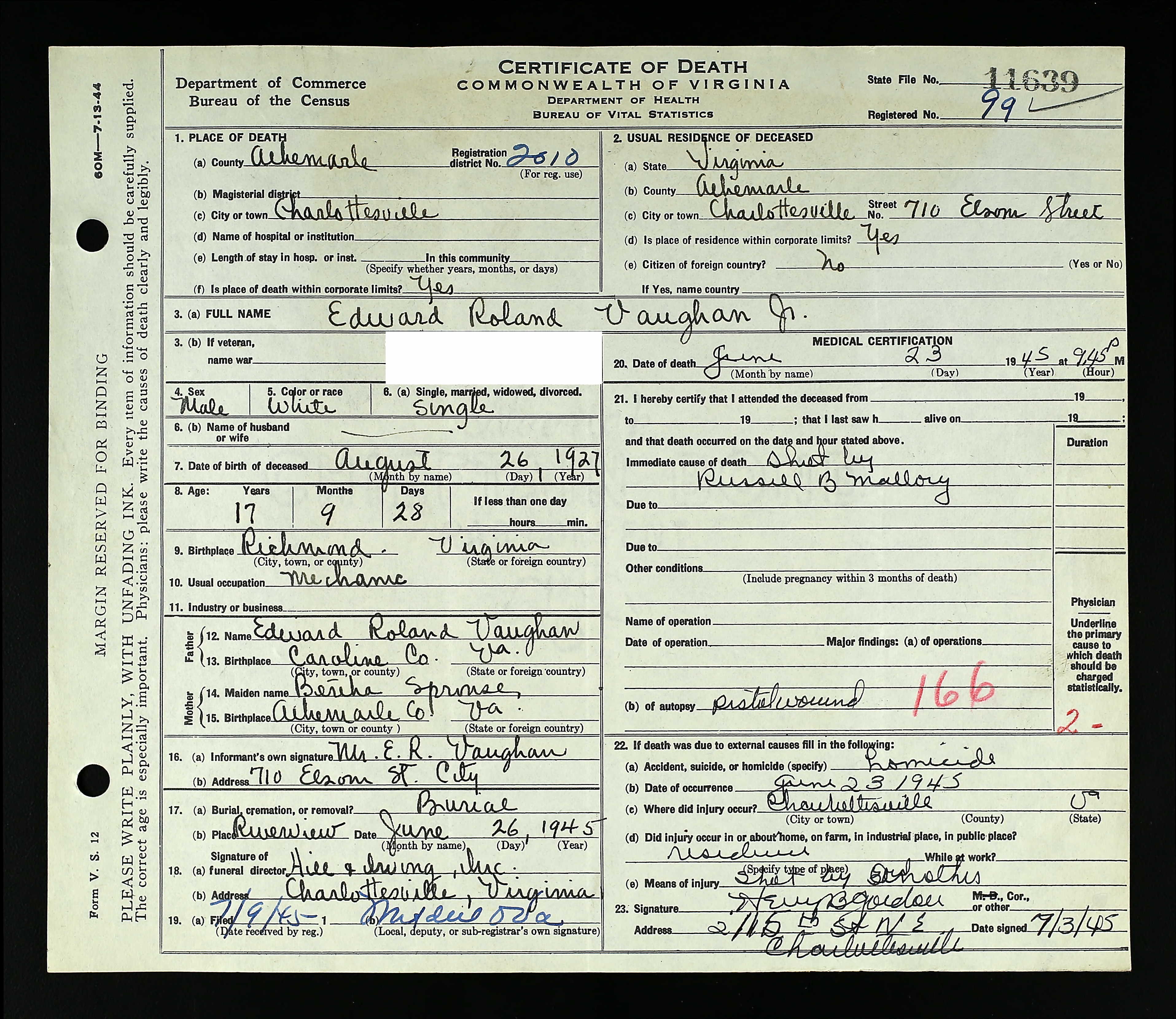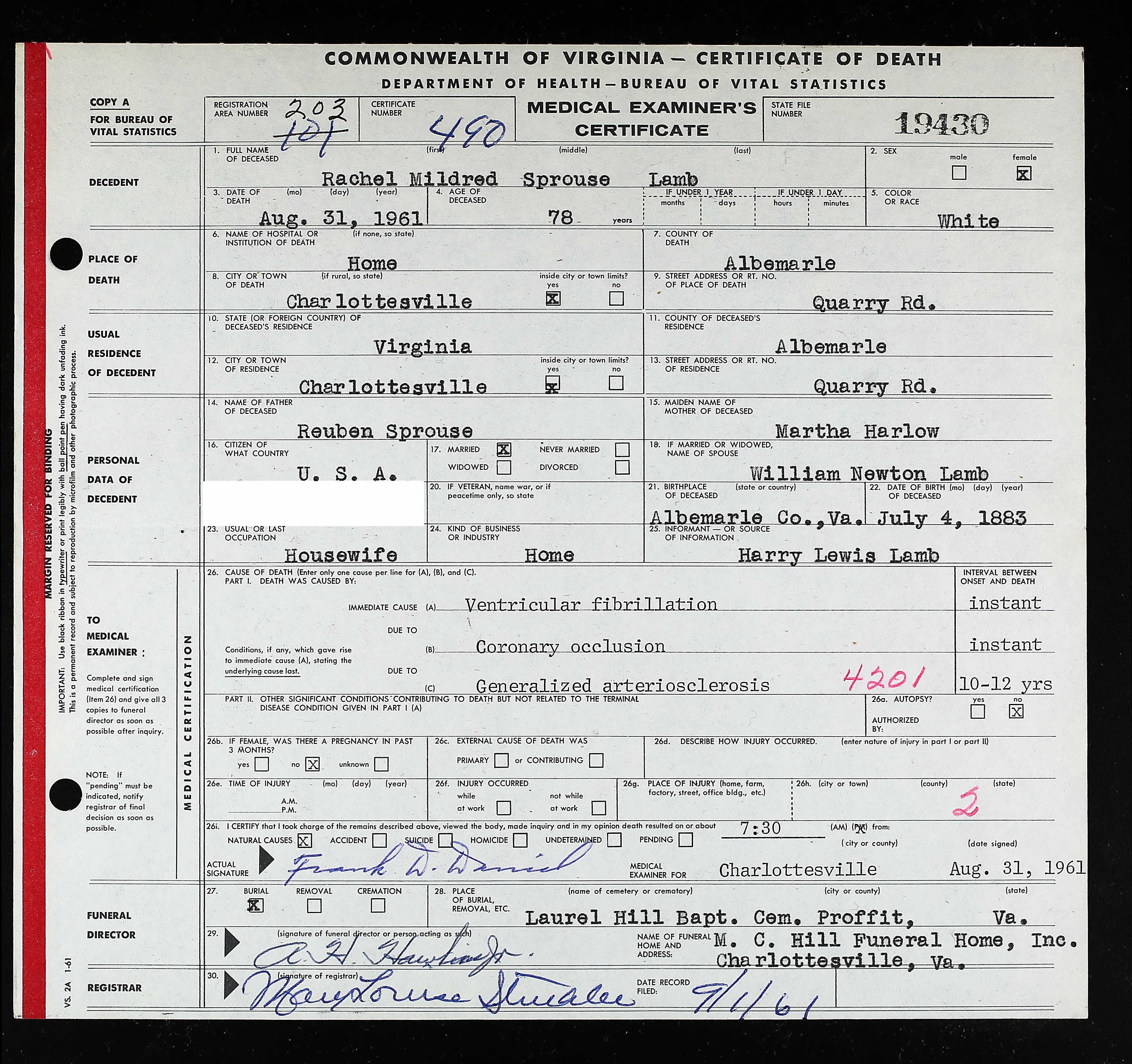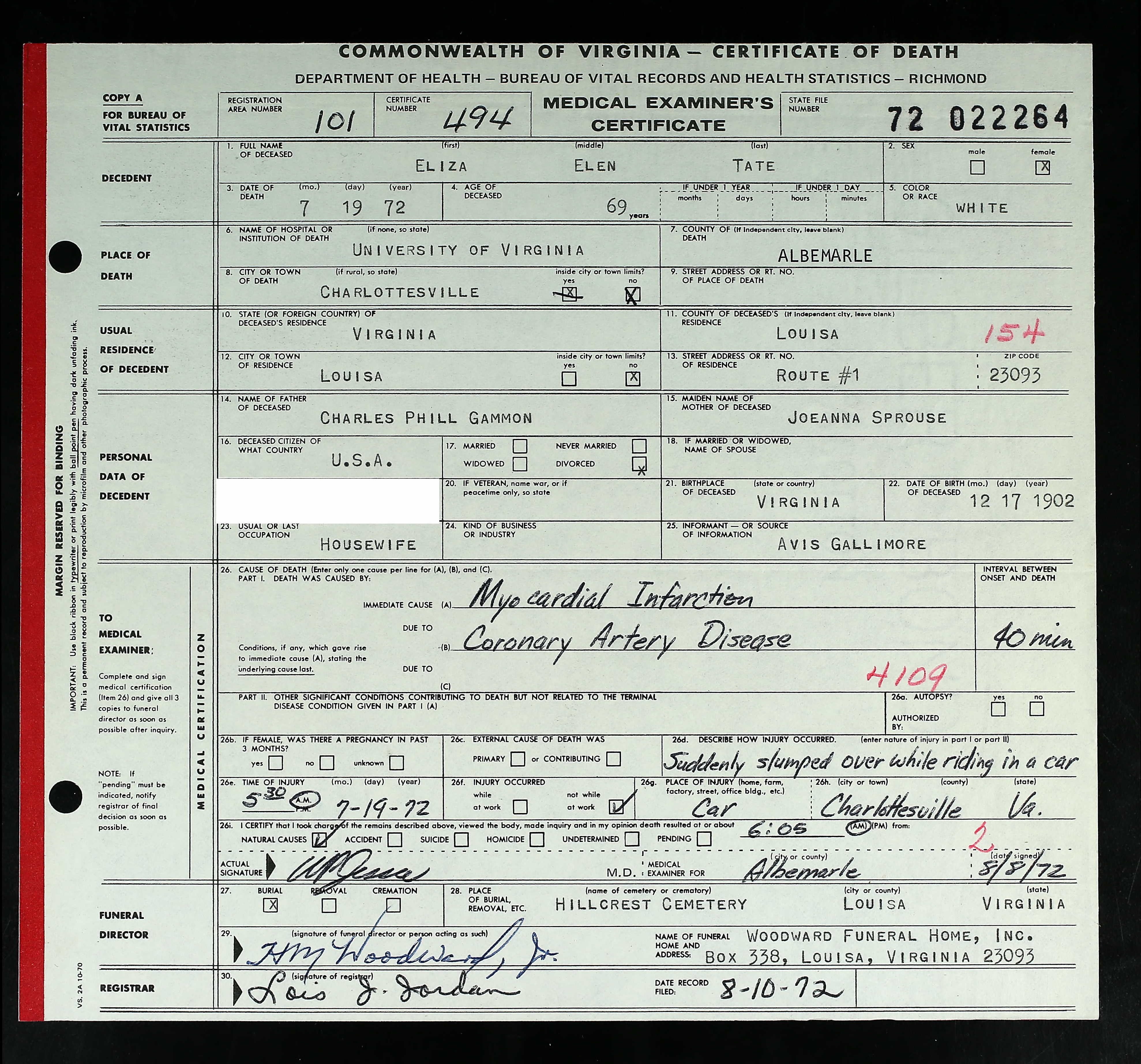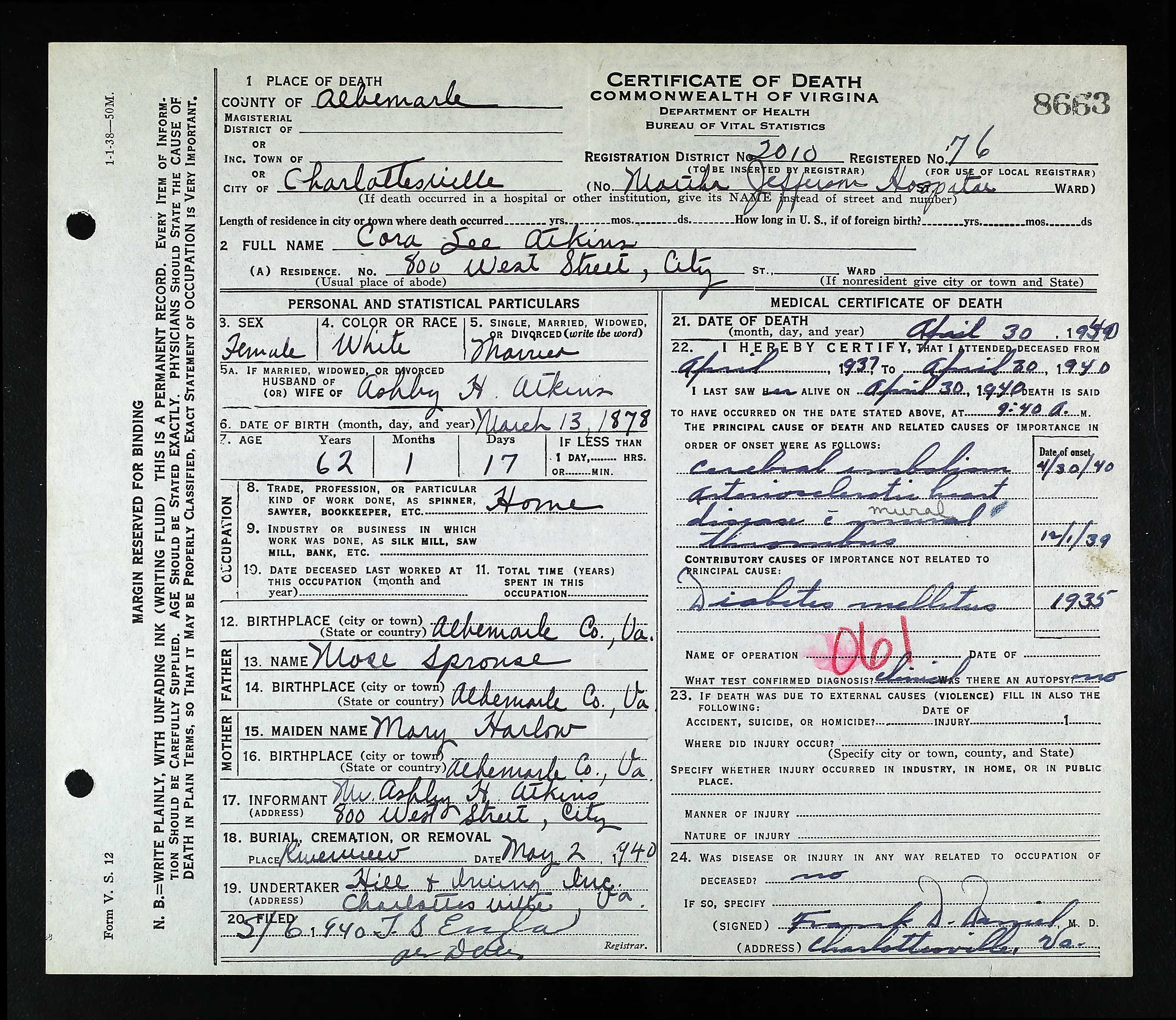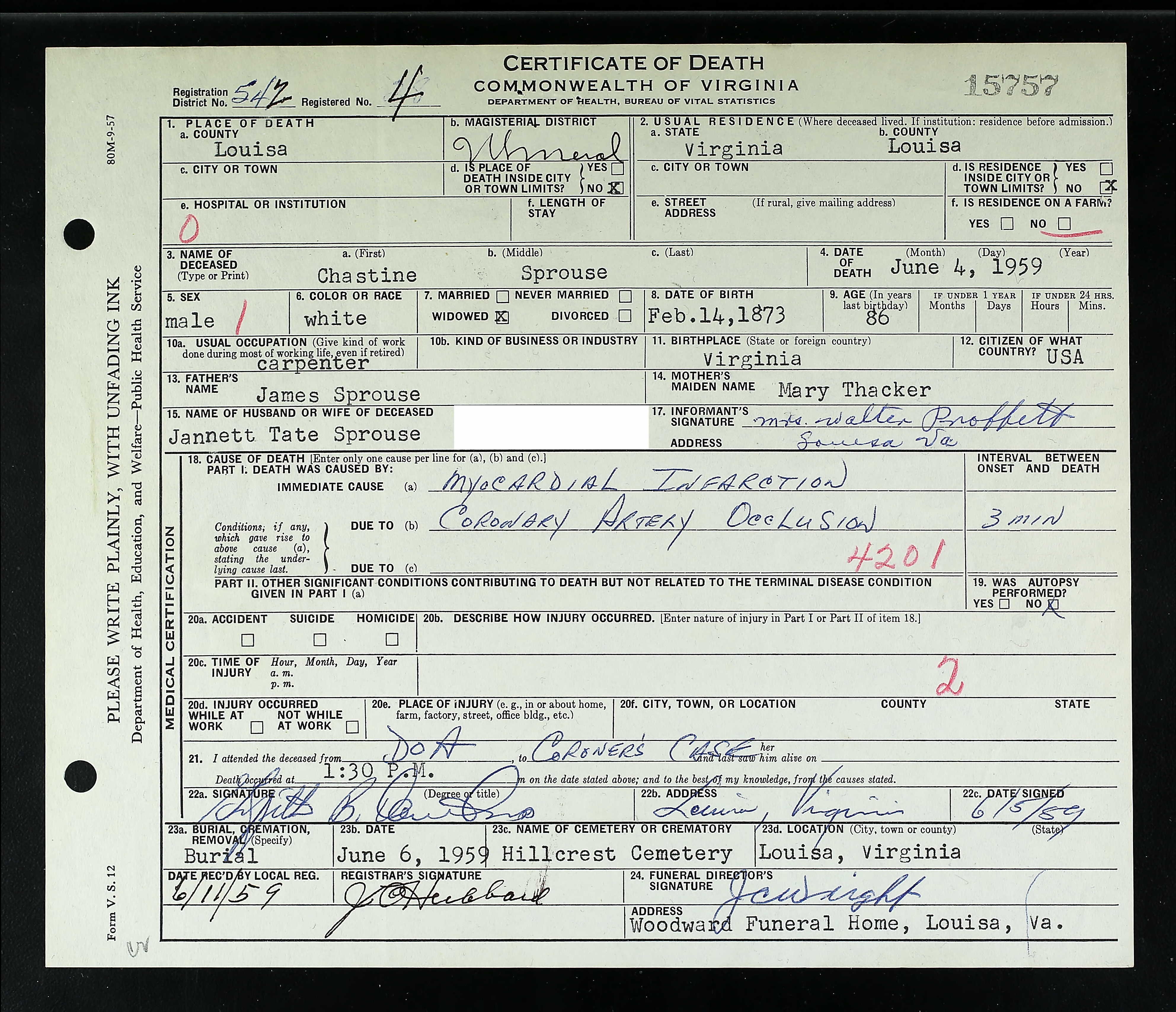 death place: Louisa, Louisa, Virginia