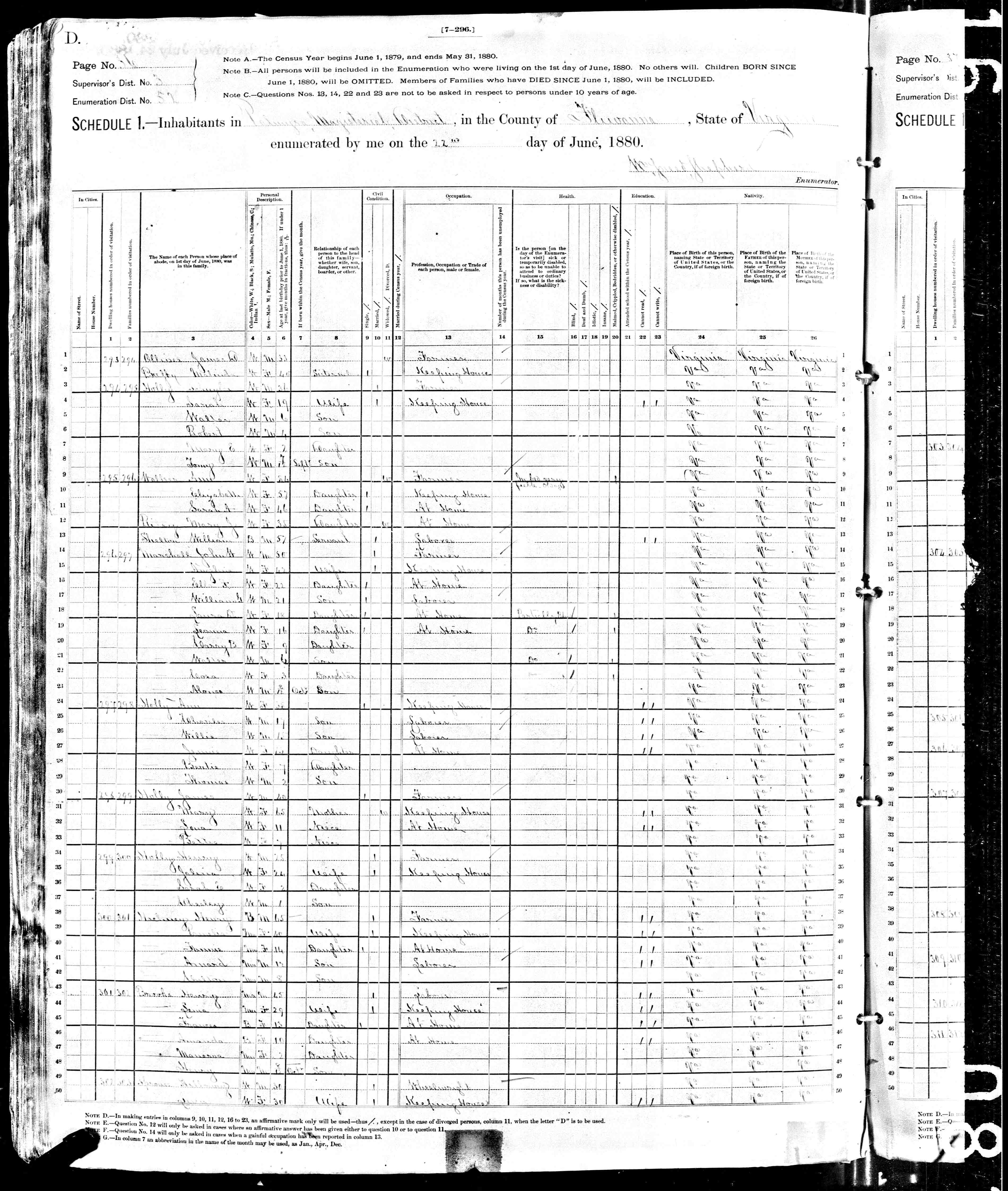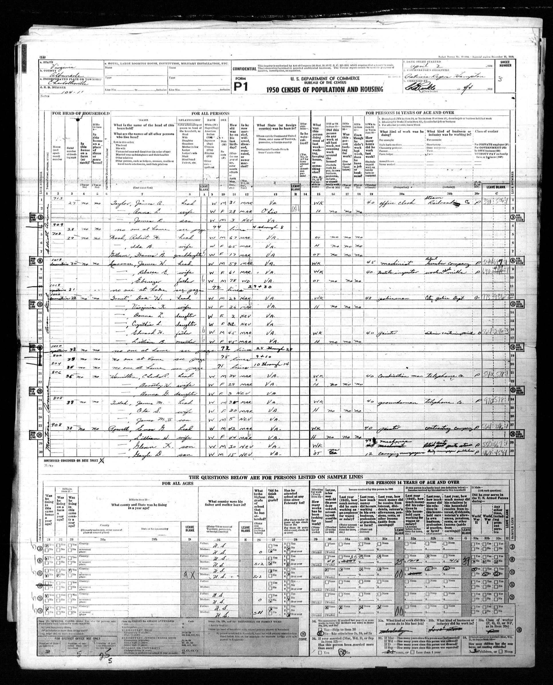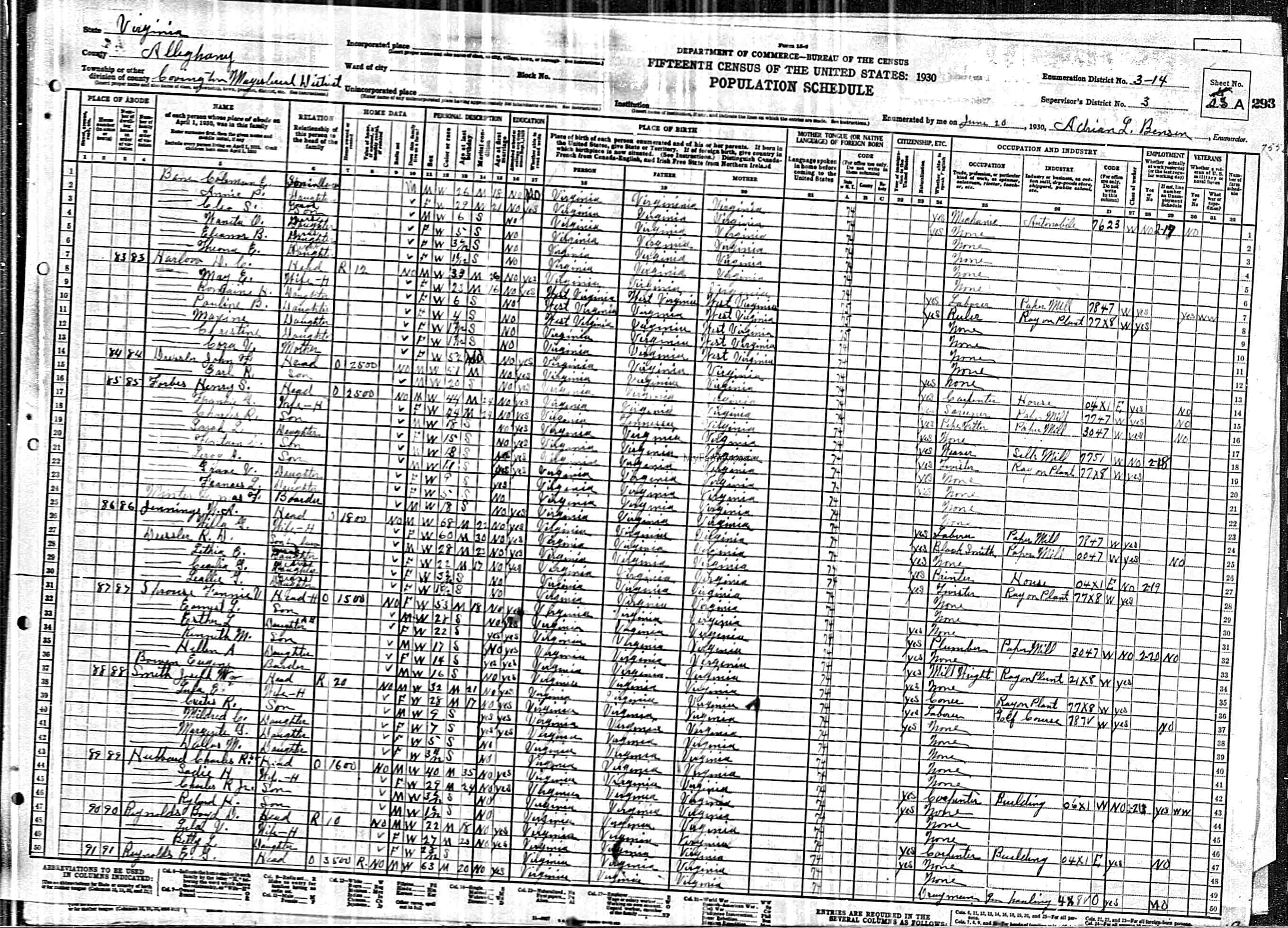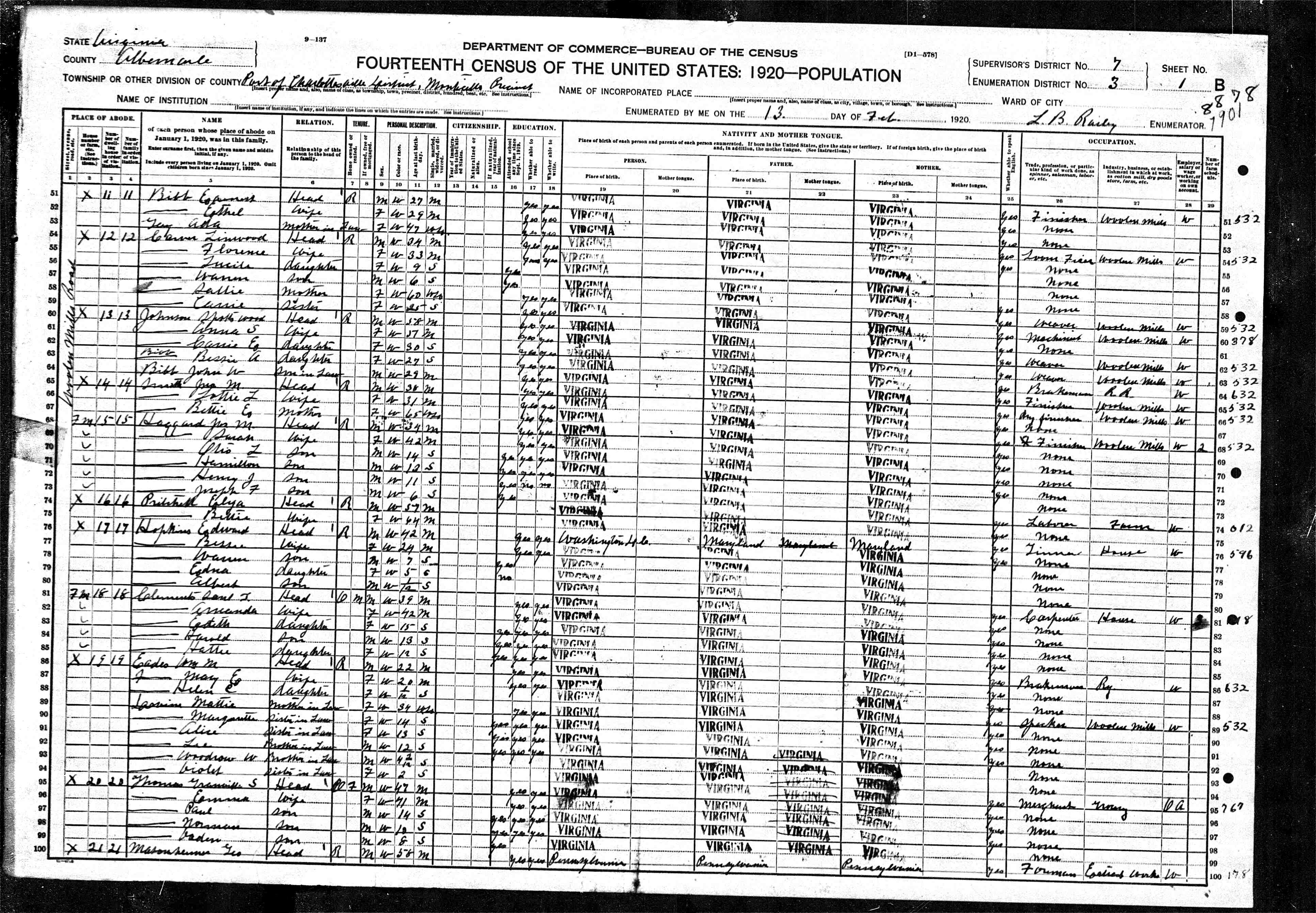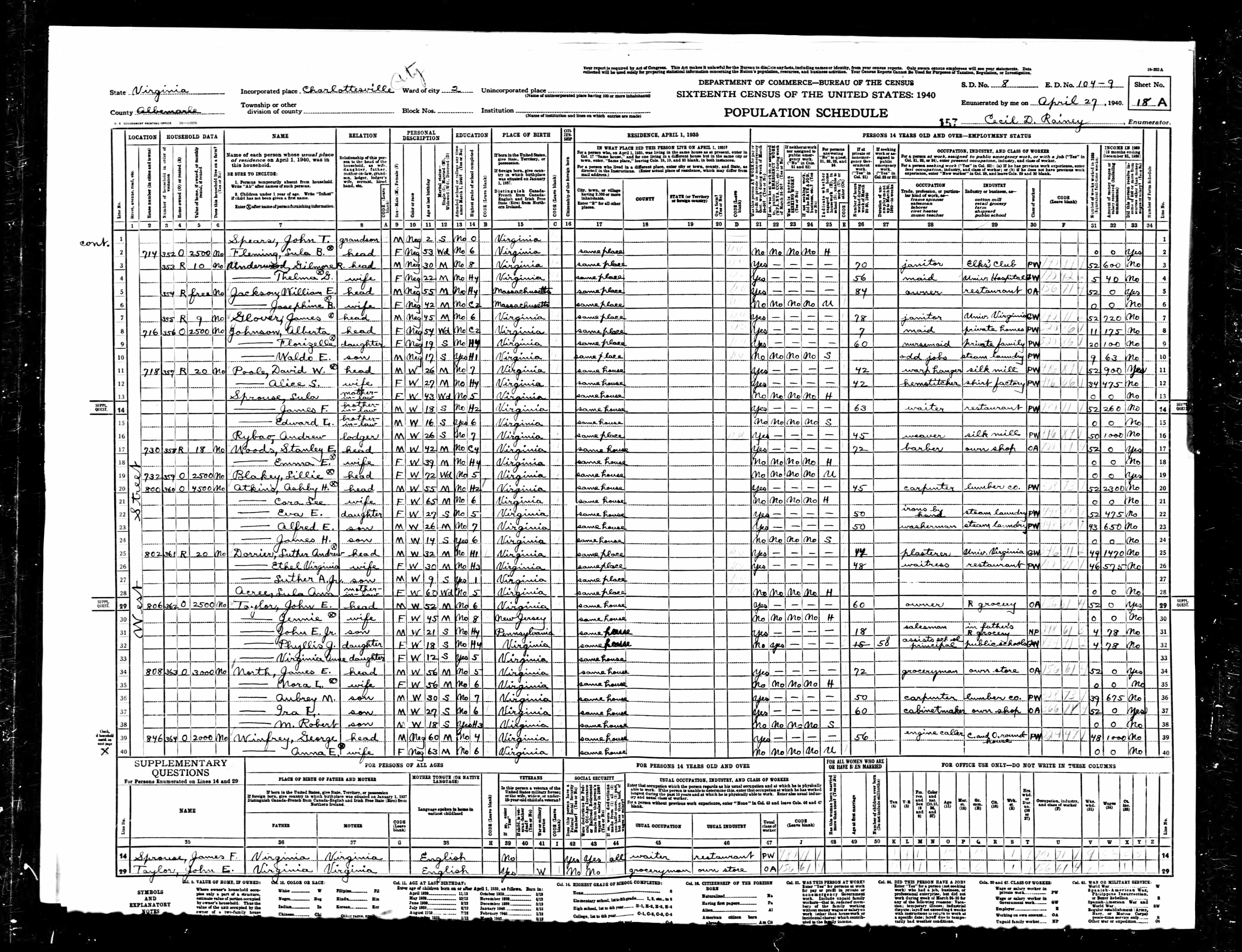 1074. 1940 Virginia Census, Albemarle, Rivanna, ED 2-6, Sht 11B, Image 22 Roll T627.