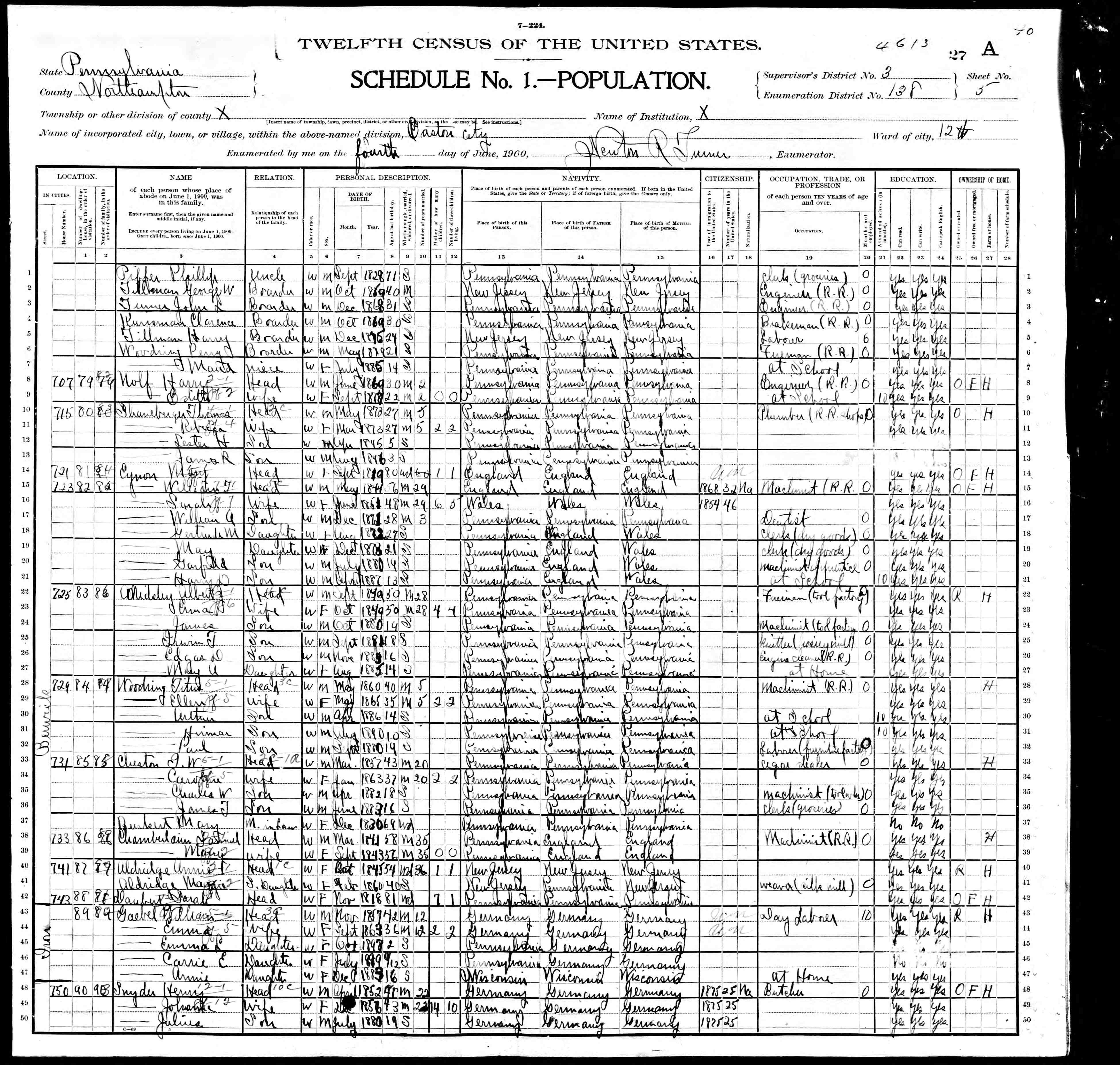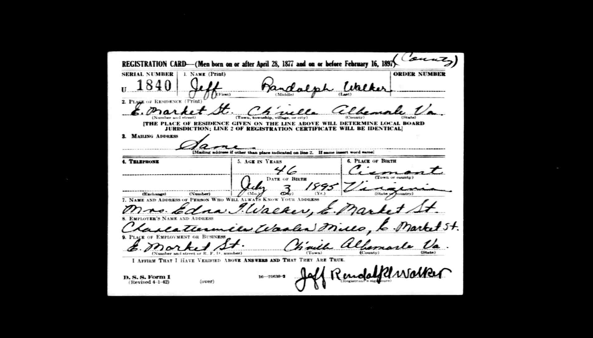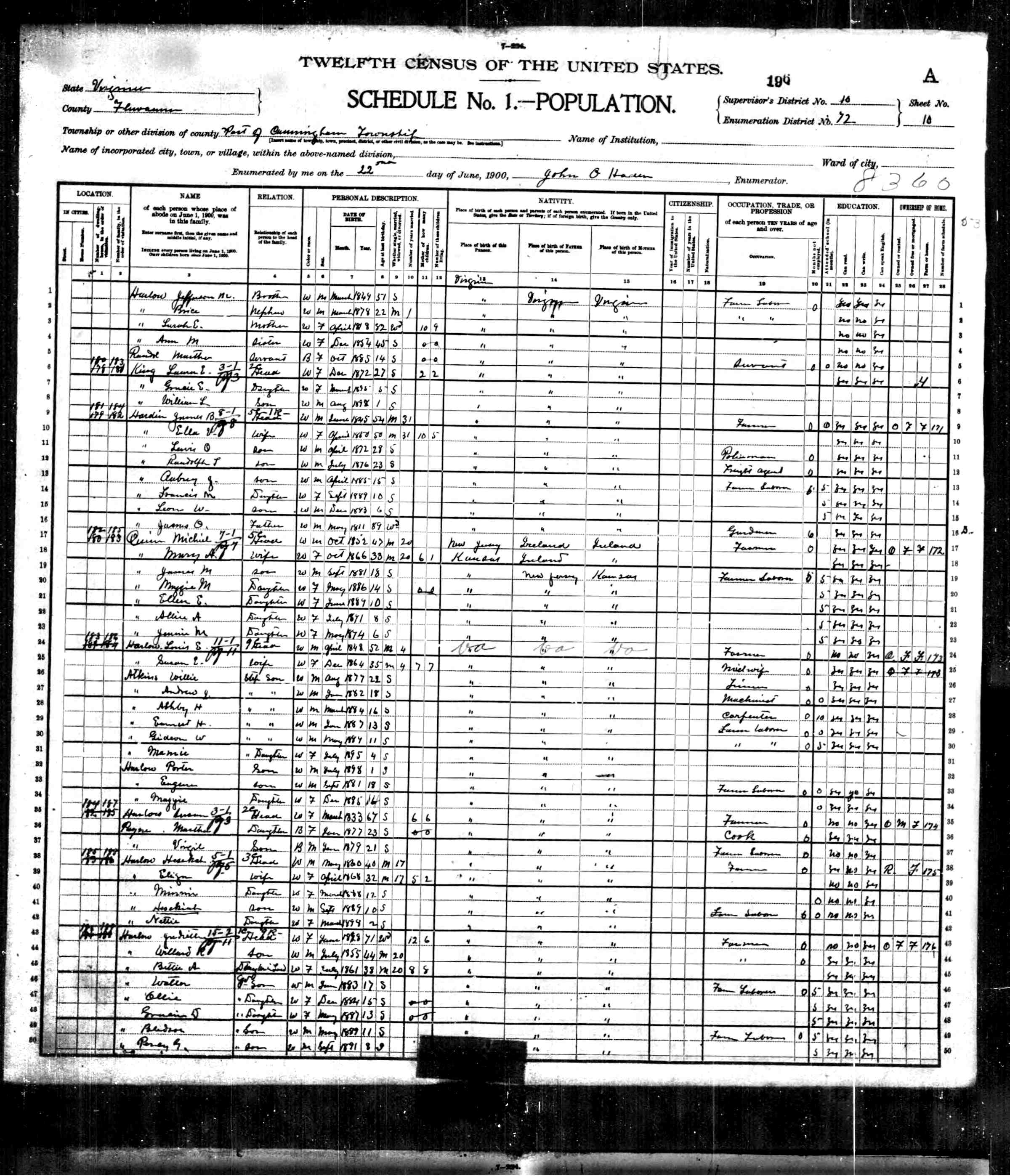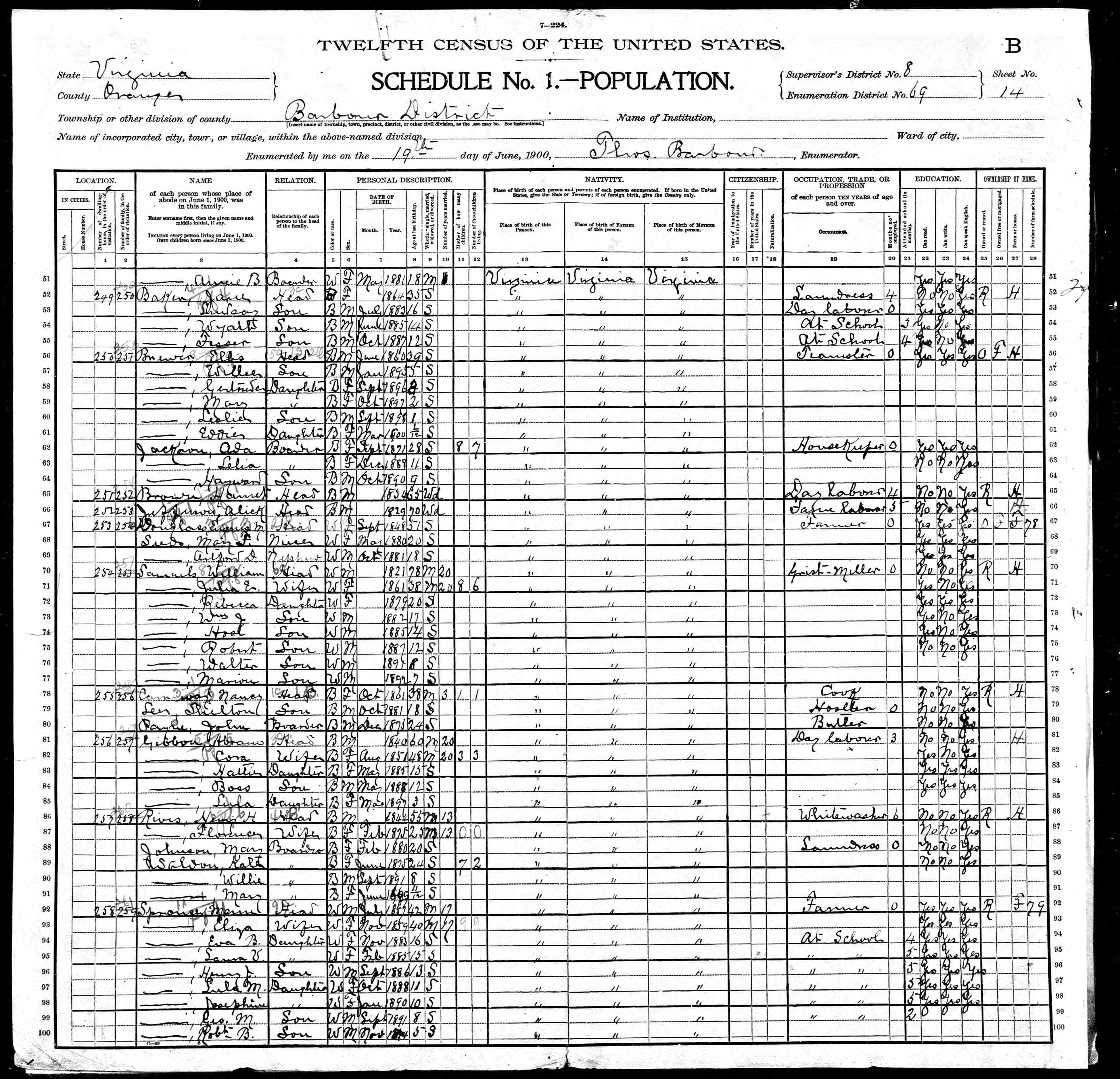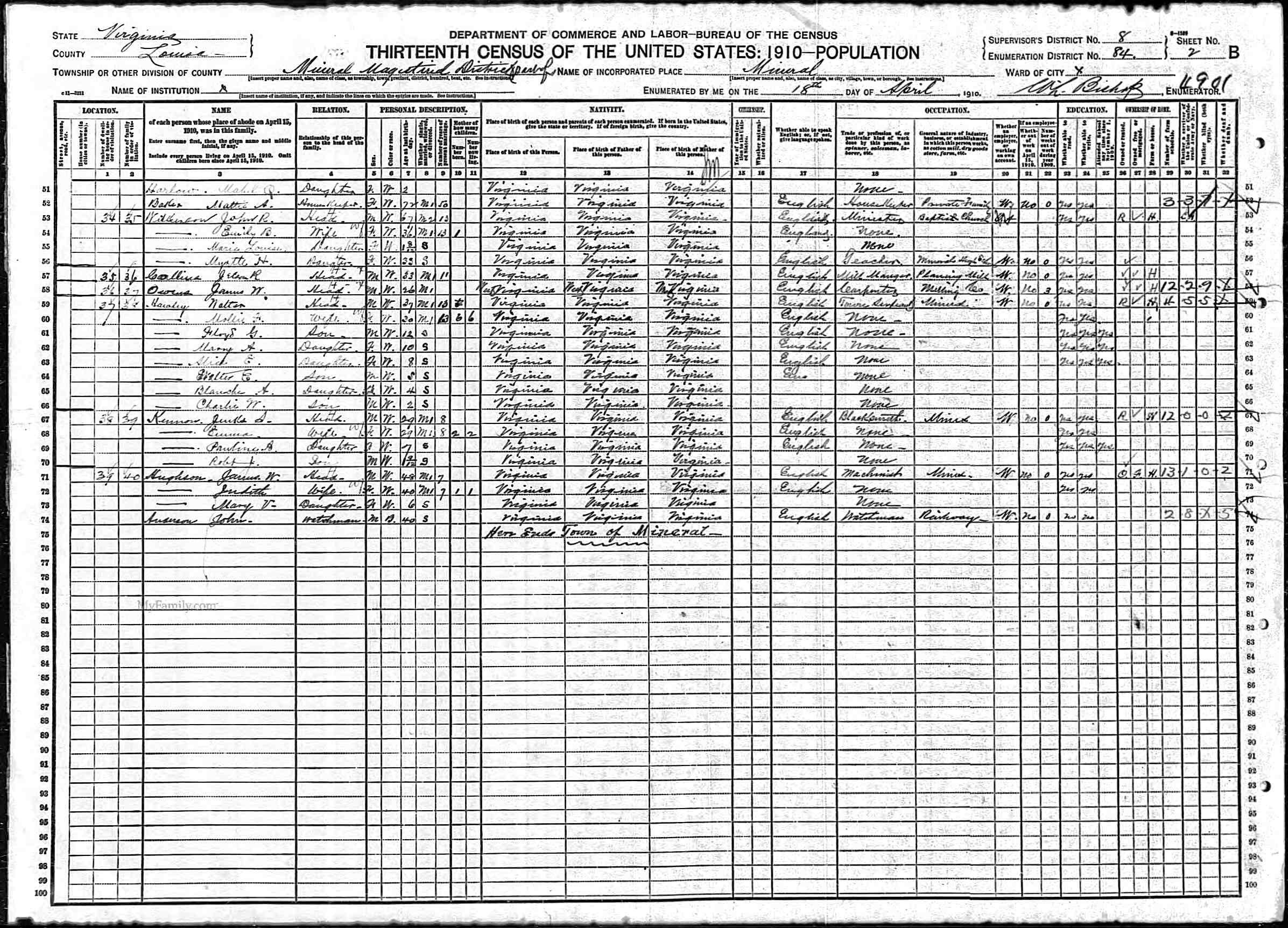 1074. 1940 Virginia Census, Albemarle, Rivanna, ED 2-6, Sht 11B, Image 22 Roll T627.