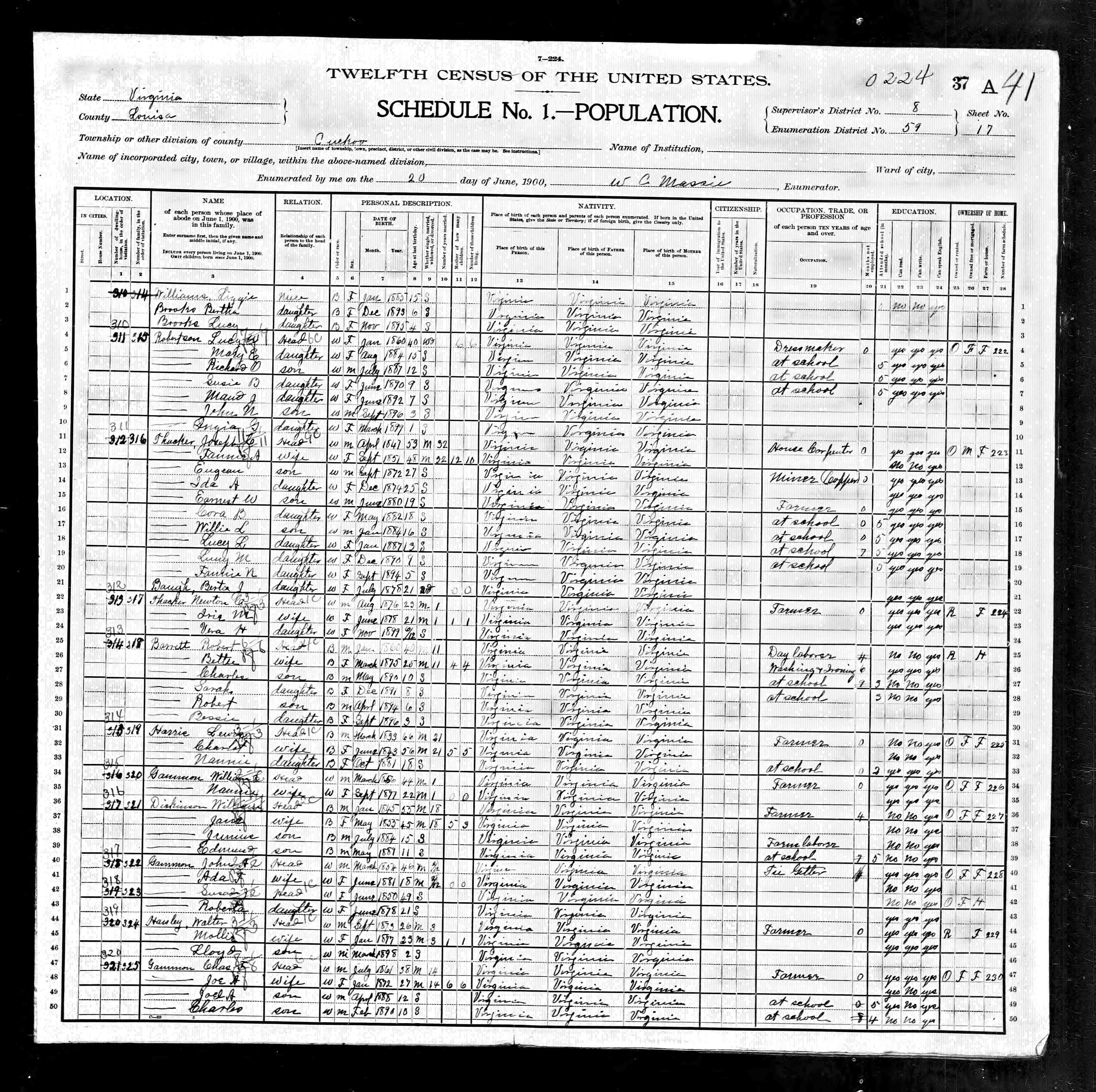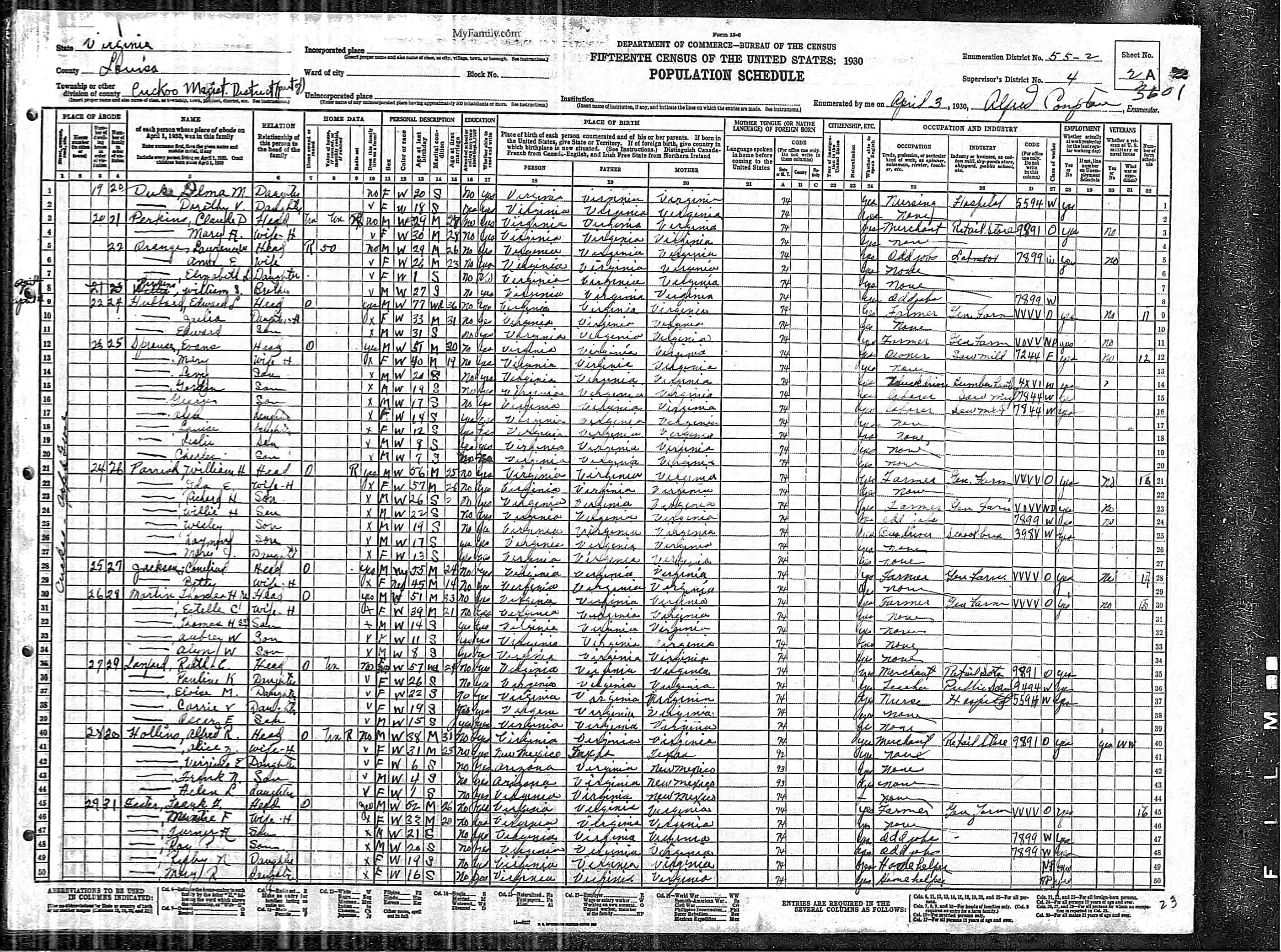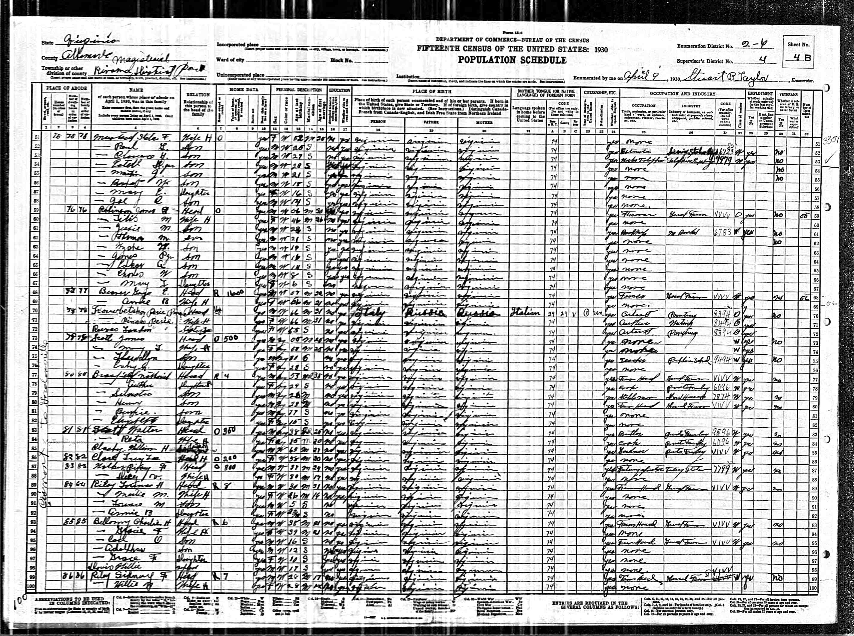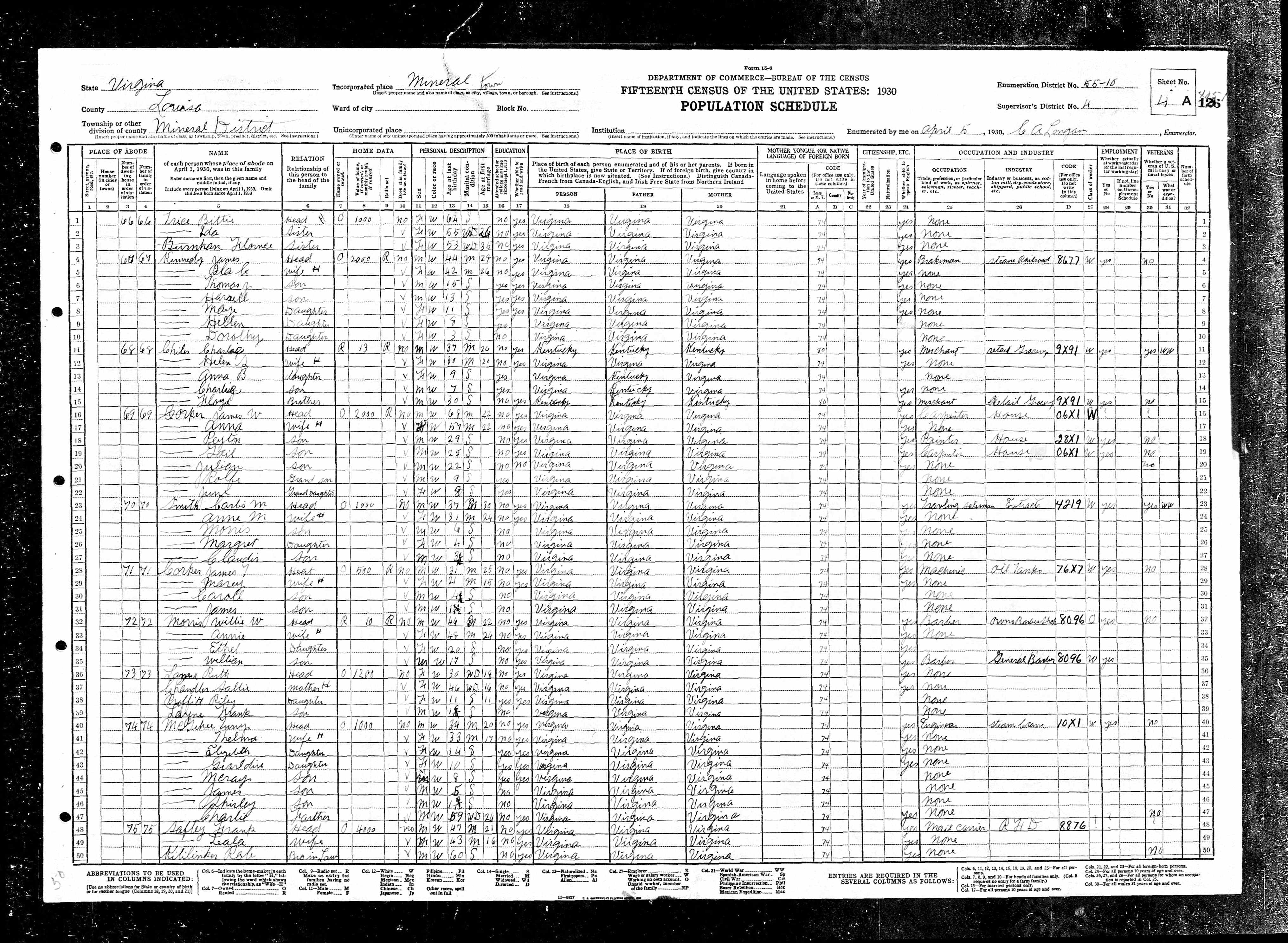 1064. 1930 Virginia Census, Goochland, Byrd, ED 1, Sht 9A, Image 17 Roll T626_2445, p. 9A, ED 1, Image 18.