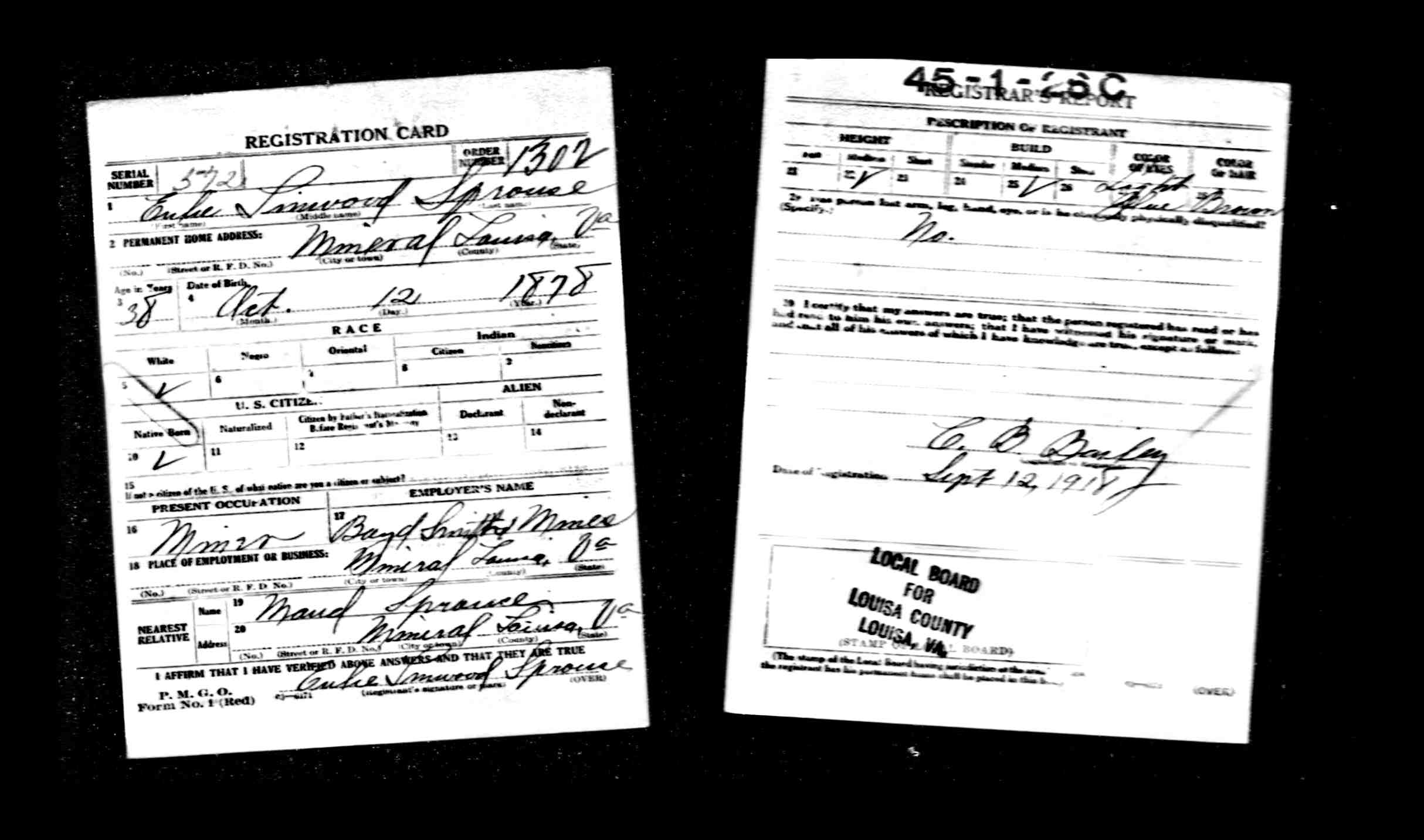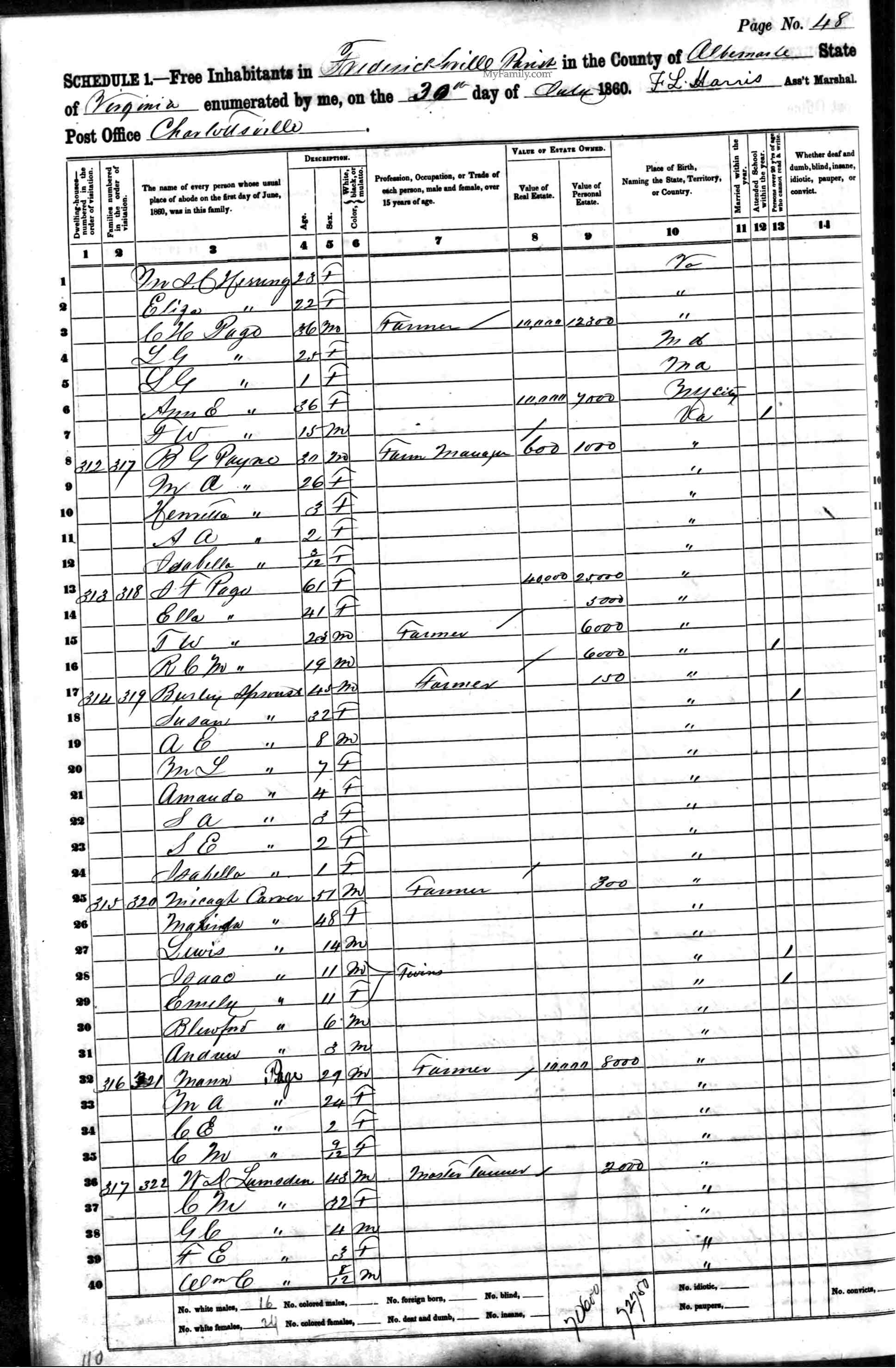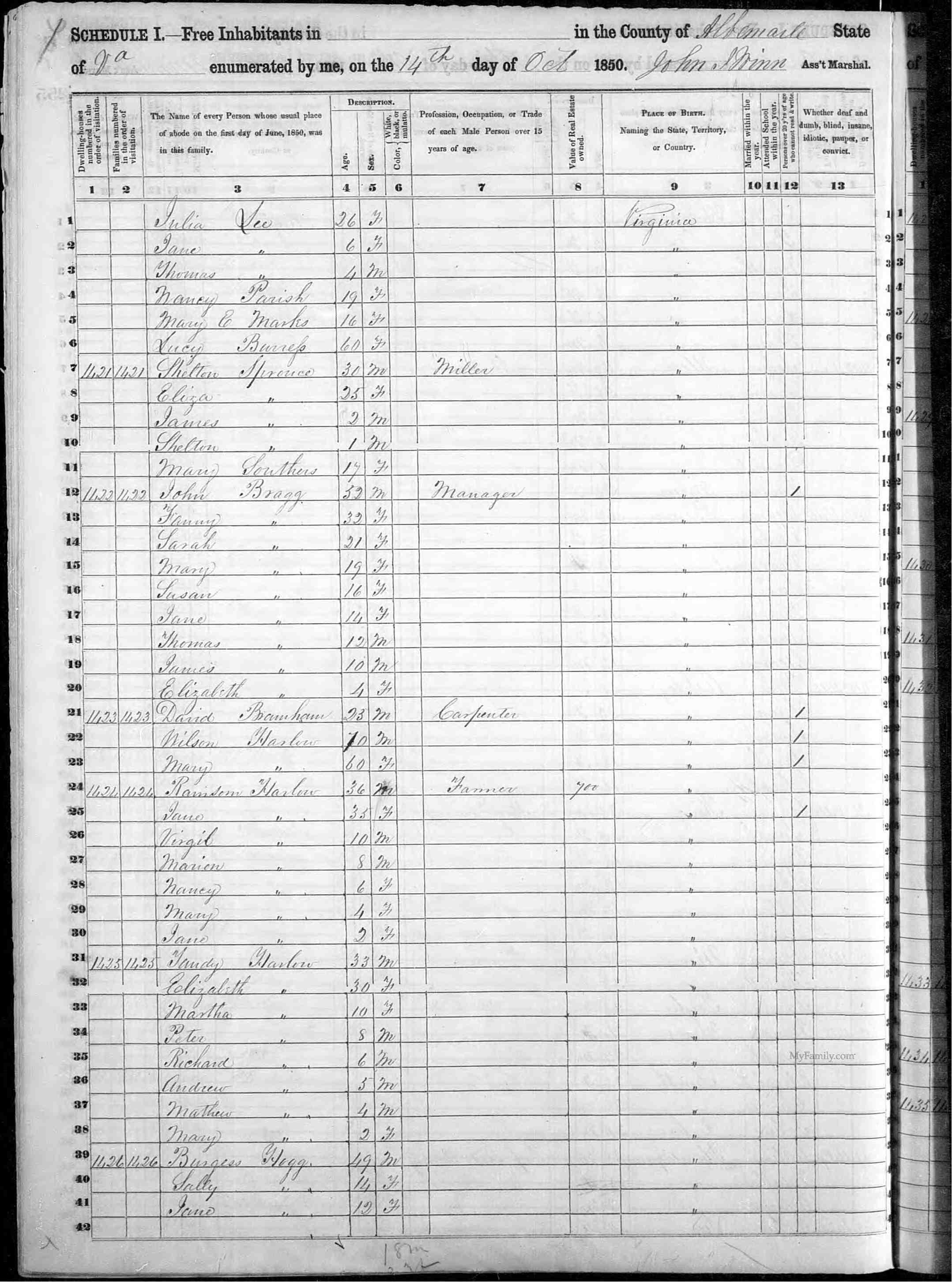 James Sprouse, age 48, trade planter, residence Louisa, born Fluvanna.