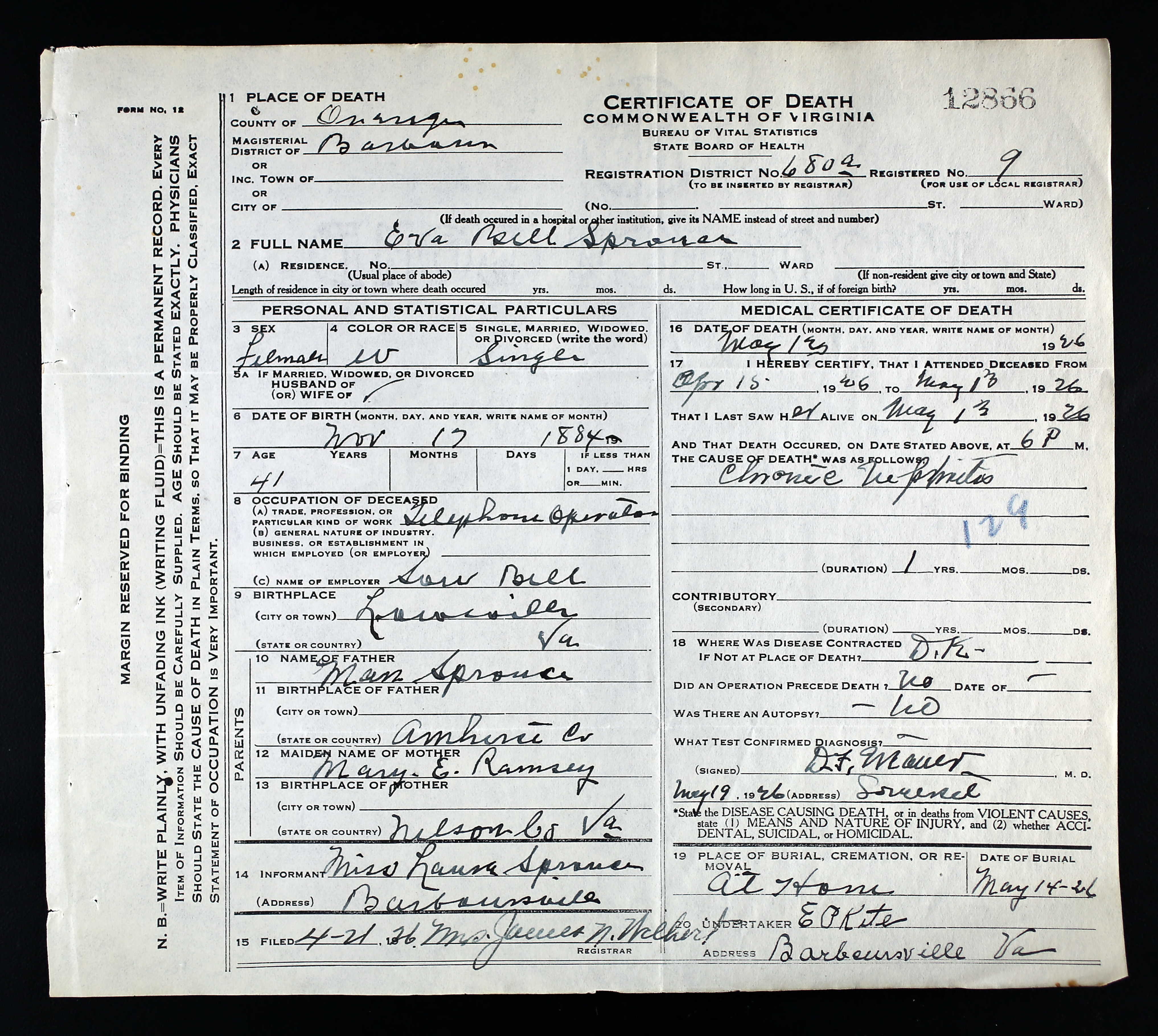 12. (Virginia Deaths and Burials Database Family Search Index entries derived from digital copies of originals housed in various repositories throughout Virginia.), record title: Virginia Deaths and Burials, 1853-1912