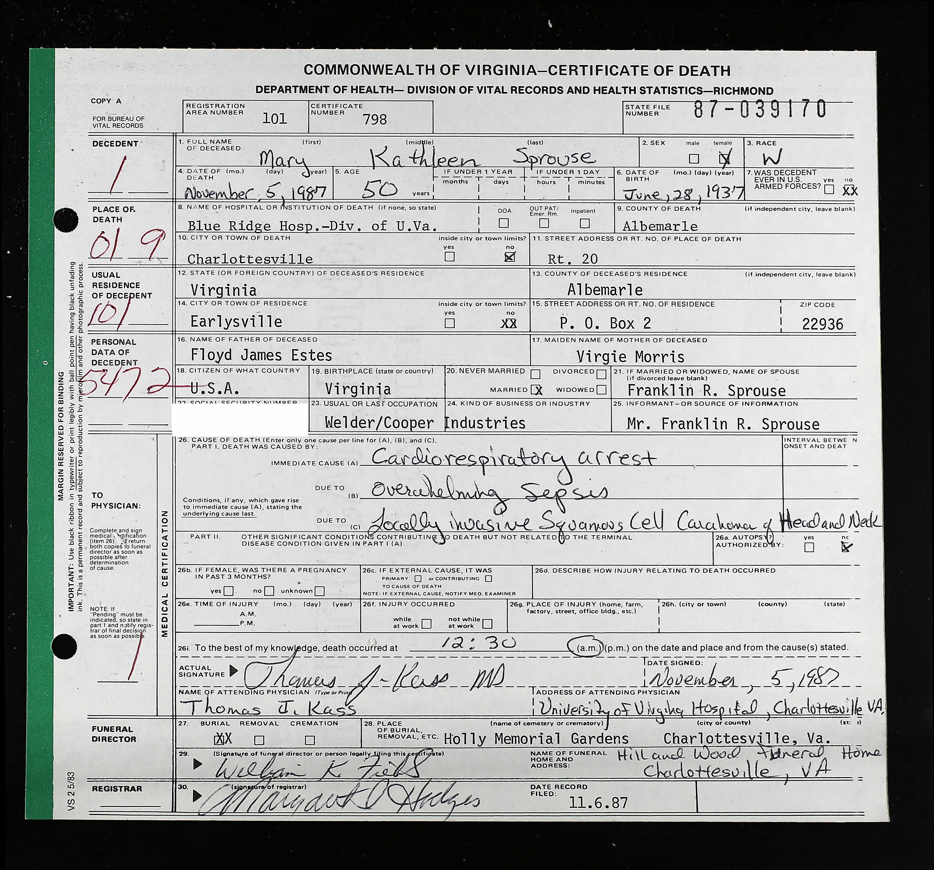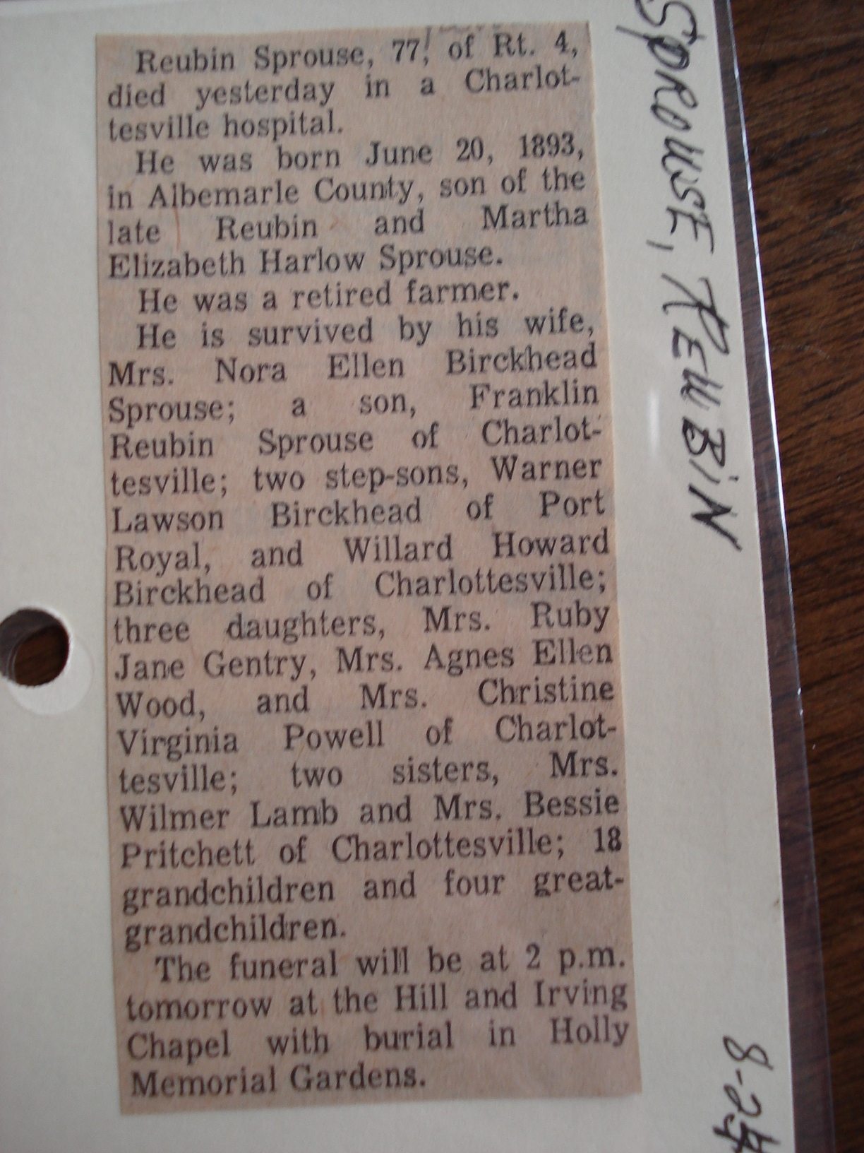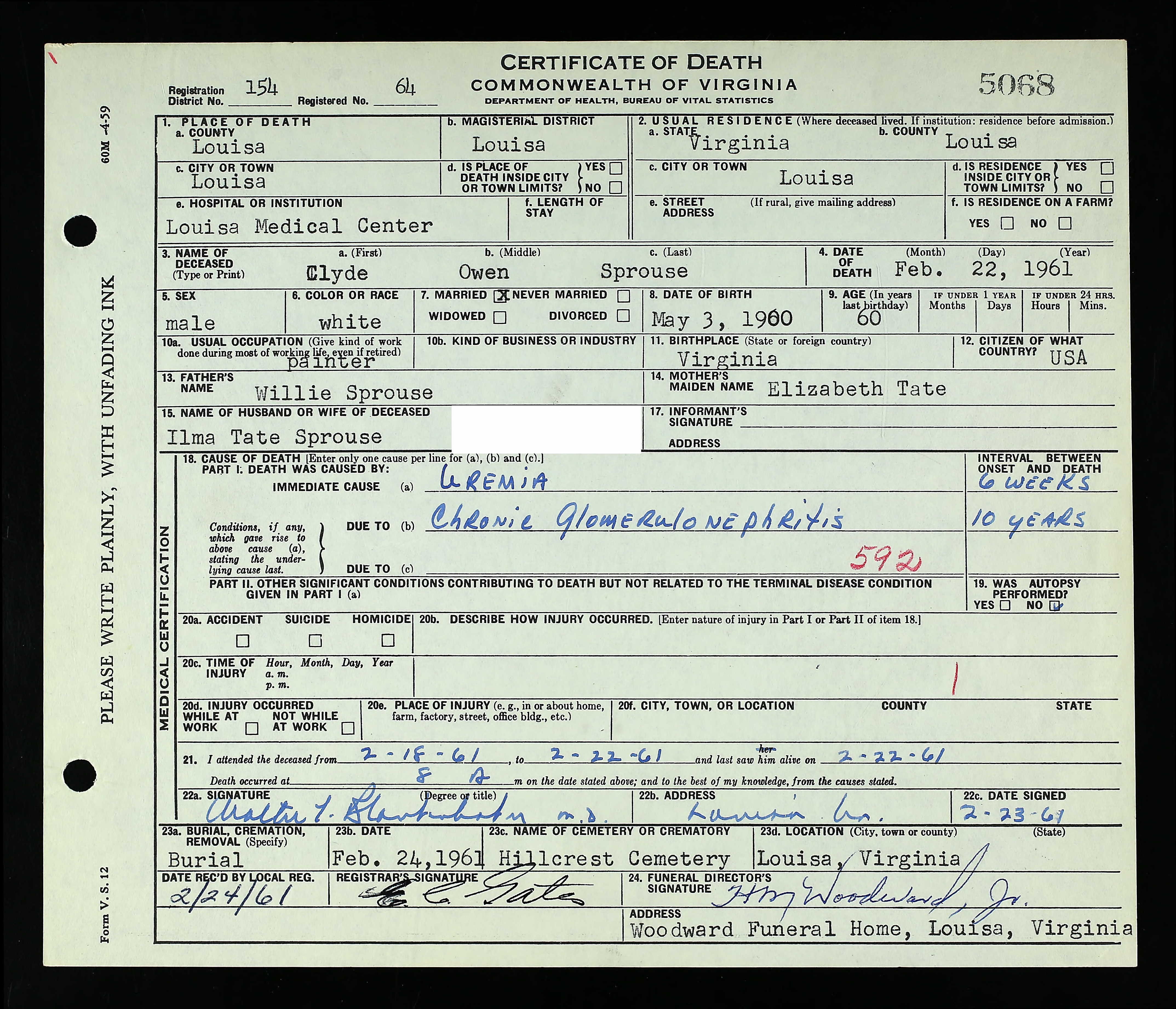 Deceased Name: Warney E. Sprouse