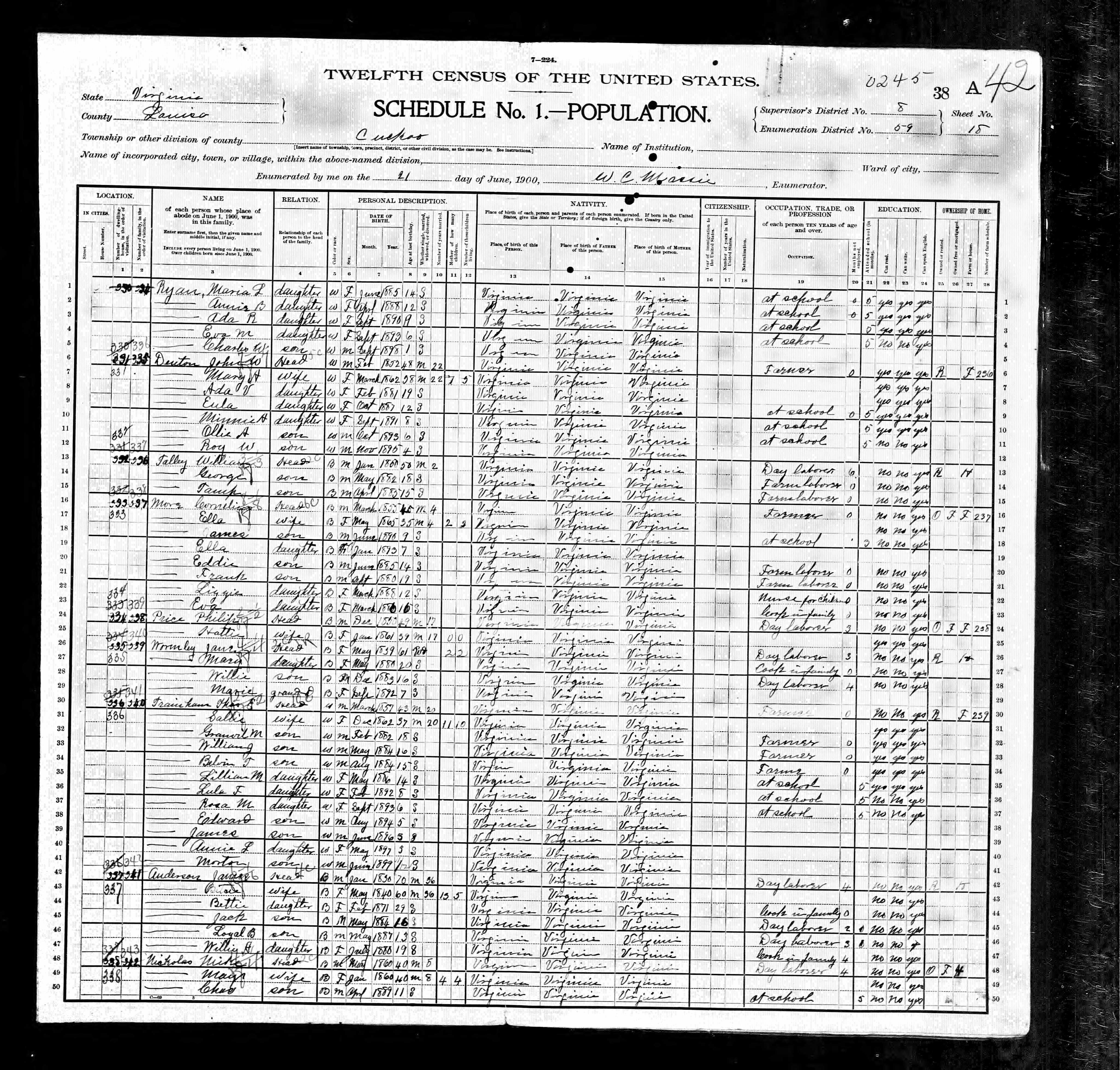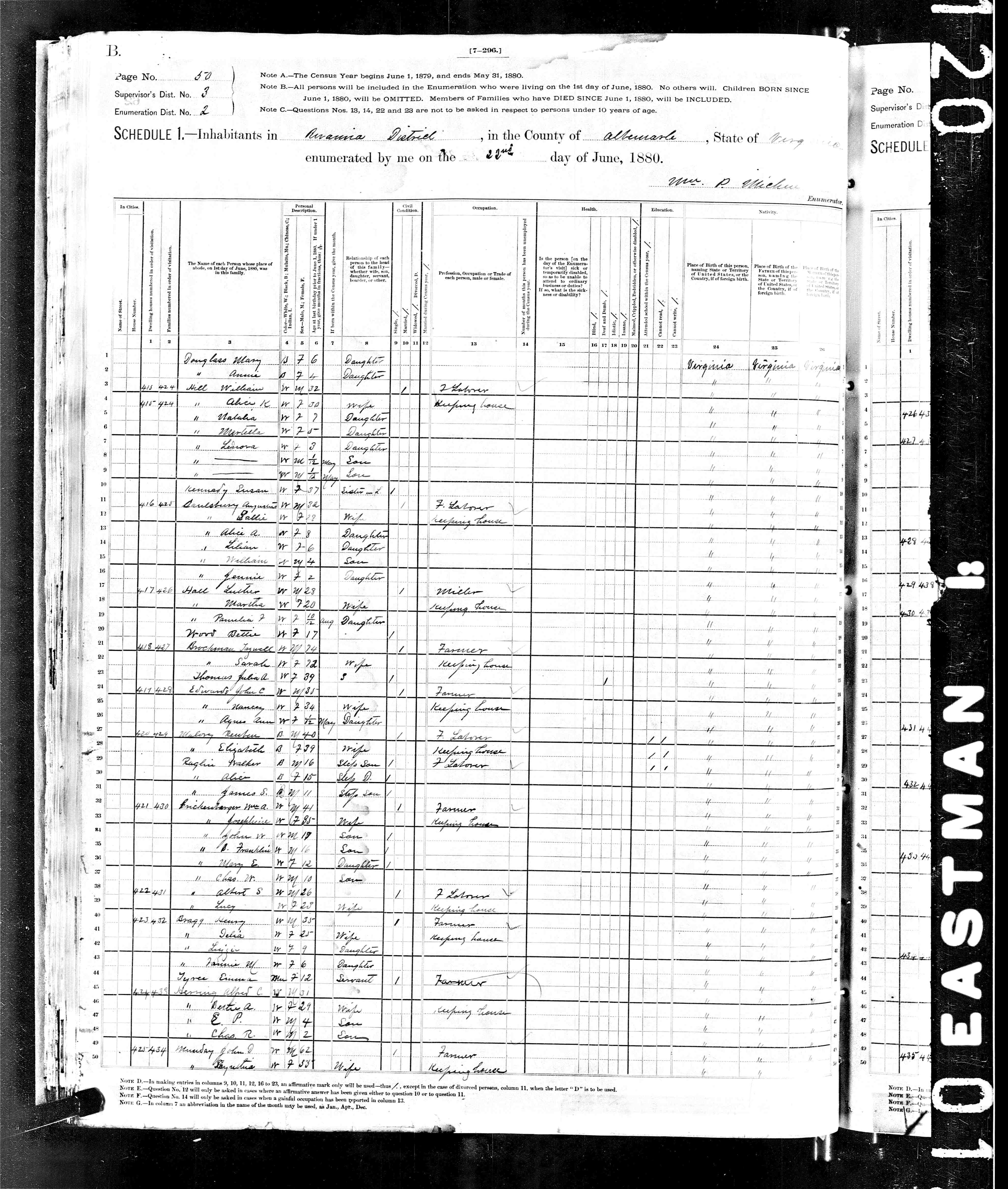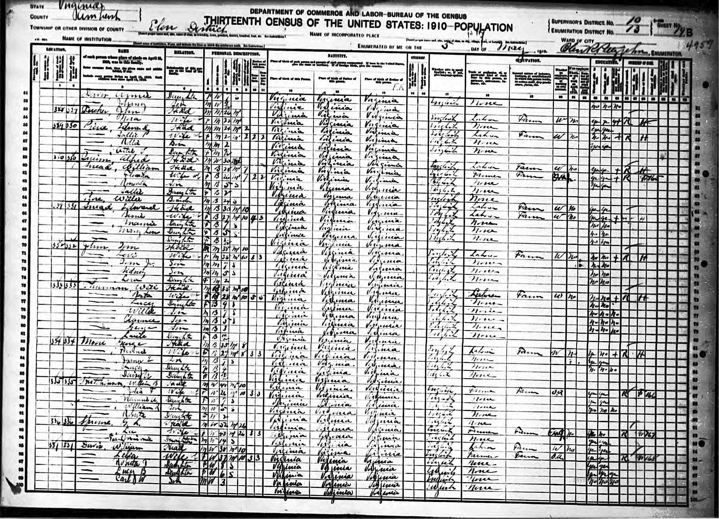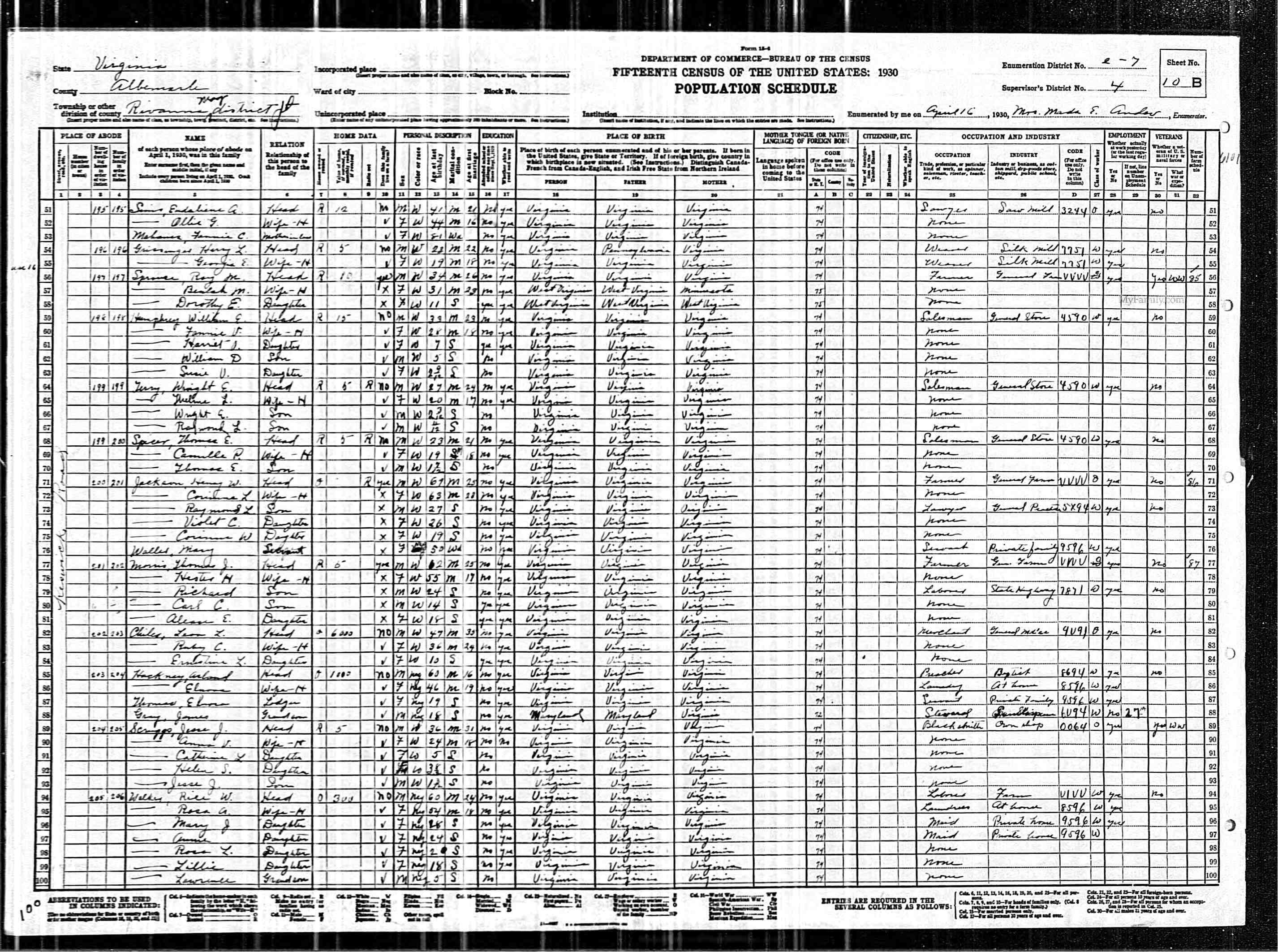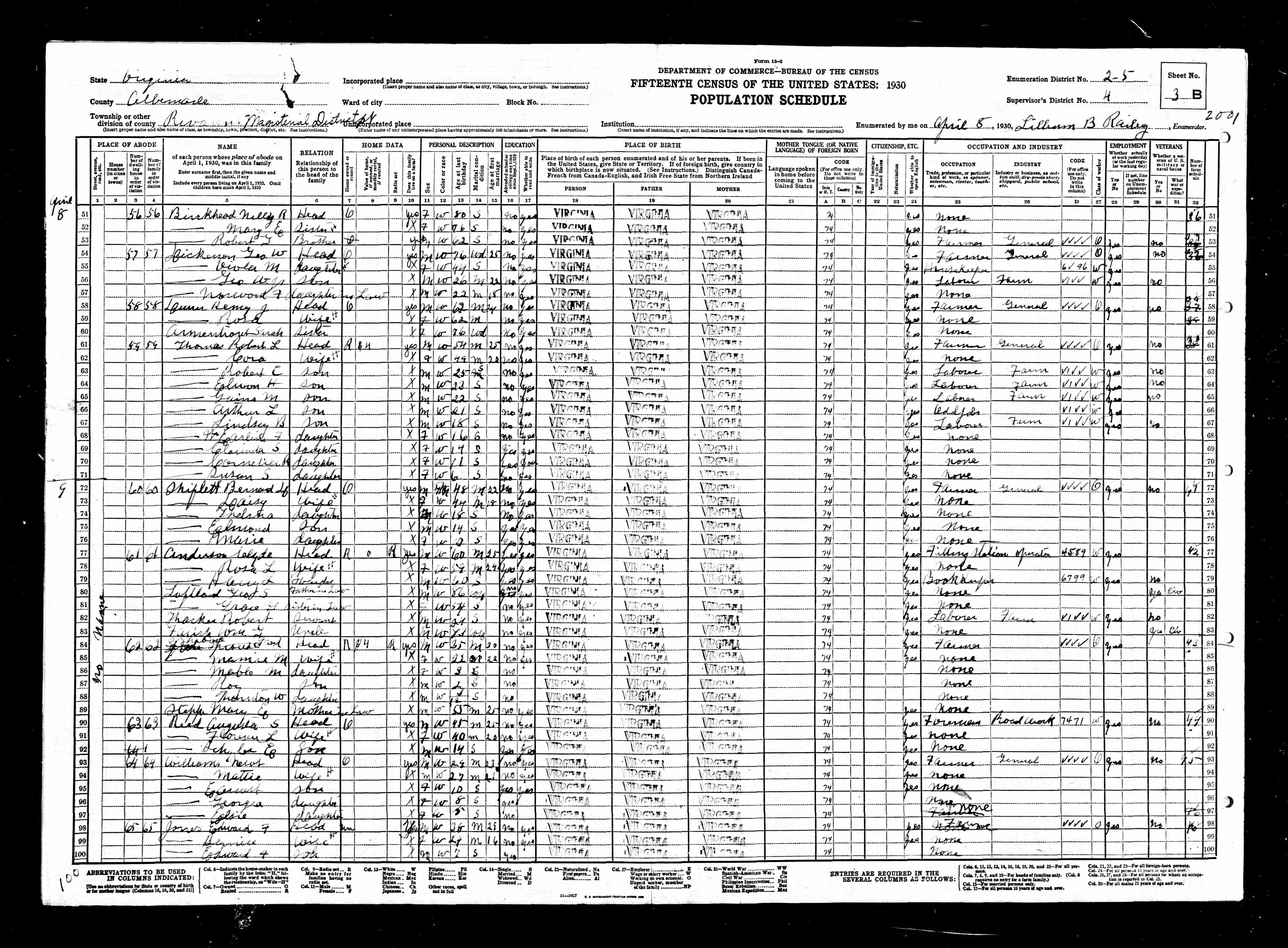 1079. 1940 Virginia Census, Albemarle, Rivanna, ED 2-8, Sht 5B, Image 10 Roll T627.