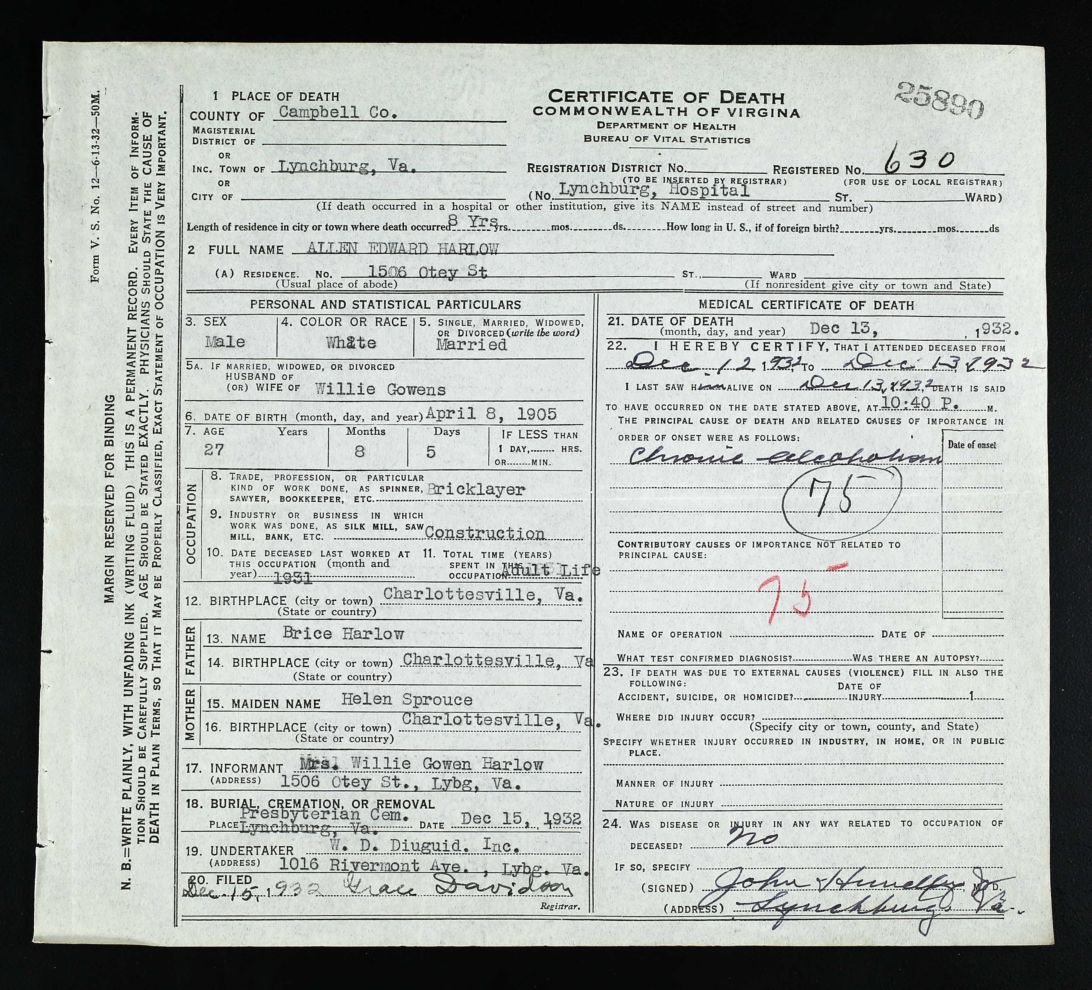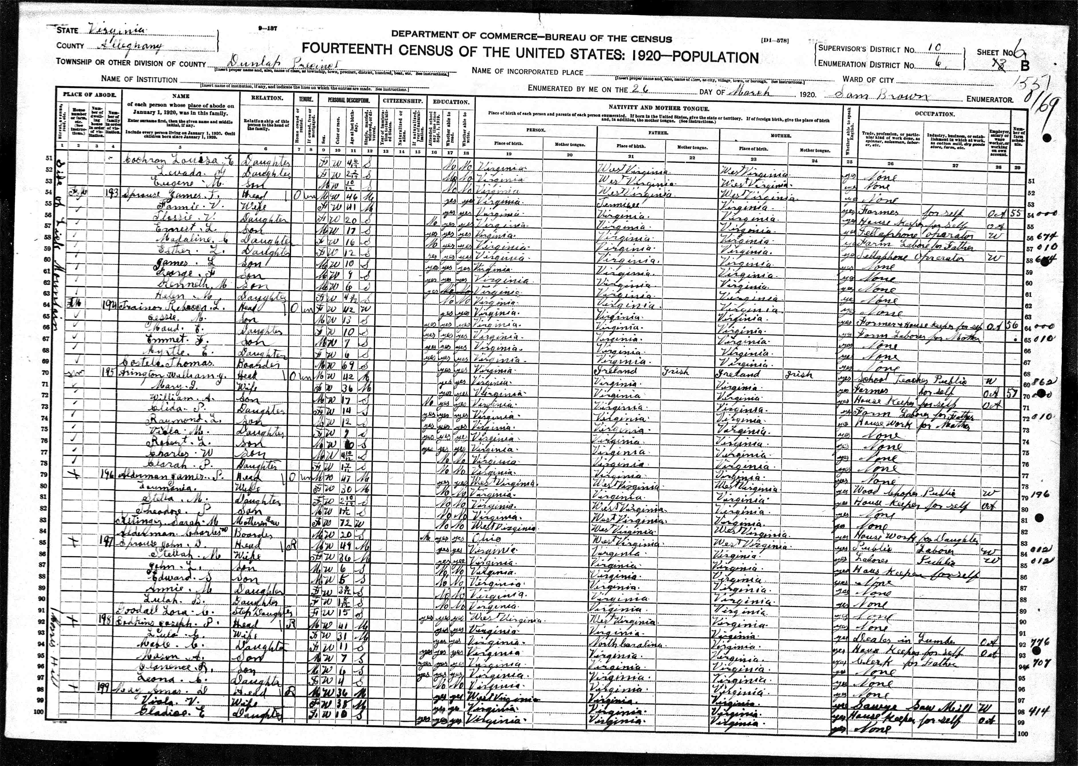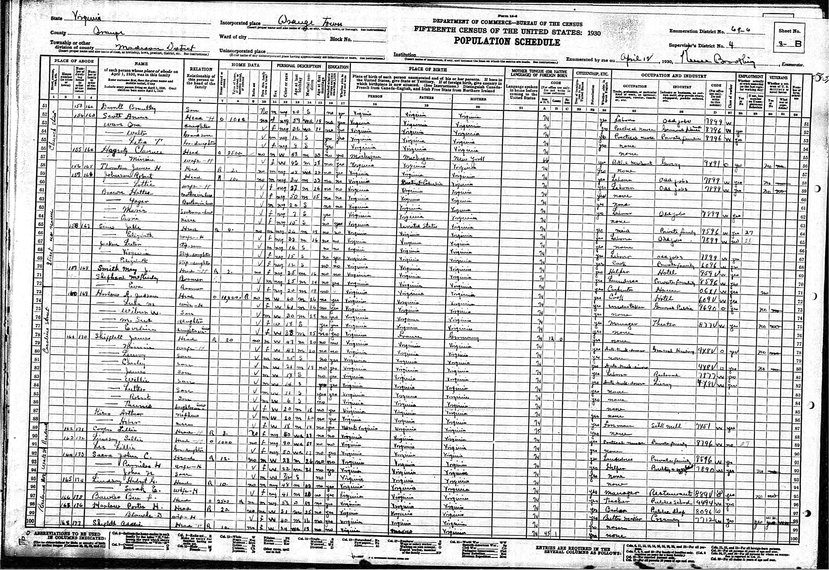 1063. 1930 Virginia Census, Lynchburg, Lynchburg, ED 20, Sht 14B, Image 28 Roll 2468, p. 14B, ED 20, Image 967.