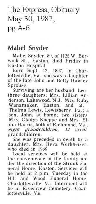 1071. Obituary, Warney Etta "Nanny" Critzer Sprouse. Daily News Leader (Staunton, VA) - March 10, 2002