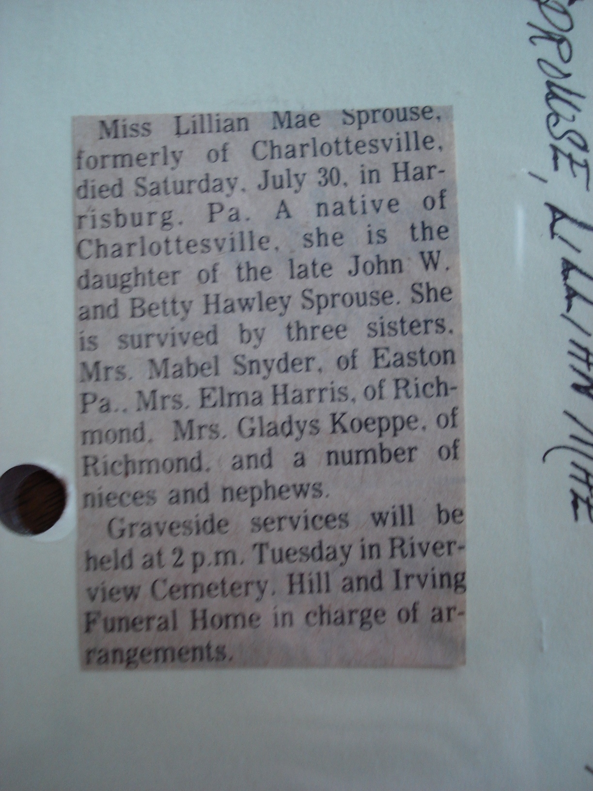 Deceased Name: Sprouse, Mrs. Maria M. Weidenbacher