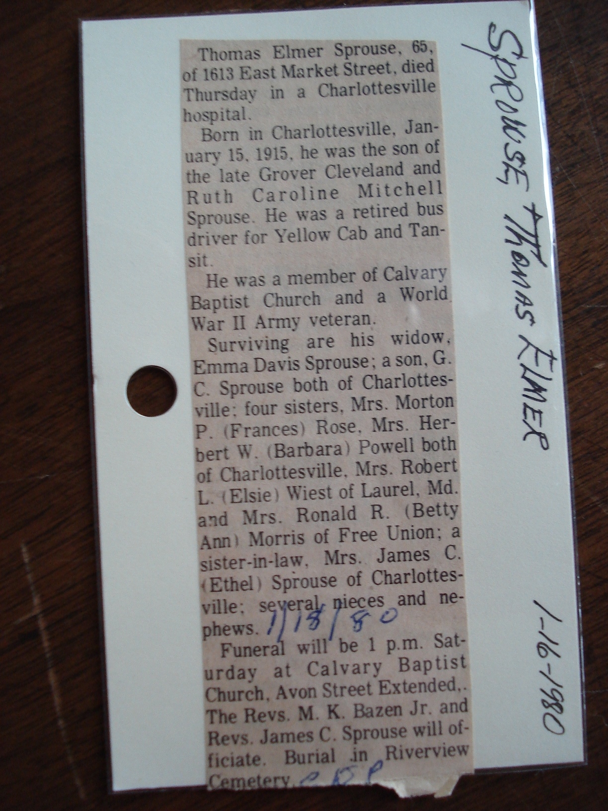 1065. Obituary, Richmond Times Dispatch, Thomas E. Sprouse.