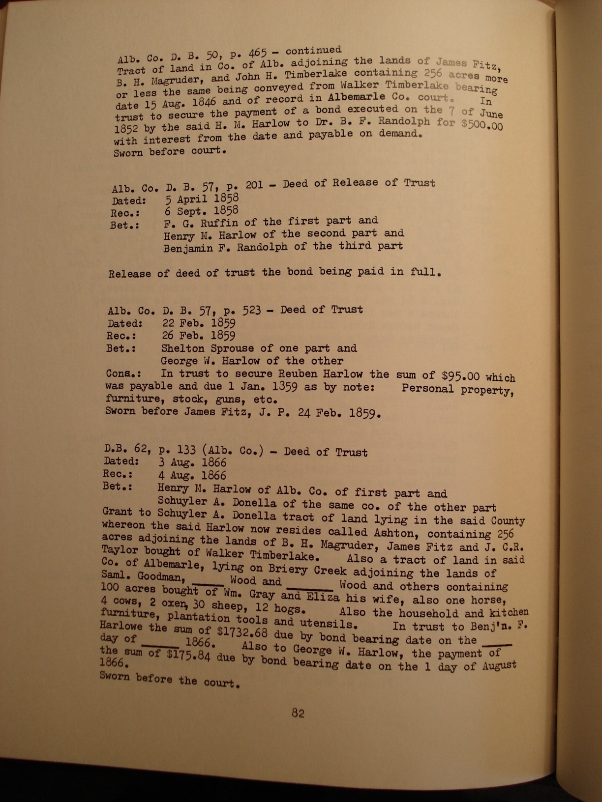 1082. Augusta County Clerk of Court, Harry Jordan Brown, Jr. & Frances Wilson Bracey.
