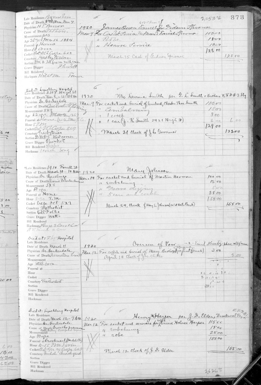 14. (Virginia Deaths and Burials Database Family Search Index entries derived from digital copies of originals housed in various repositories throughout Virginia.), John Sprouse. Name Jno. Sprouce