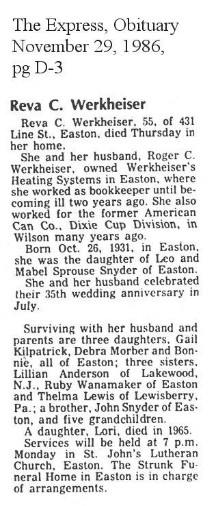 1070. Obituary, The Express - Obituary - R.C. Werkheiser, p. C8.