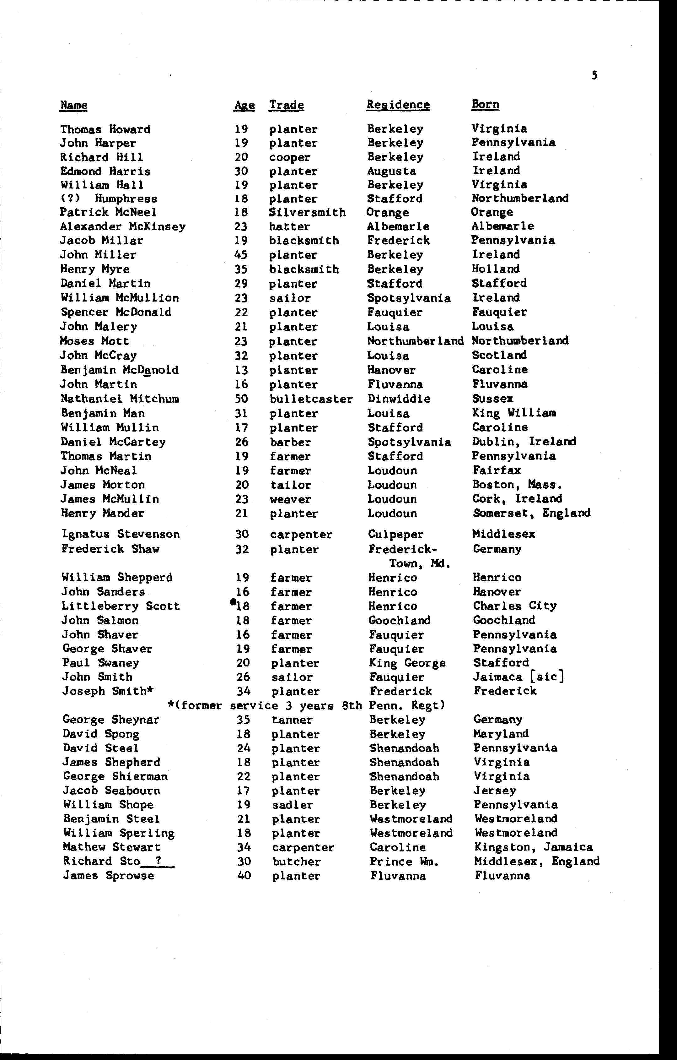 1. Military Service: Officers & Privates at Cumberland Courthouse, age 48, Planter, born Fluvanna, residence Louisa., After 1777, Fluvanna County, Virginia, USA. 5 6