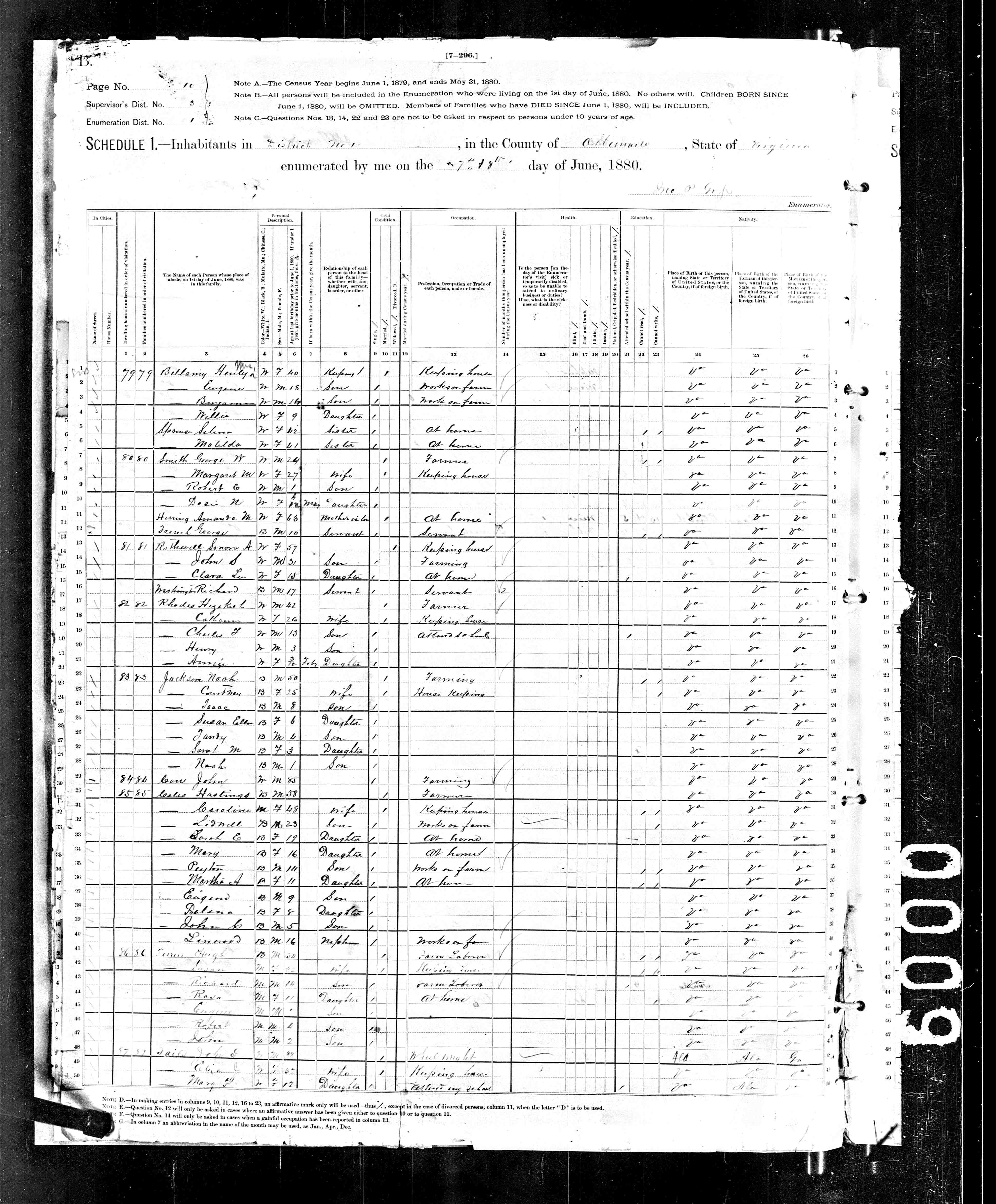 17. Census: Reuben W. Bellamy and family, 6 Aug 1870, Fredericksville Parish, Albemarle County, Virginia, USA. 62