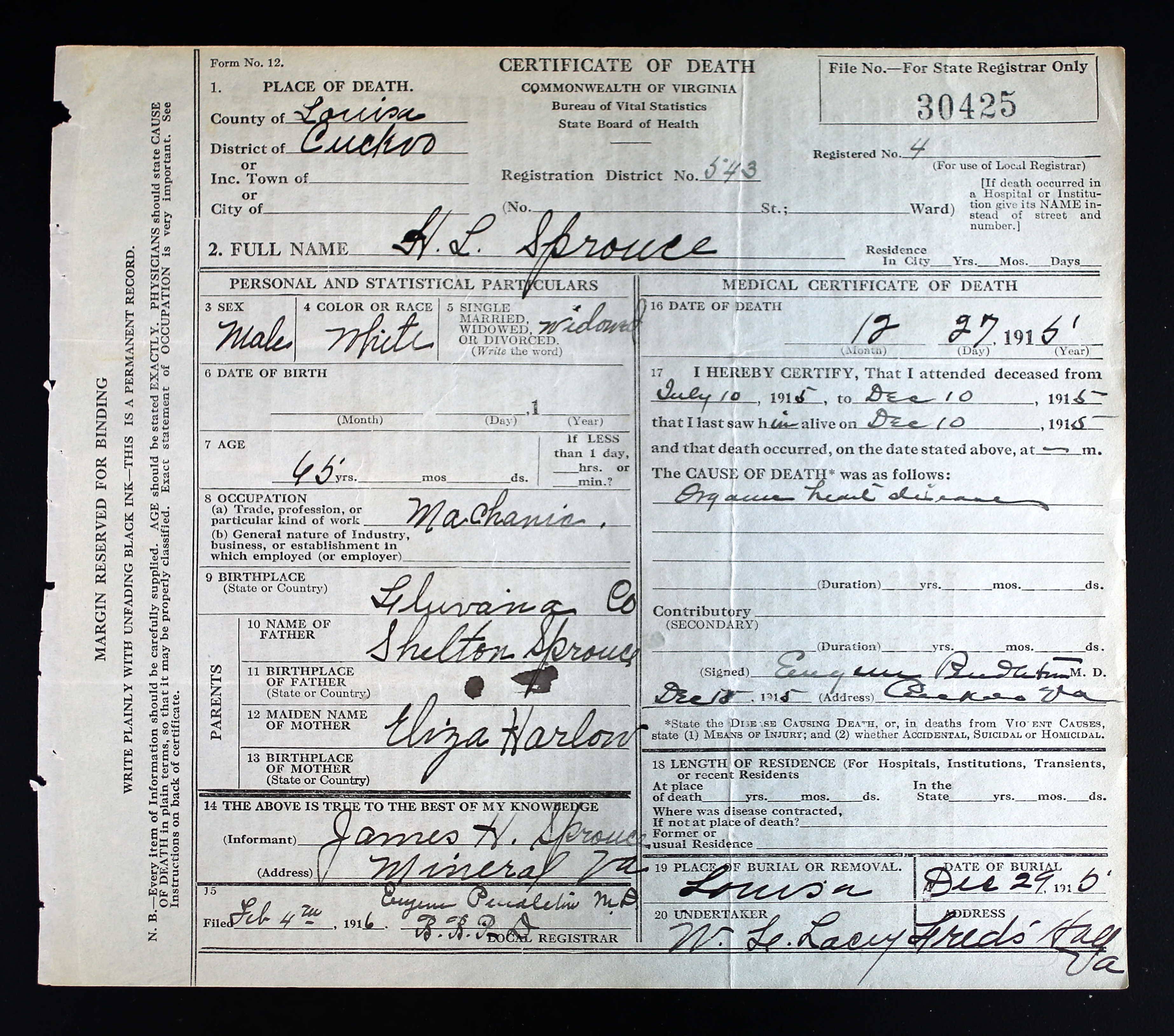 Name of Person Giving Information of Death: Burley Sprouse