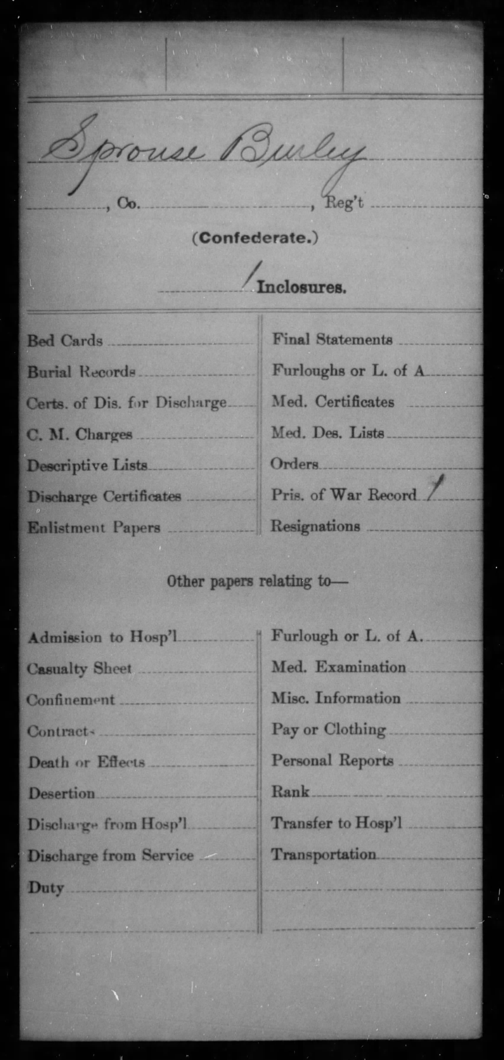 870. World War I Civilian Draft Registration Card, Lawrence Sprouse.