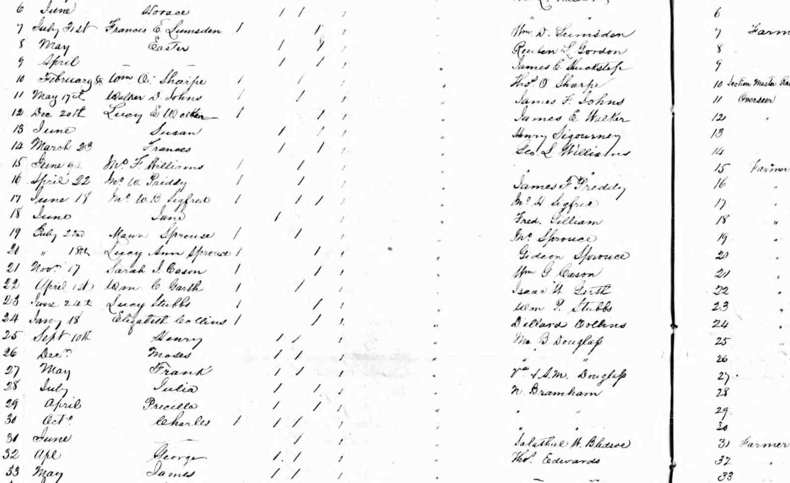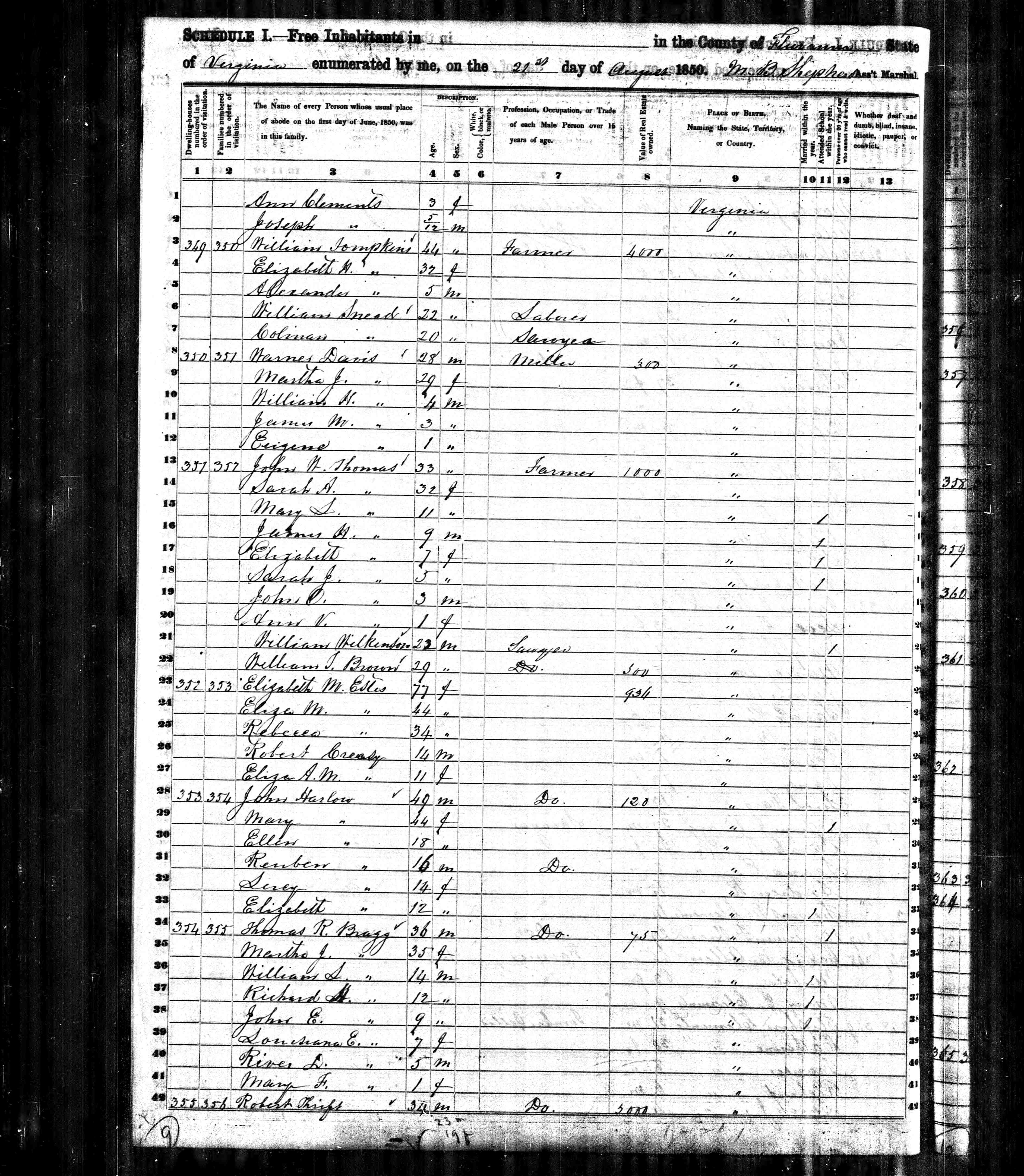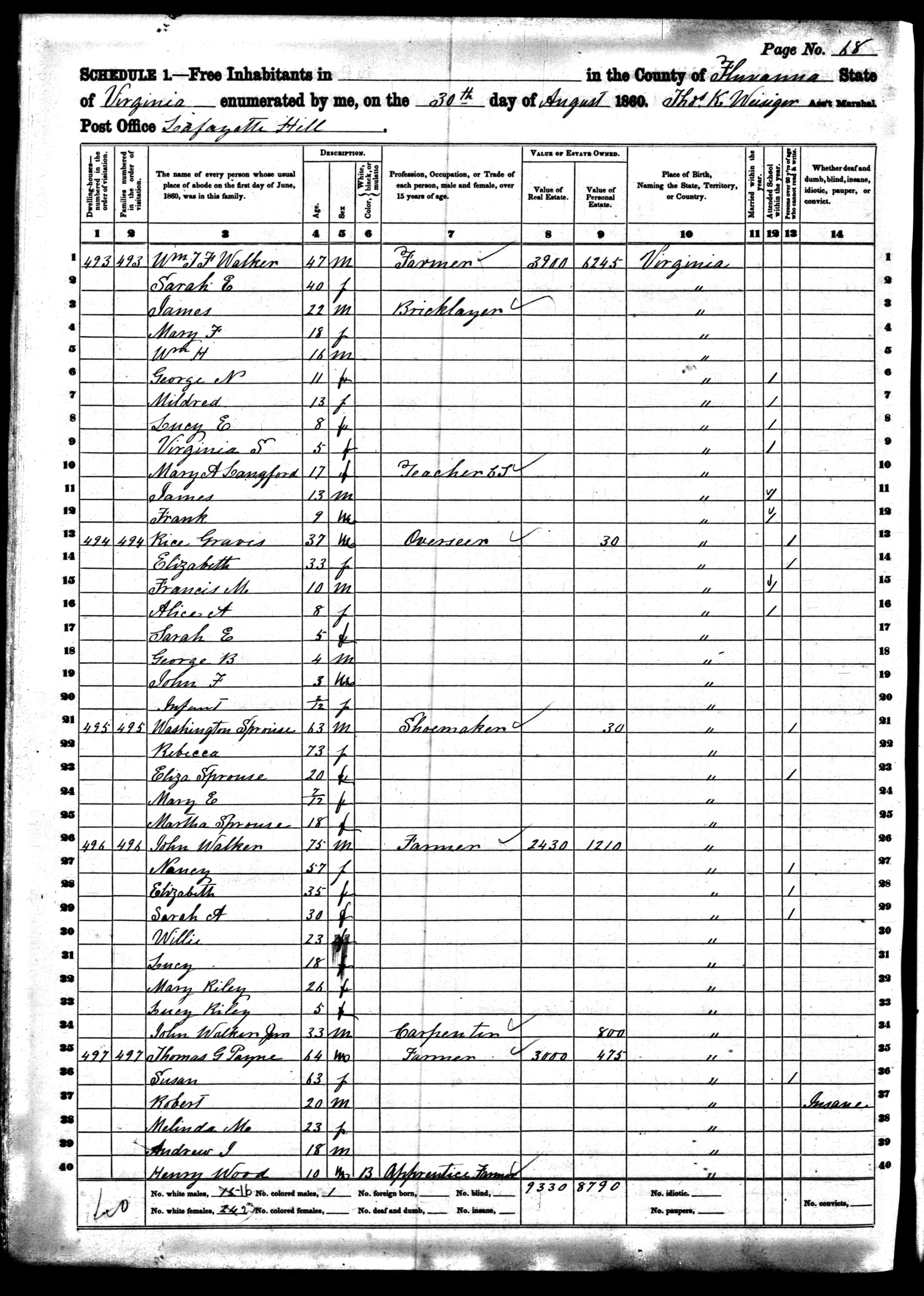1. Census: Weston Sprouse and family, 24 Aug 1870, Riverhead, Augusta County, Virginia, USA. 82