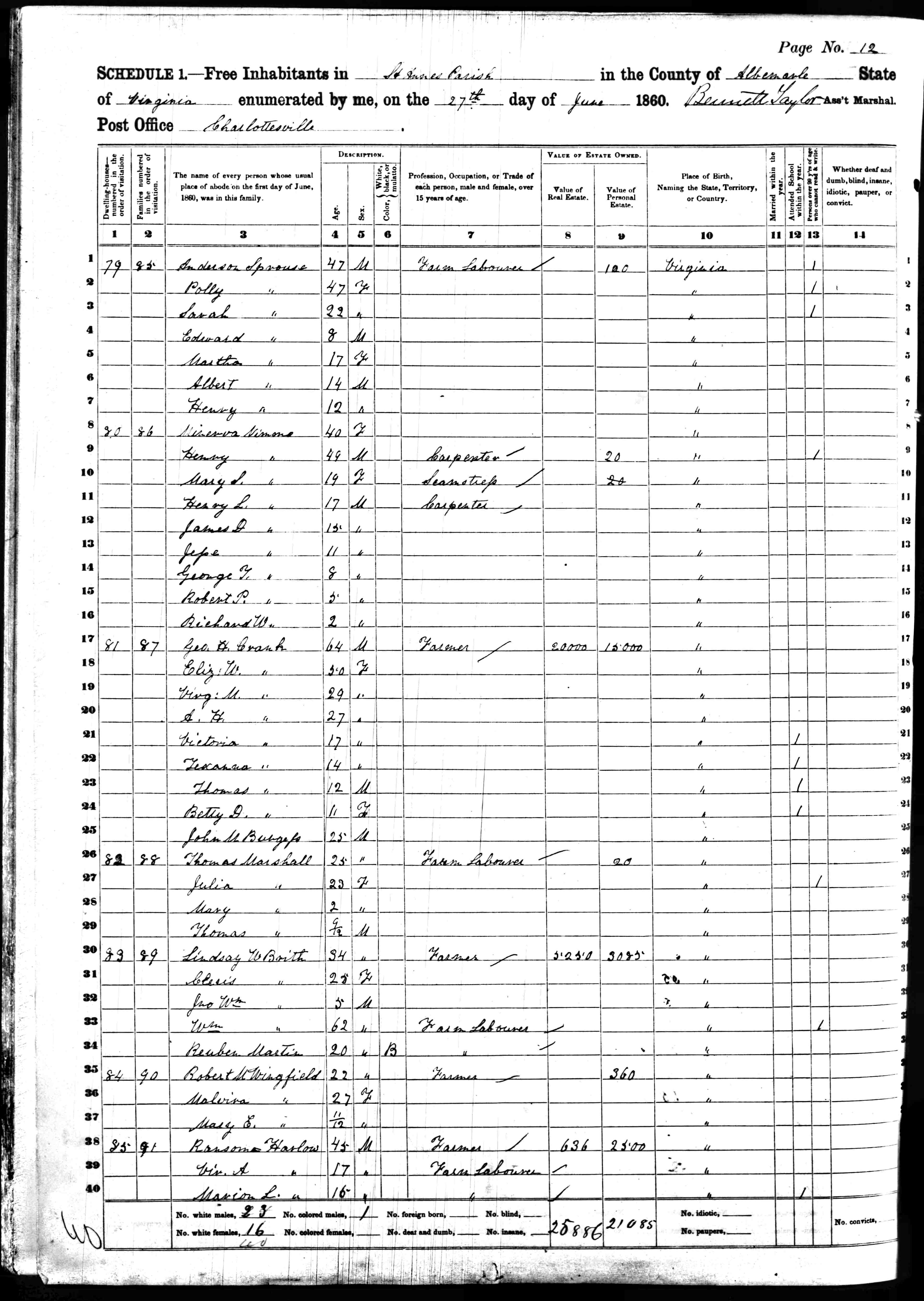 1. Census: Linwood Carver and family, 23 Apr 1910, Charlottesville, Albemarle County, Virginia, USA. 211