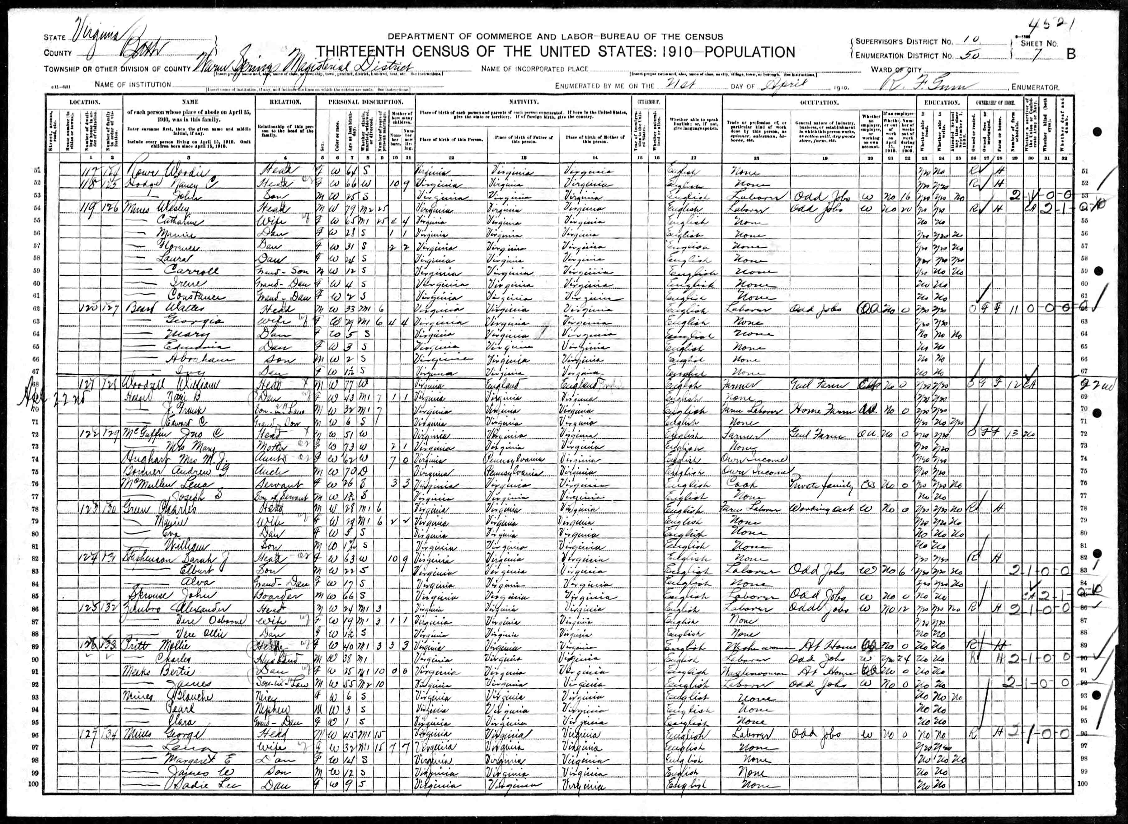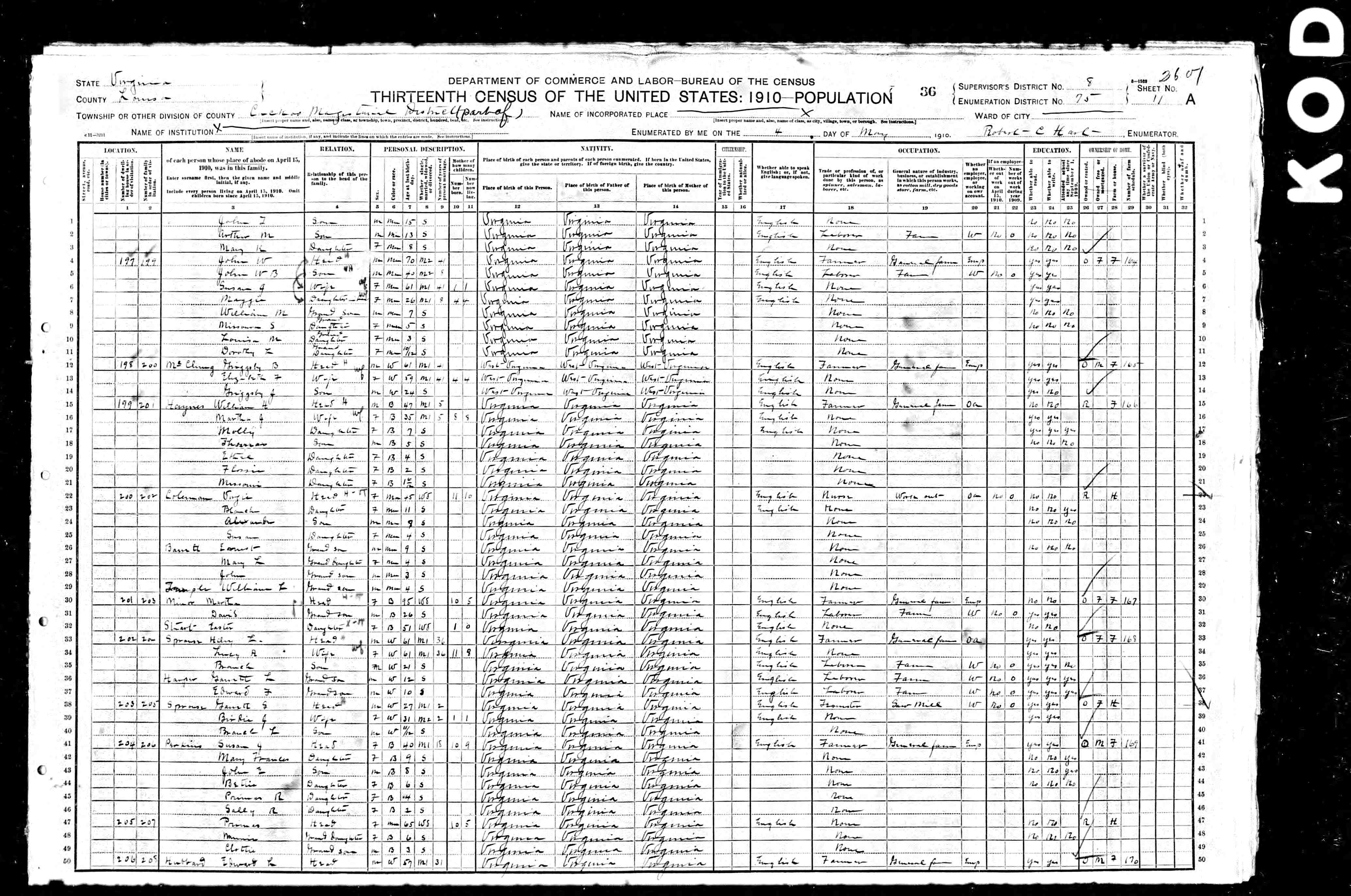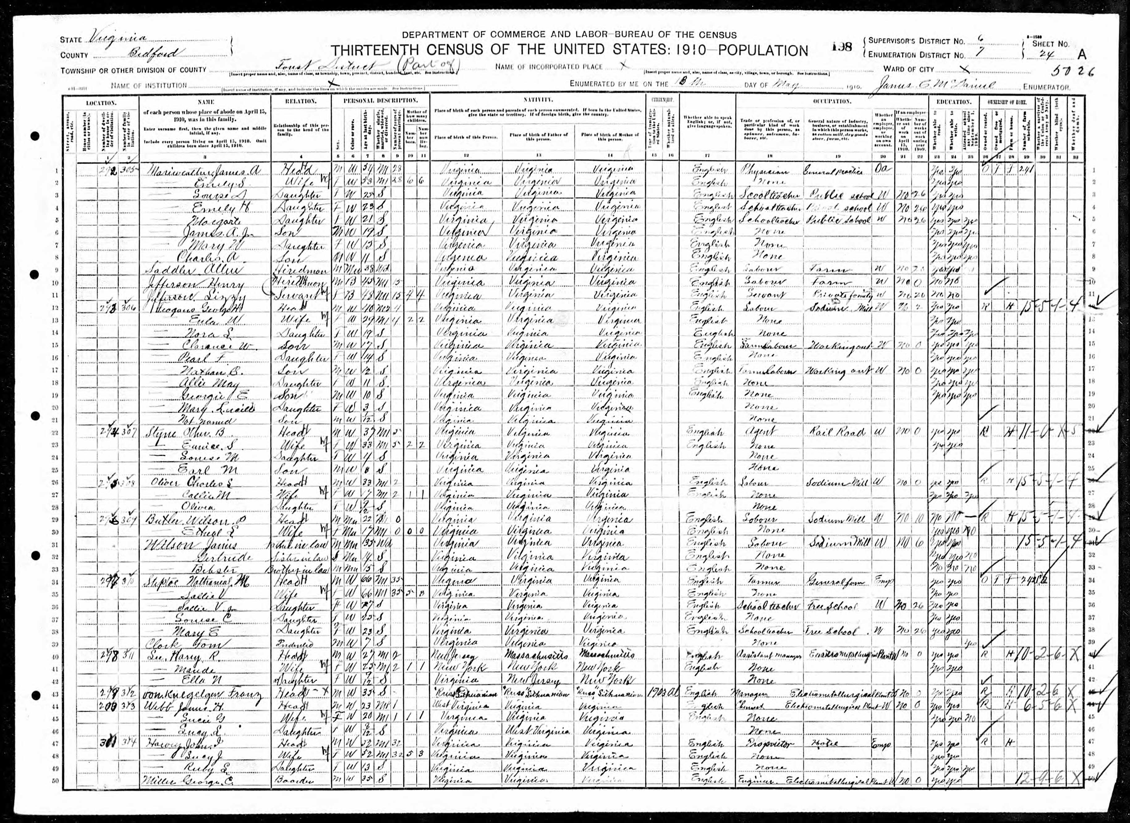 838. 1910 Virginia Census, Bedford, Forest ED 7, Sht 23B.