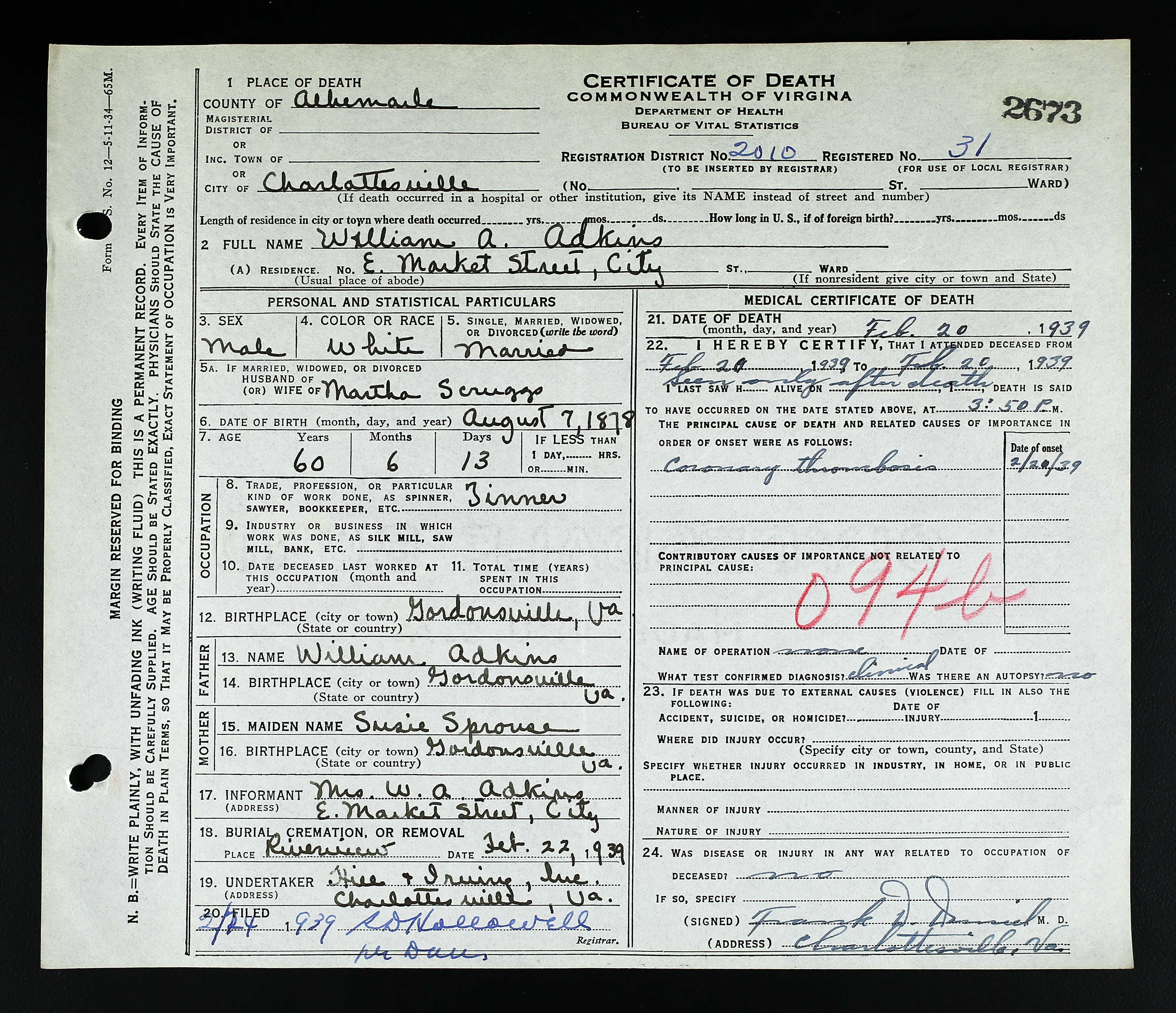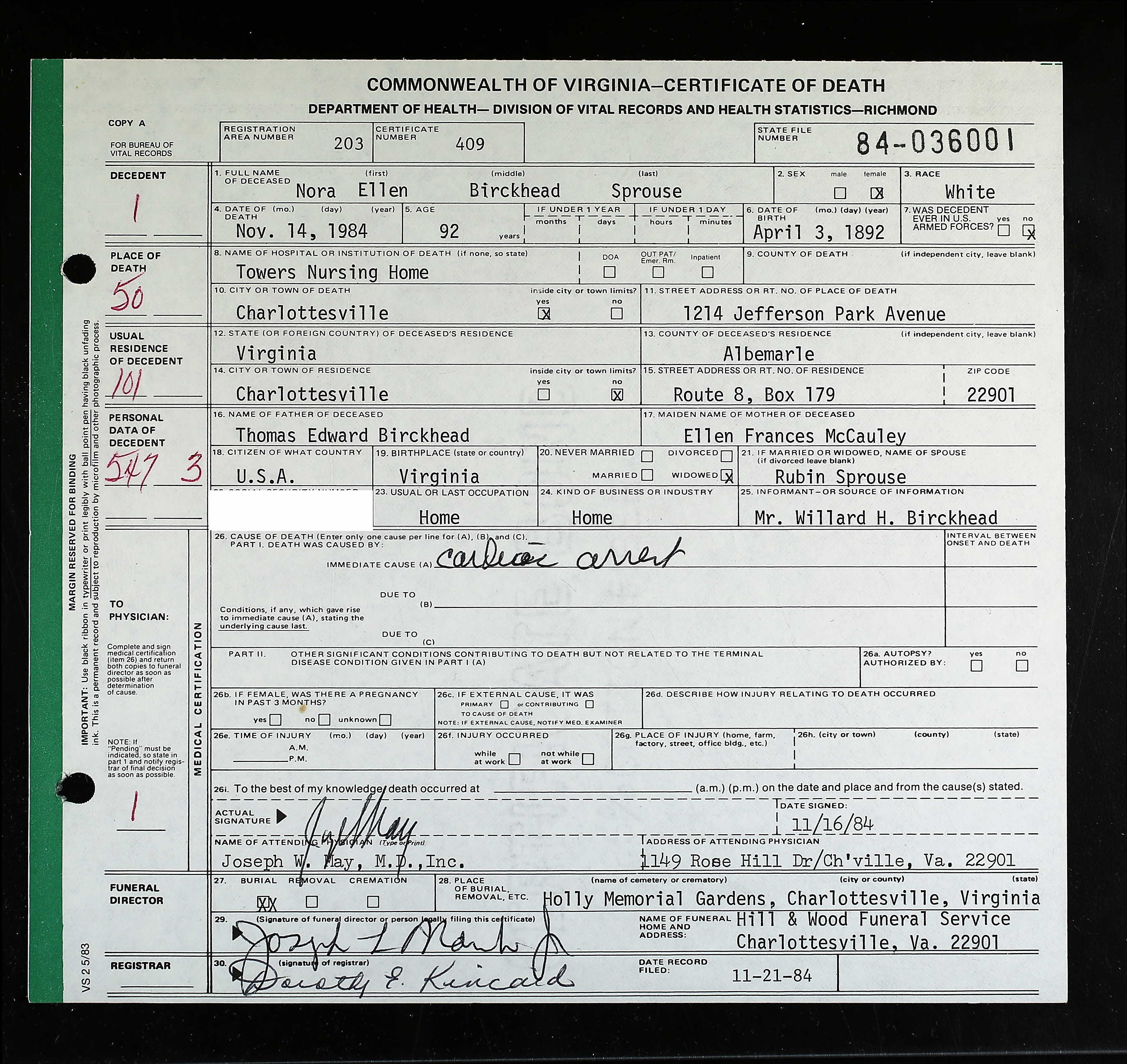 1. Alt. Birth: 2 May 1877, Alleghany County, Virginia, USA.