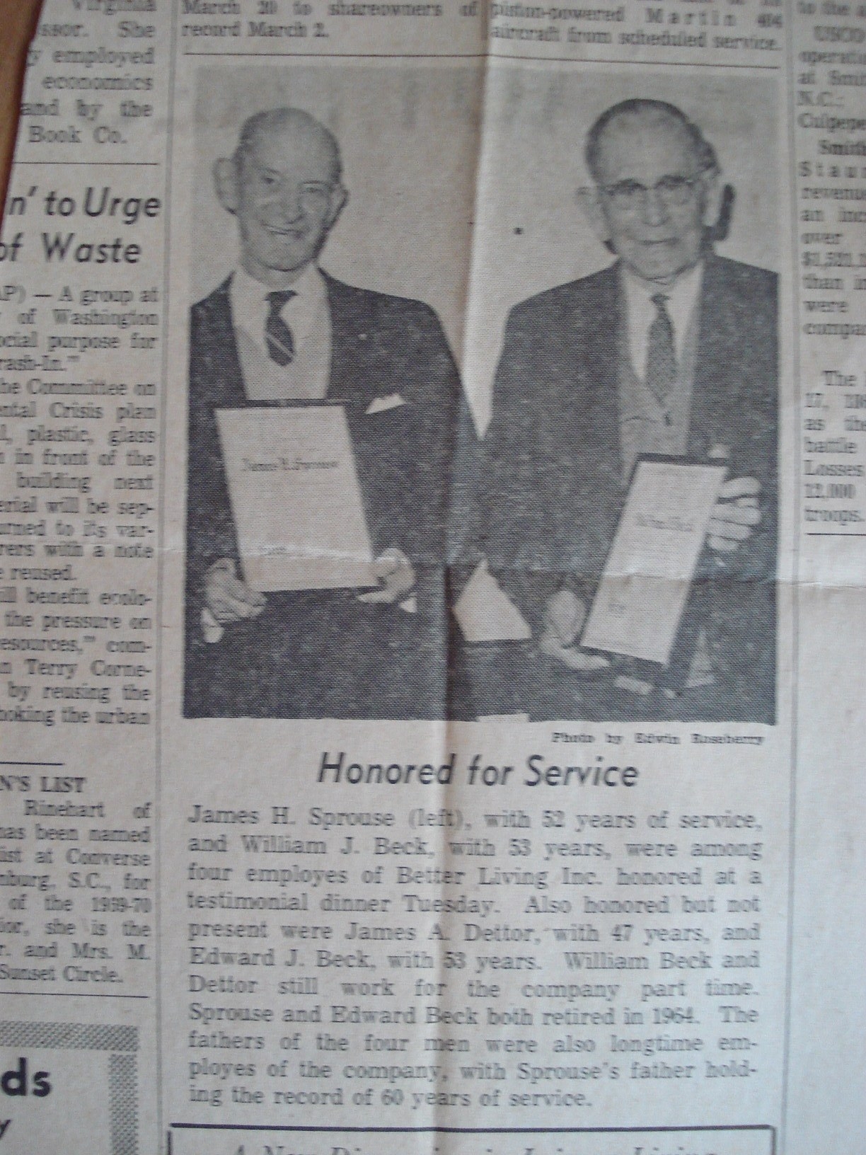 849. Obits listed in the Lynchburg News & Advance, George Anthony Sprouse.