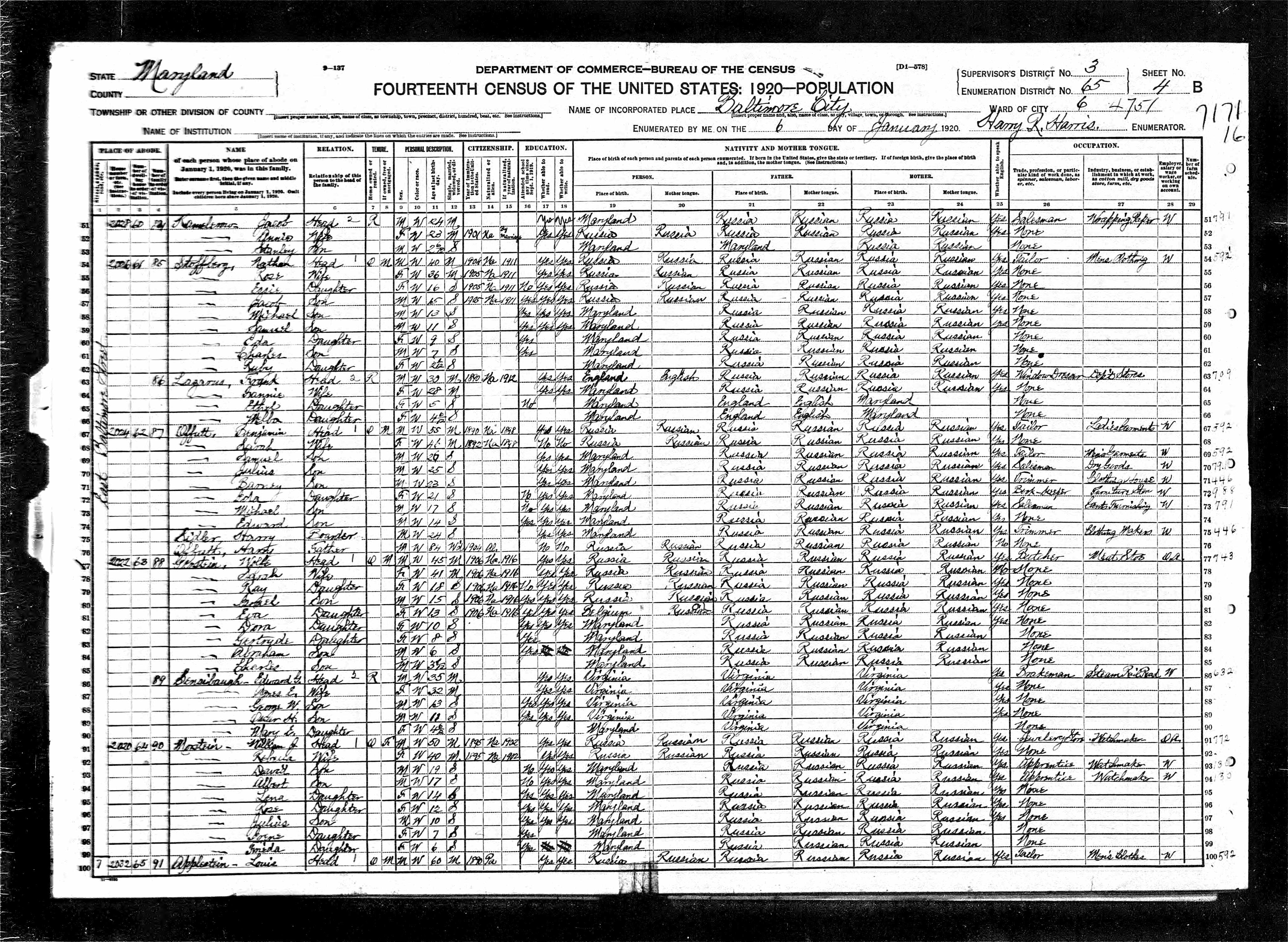 4. Census: Linwood Carver and family, 13 Feb 1920, Charlottesville, Albemarle County, Virginia, USA. 527