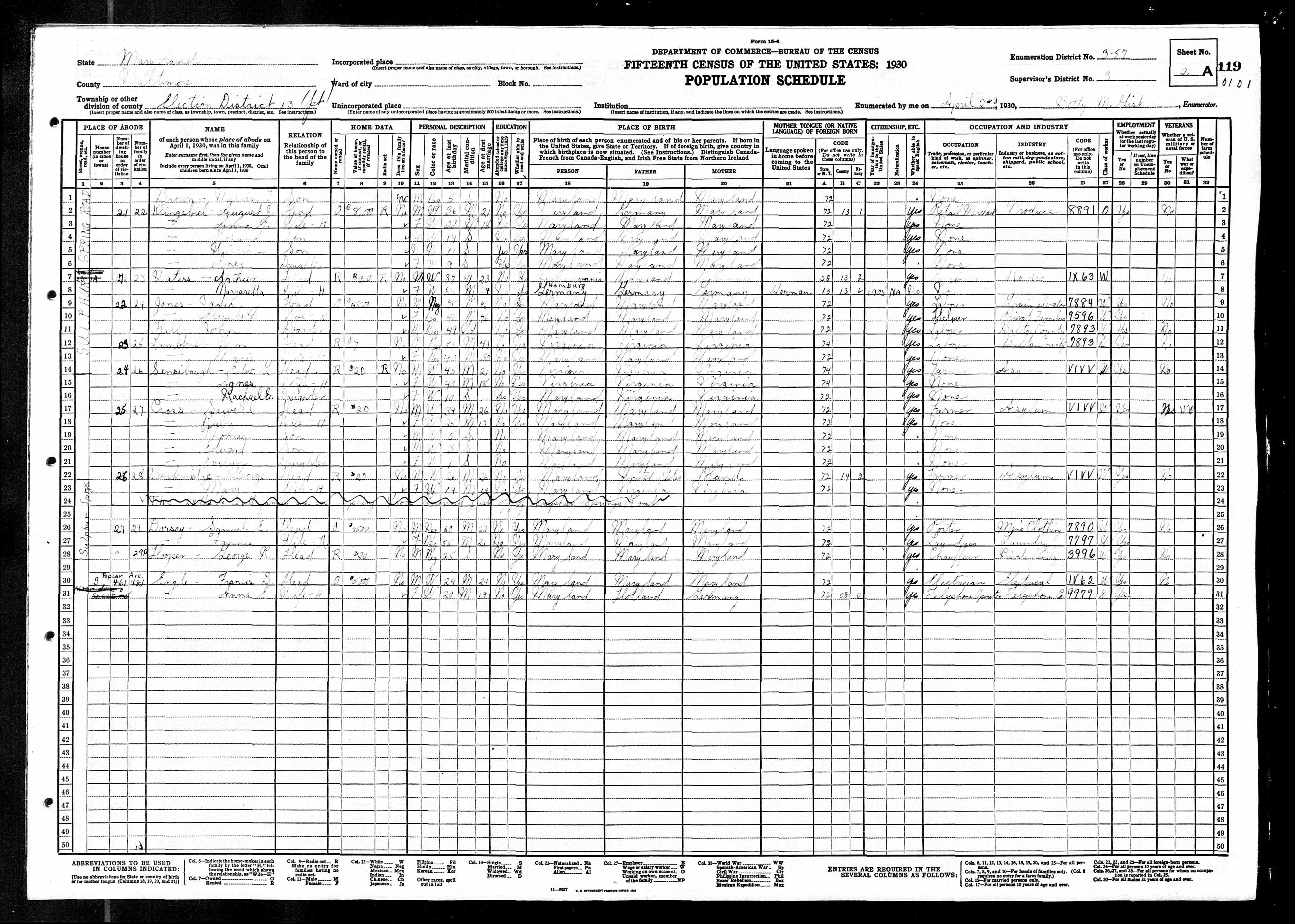 884. 1930 Virginia Census, Albemarle, Charlottesvillr, ED 1, Sht 3A.