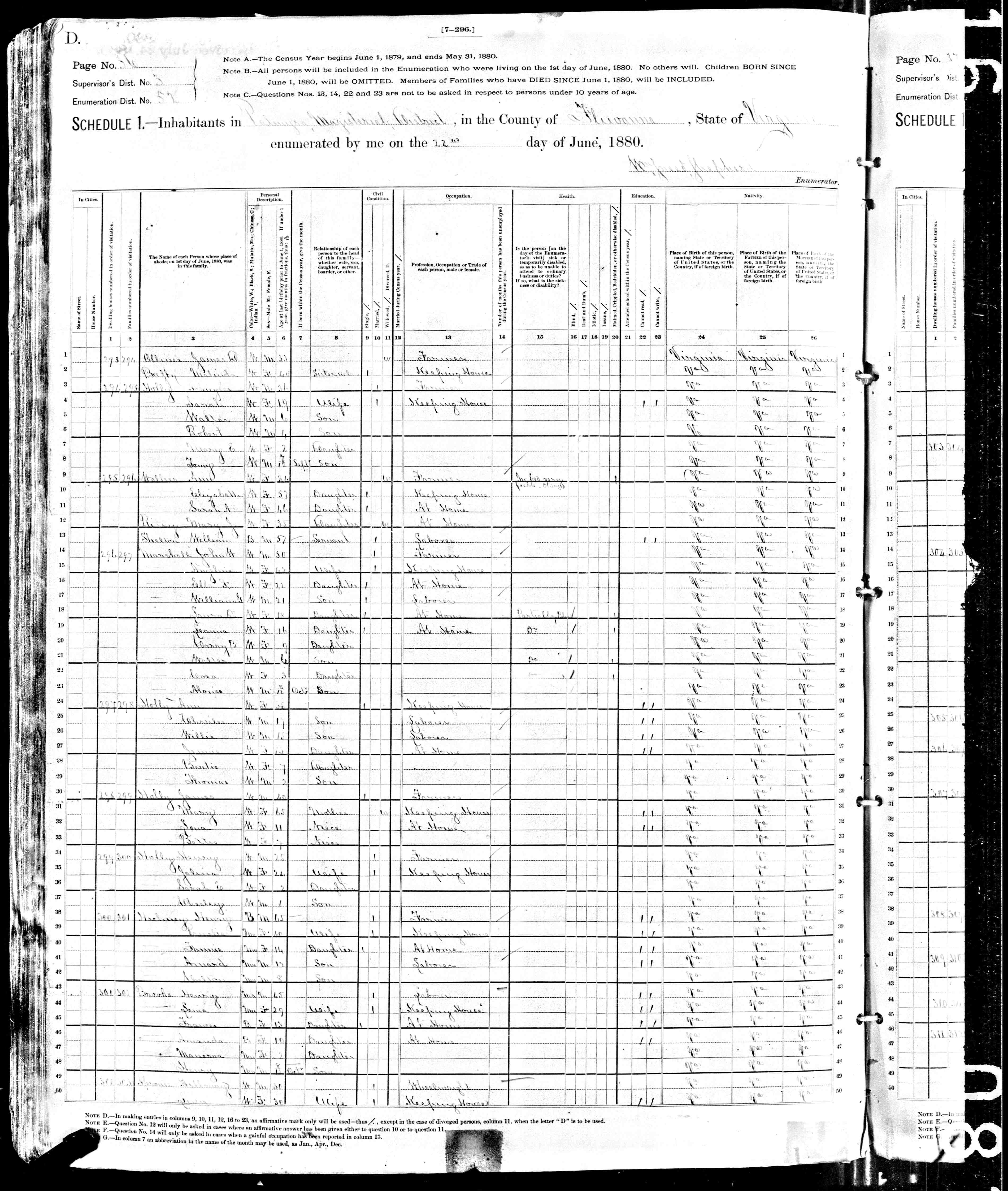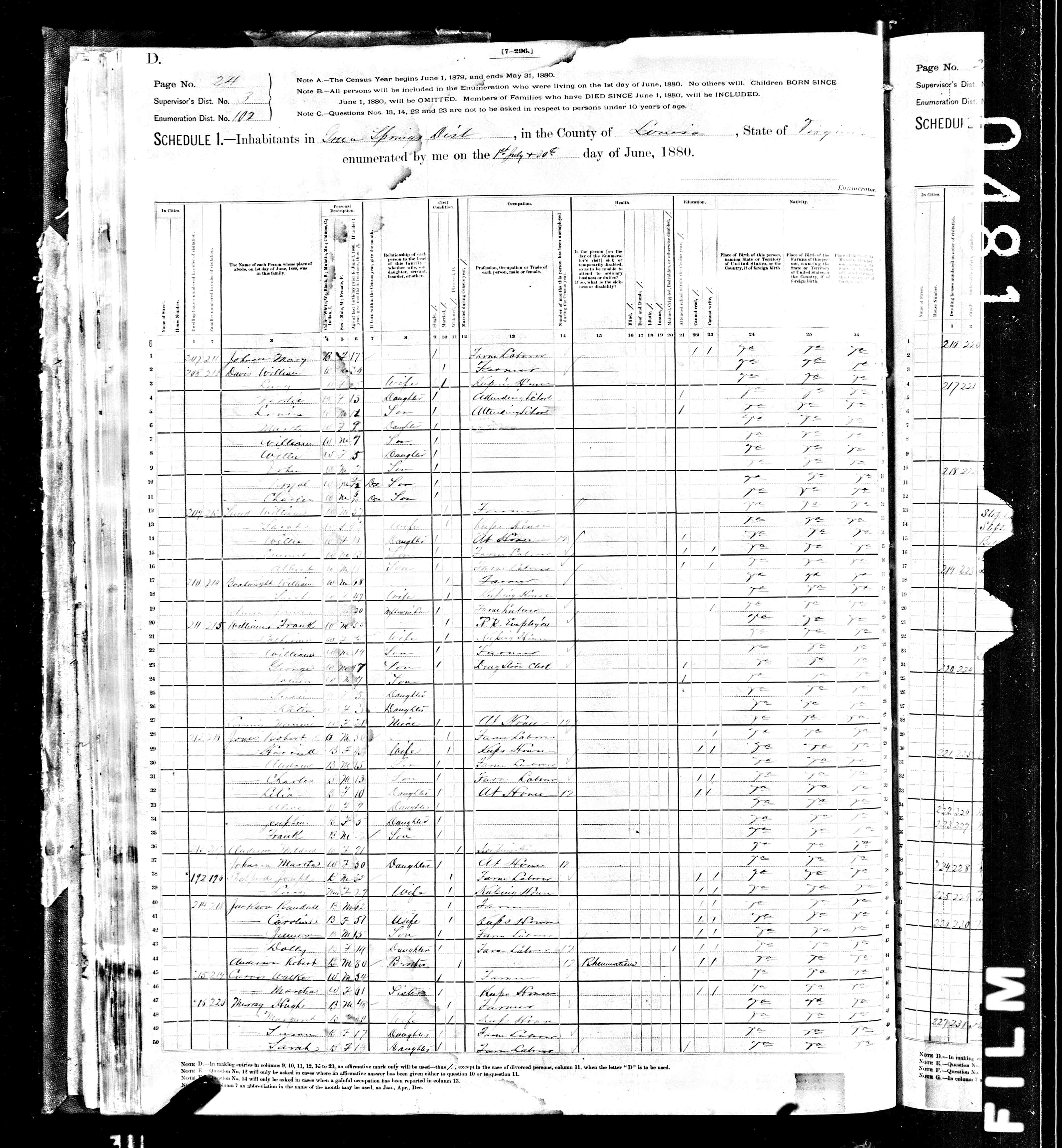 1. Census: William H. Sprouse and family, 5 Jun 1880, Riverhead, Augusta County, Virginia, USA. 214