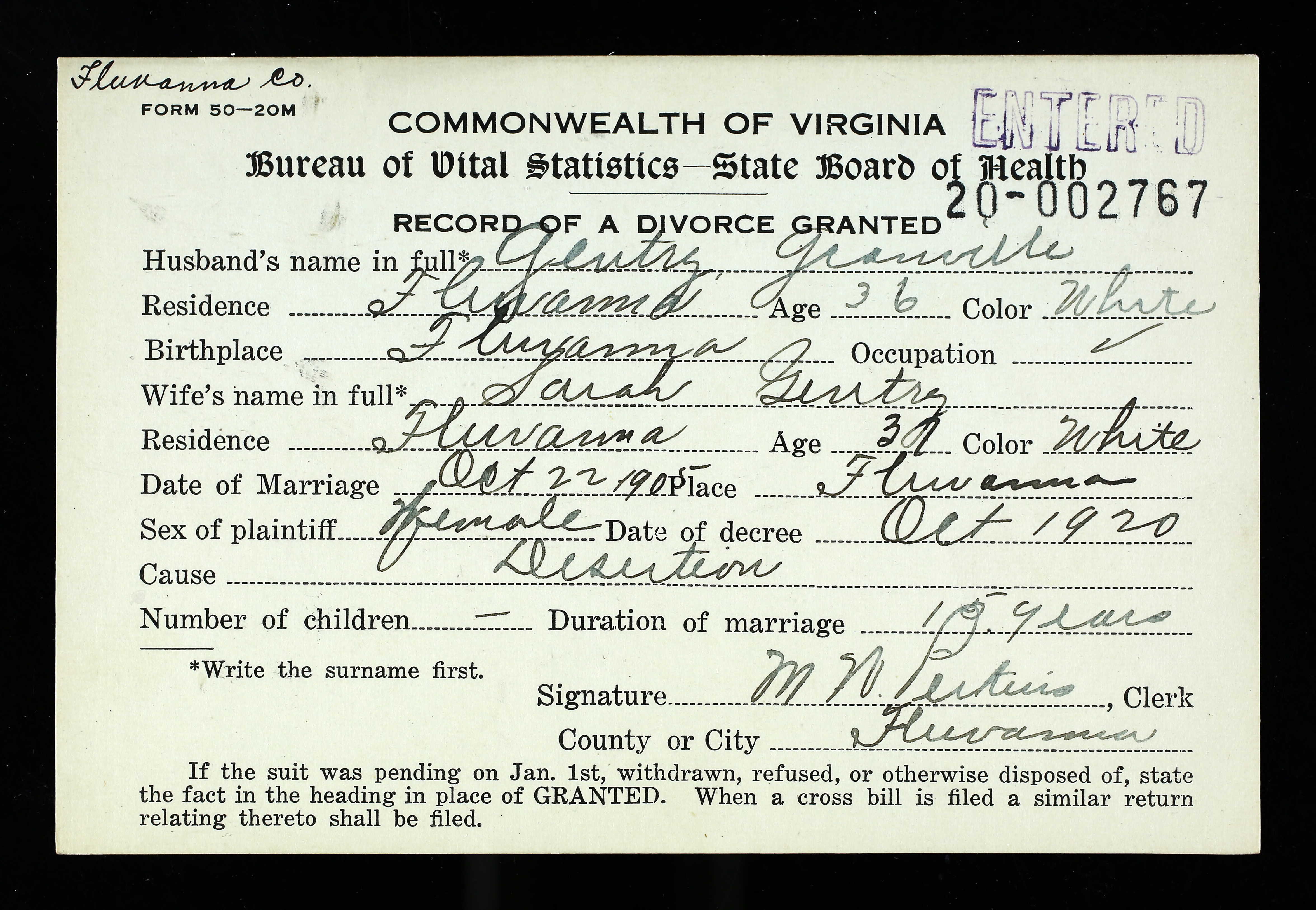 3. Alt. Birth: Marriage Registration Augusta Co, VA, 1892, Bath County, Virginia, USA.